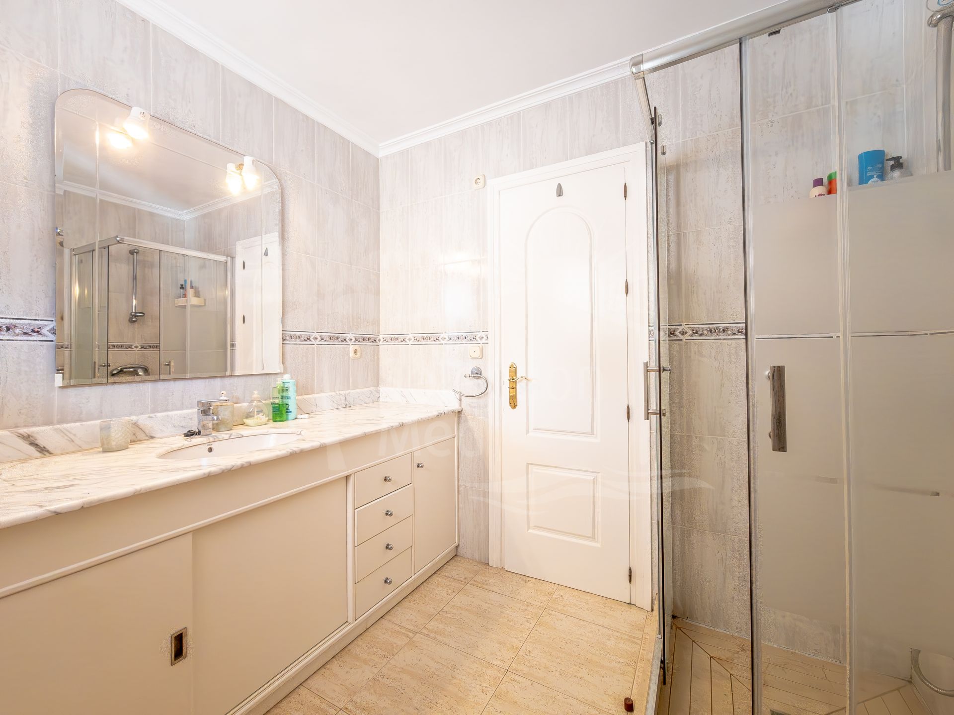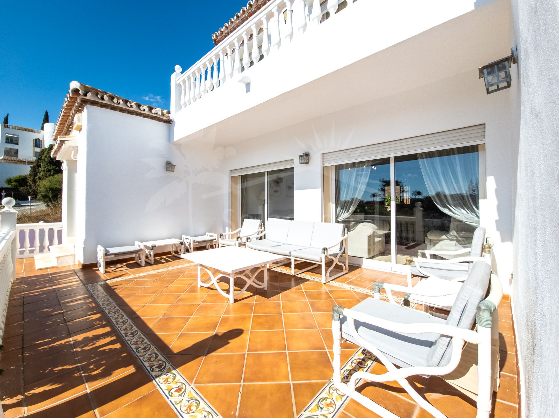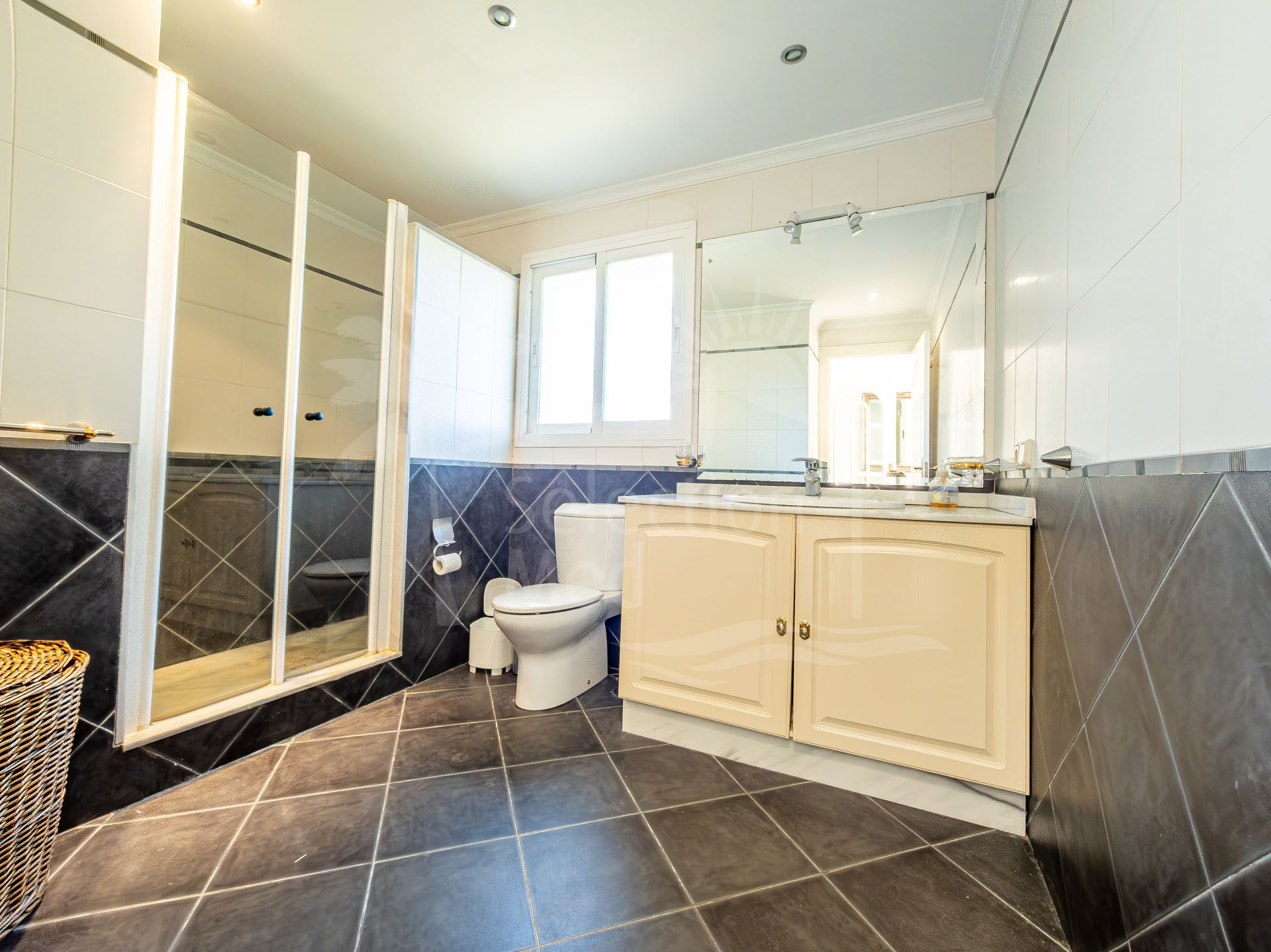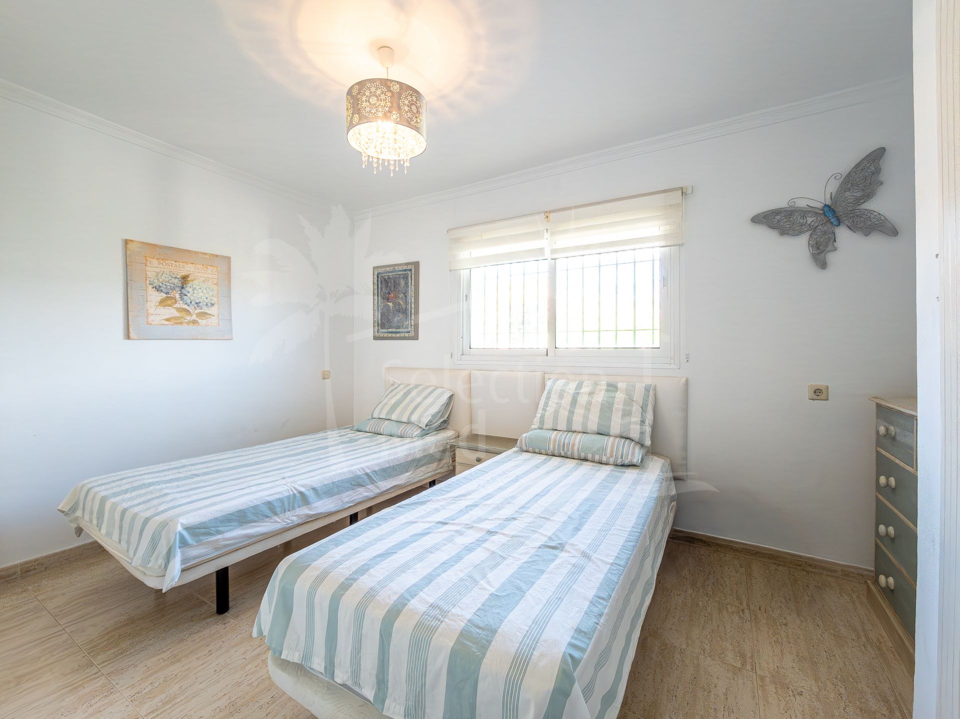 The villa features spacious and versatile accommodation, including five bedrooms and four bathrooms, three of which are en-suite. The interior presents a large living room, a dedicated dining area, and a well-equipped kitchen, complemented by a an office / bedroom for functionality. A guest room, guest toilet, and a ground floor patio further enhance the layout, while the private terrace, balcony, and covered terrace allow for seamless indoor-outdoor living. The property is wheelchair-accessible and in good condition, with significant potential for renovation to suit individual tastes.