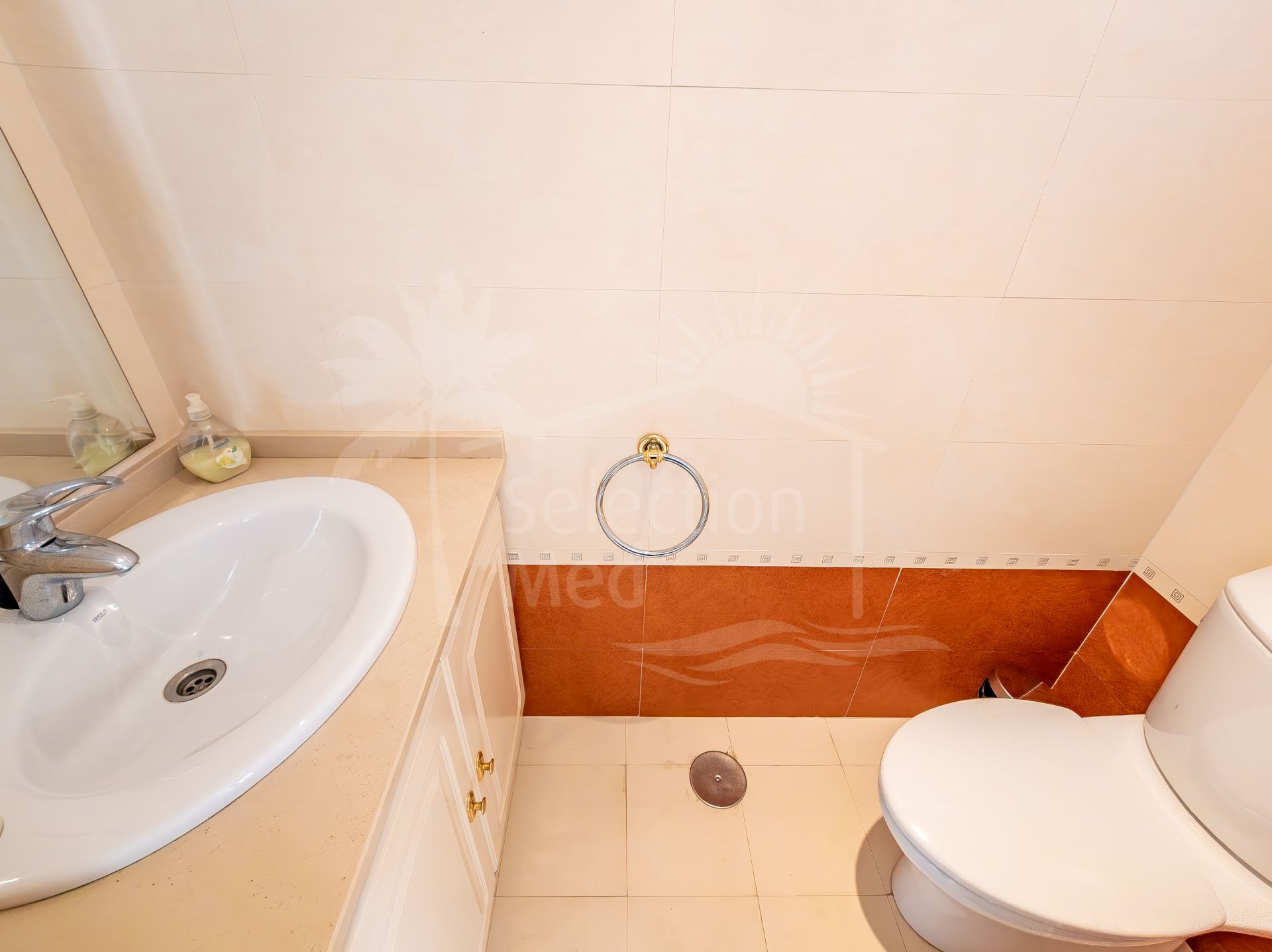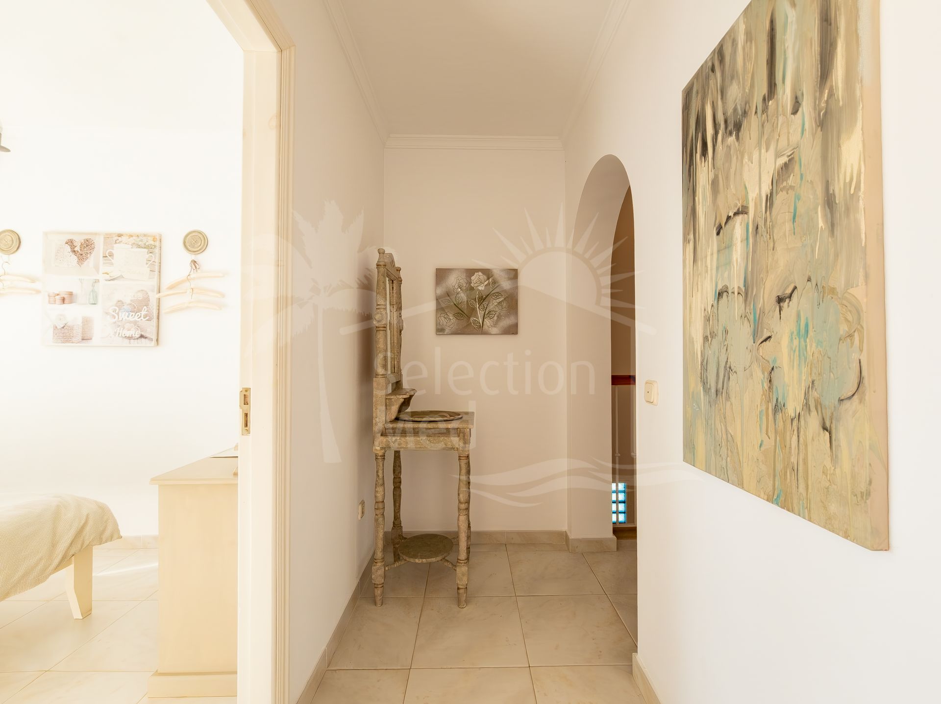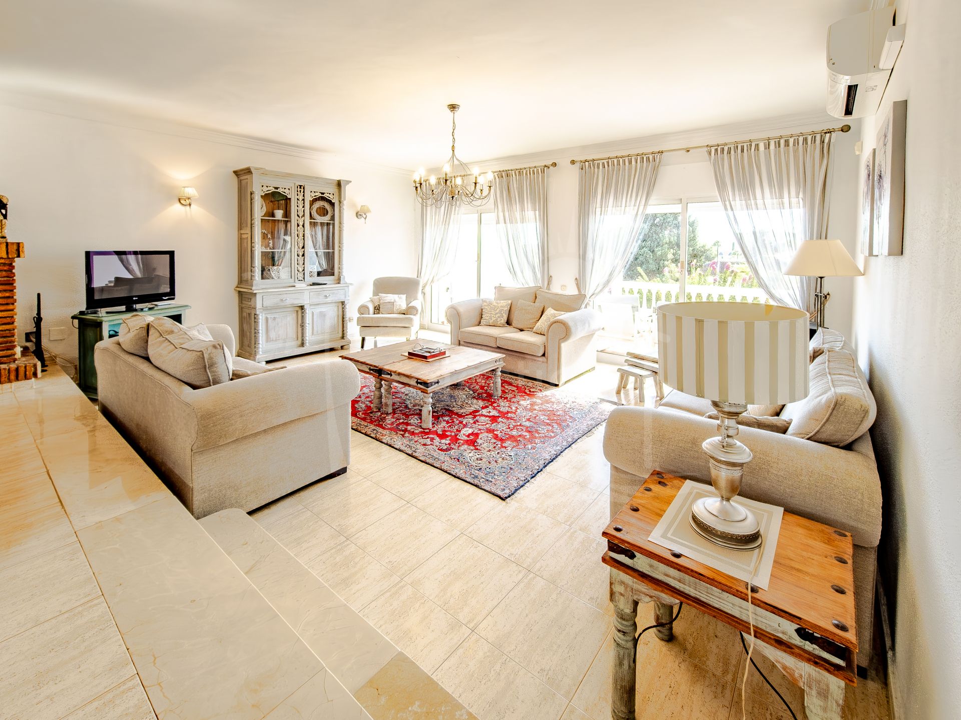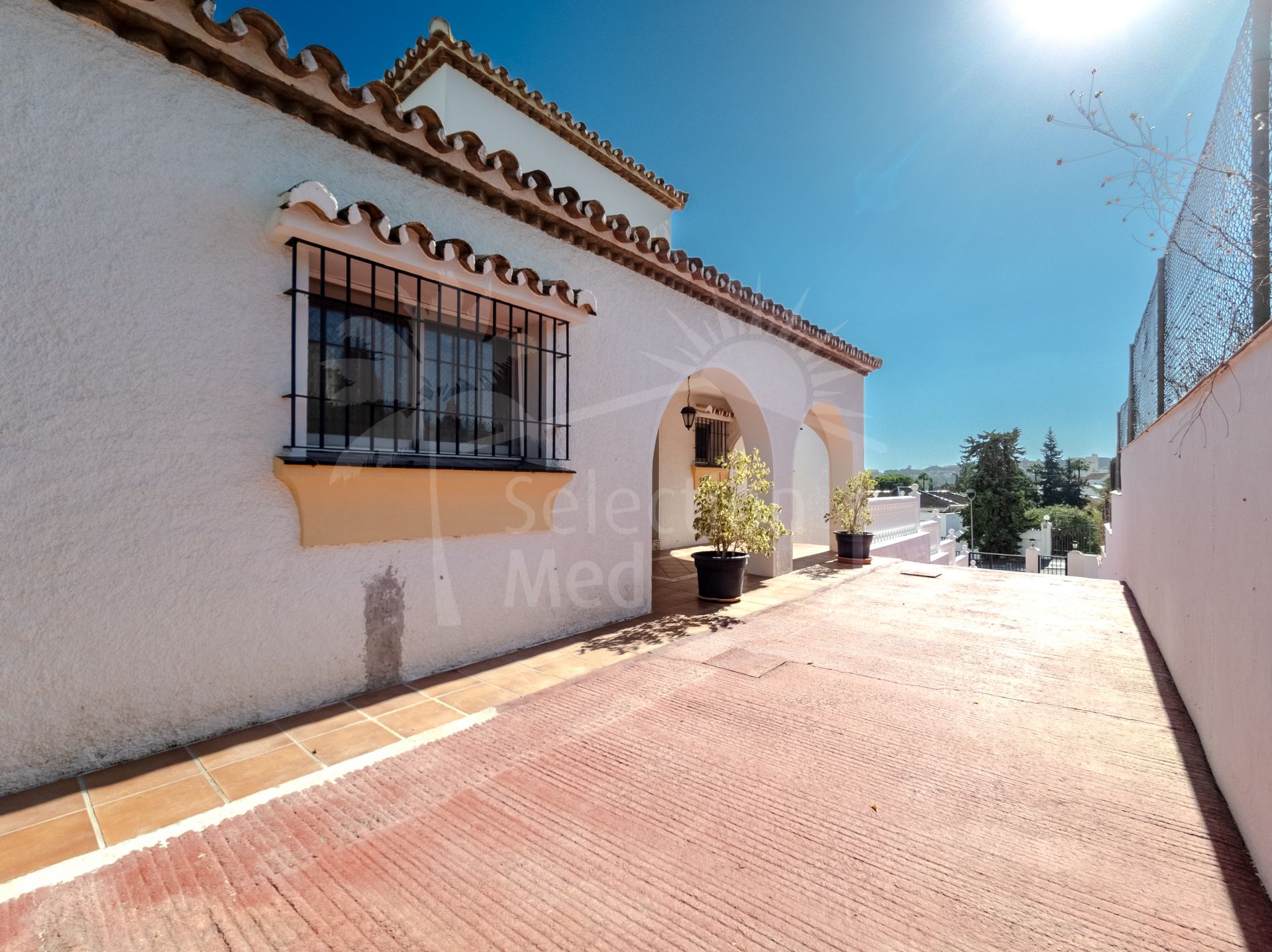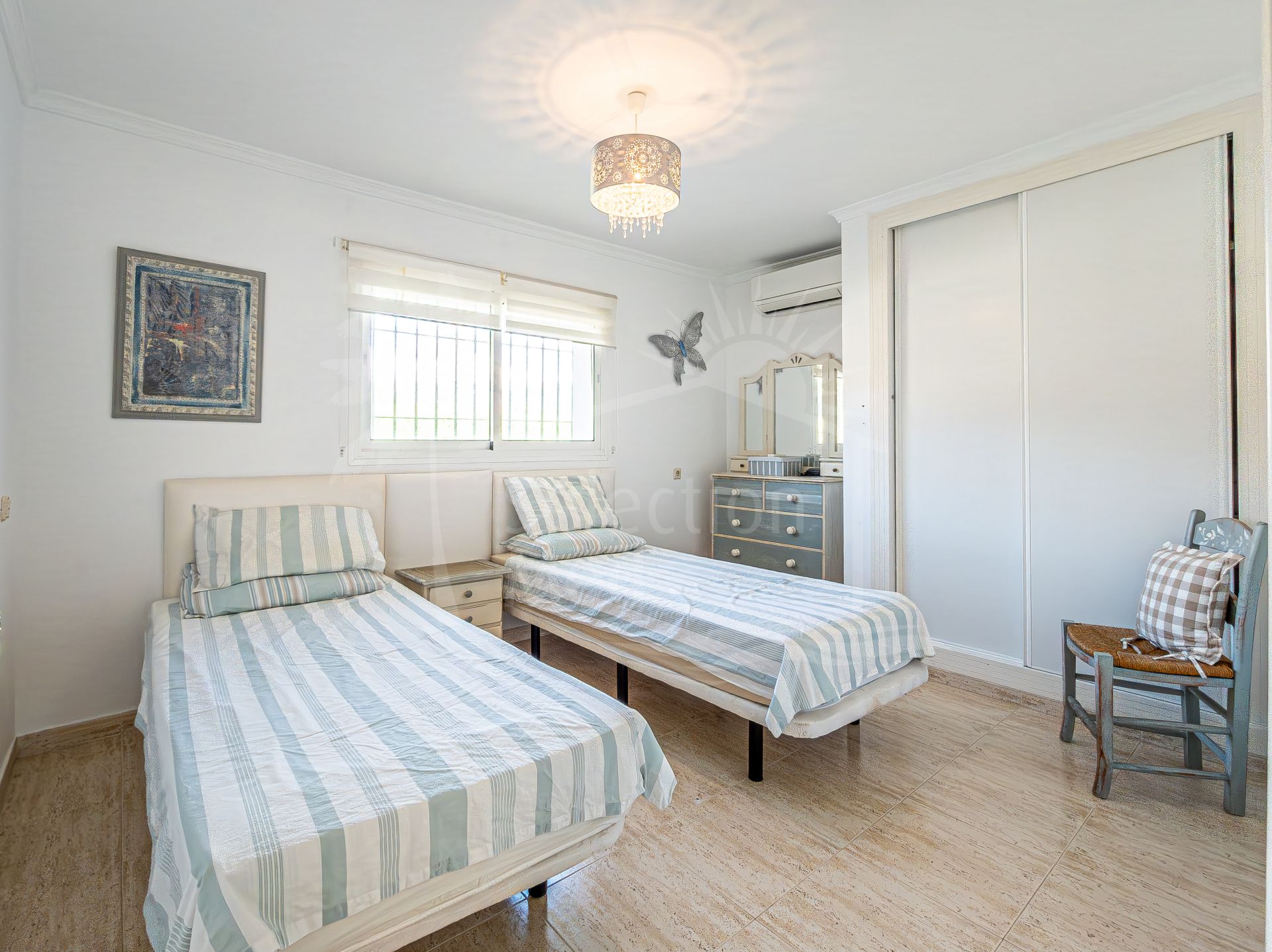 The villa features spacious and versatile accommodation, including five bedrooms and four bathrooms, three of which are en-suite. The interior presents a large living room, a dedicated dining area, and a well-equipped kitchen, complemented by a an office / bedroom for functionality. A guest room, guest toilet, and a ground floor patio further enhance the layout, while the private terrace, balcony, and covered terrace allow for seamless indoor-outdoor living. The property is wheelchair-accessible and in good condition, with significant potential for renovation to suit individual tastes.
