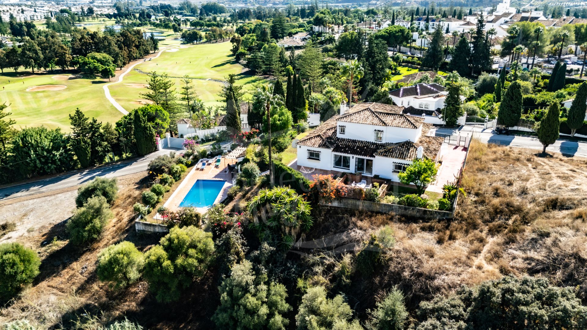 This exceptional five-bedroom villa, offered exclusively through sole agency, is situated in the prestigious Mijas Golf area of Mijas Costa, Malaga. Occupying a substantial 1,529m² plot with a built area of 385m², this property enjoys a front line golf position within an exclusive resort. The villa benefits from a completely tranquil setting with no direct neighbours, ensuring absolute calm and privacy. Panoramic 360-degree views take in the golf course, partial sea, mountains, and the picturesque Mijas Pueblo, making this a truly unique residence.