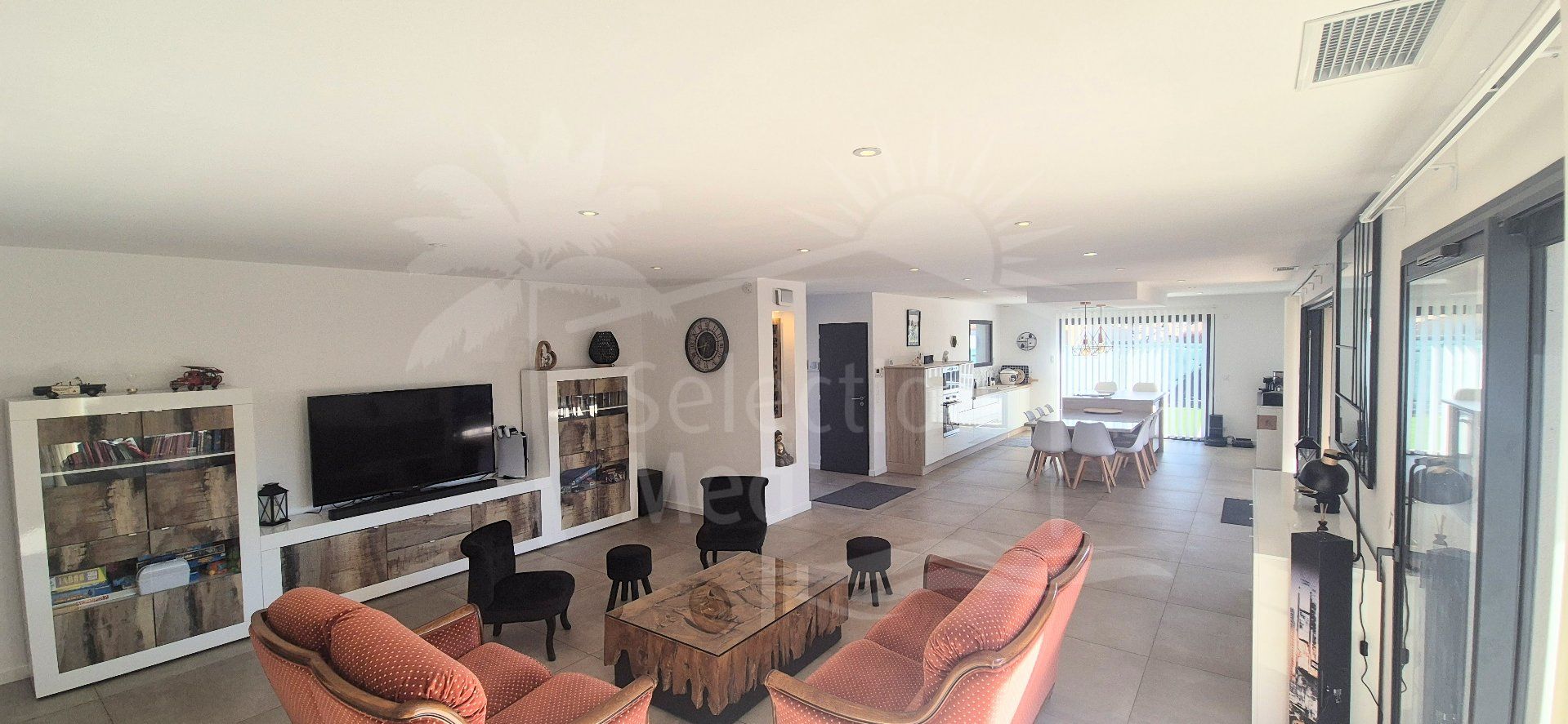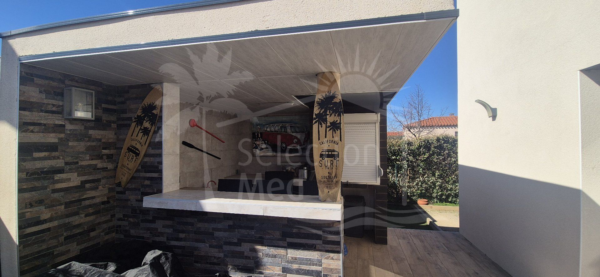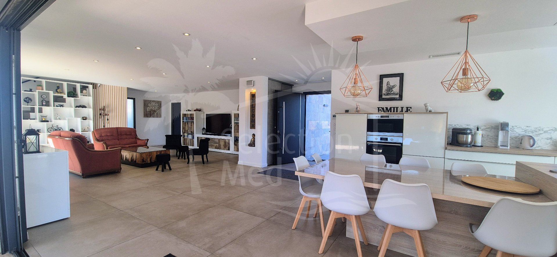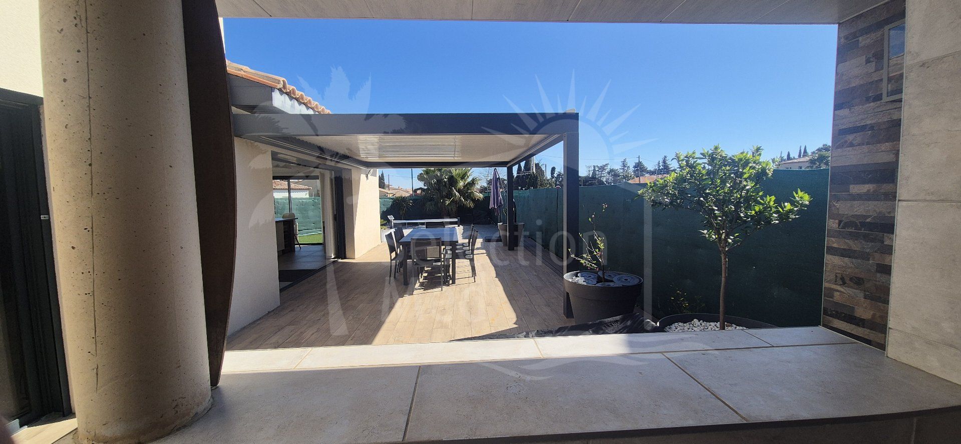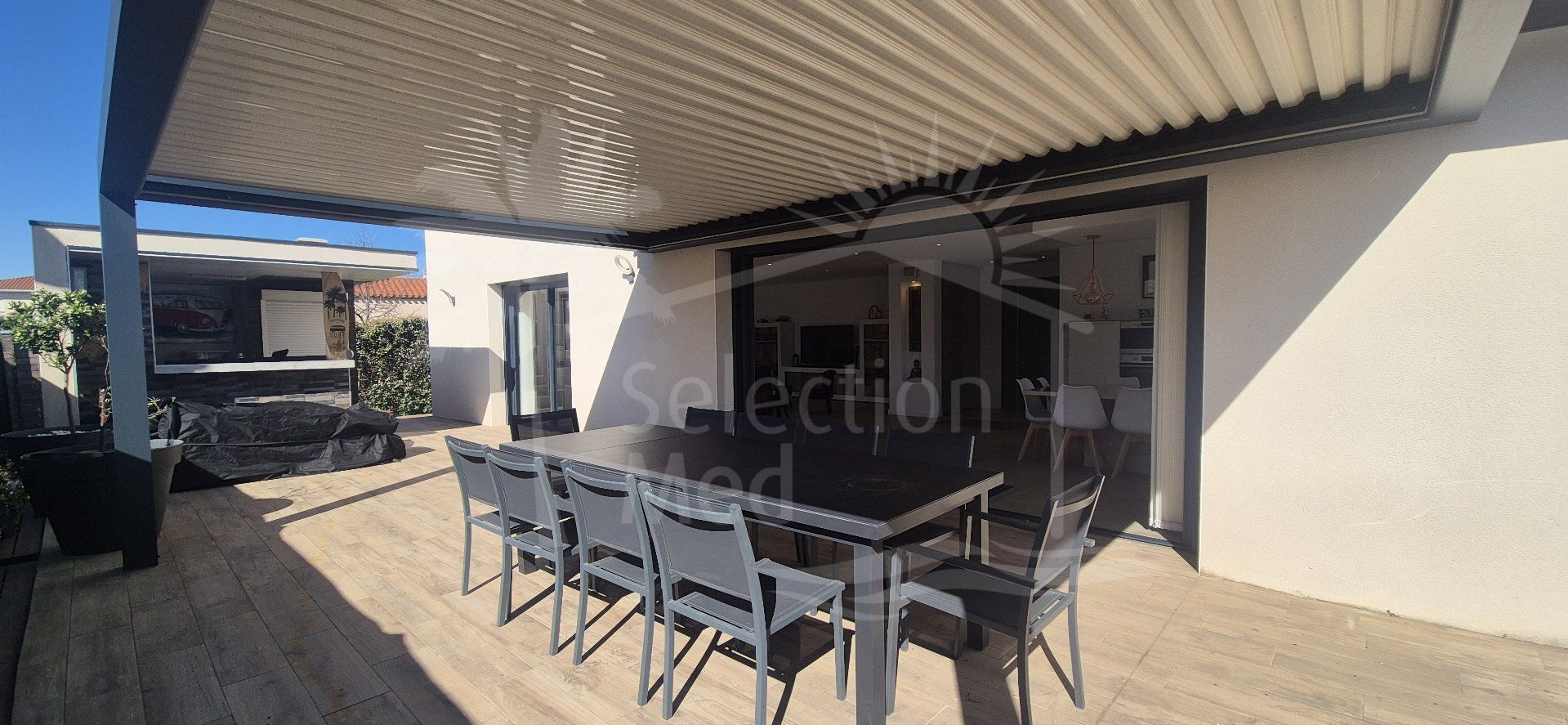 Beautiful detached villa of 140 m² with swimming pool in Millas. Located in the charming Catalan village of Millas, this superb detached villa of approximately 140 m² of living space, set on a 600 m² plot with a saltwater swimming pool and Mediterranean plants, offers an ideal living environment in a very quiet residential area, close (5-minute walk) to amenities and shops, and just a few minutes from the beaches, the mountains, and Spain. Upon entering the ground floor, you will discover a large, bright living room of approximately 70 m², opening onto a modern, fully equipped kitchen with a central island and dining area. This inviting space provides direct access to a large terrace with a motorized bioclimatic pergola, as well as a summer kitchen, perfect for enjoying the Mediterranean climate. The ground floor also includes a beautiful master suite with a dressing room and ensuite shower room, a separate WC, and a laundry/pantry. Upstairs, there are two bedrooms, one with a dressing room and the other with a built-in wardrobe, and a bathroom with a bathtub, walk-in shower, and WC. The exterior is thoughtfully designed for relaxation. The fully fenced grounds offer excellent amenities, including a saltwater swimming pool (8×4m) with a safety cover, a summer kitchen with a bar, a large terrace with a bioclimatic pergola (6×4m), a large pétanque court, a storage shed, and parking. For your comfort, the villa also features reversible air conditioning in every room, an alarm system, fiber optic internet, and a motorized gate. Built in 2020, the villa can also be sold furnished. As you can see, this luxury villa is a rare opportunity in this area, just waiting for its future owner to fully enjoy its comfort, high-end amenities, and privileged setting. Information on the risks to which this property is exposed is available on the Georisques website: www.georisques.gouv.fr