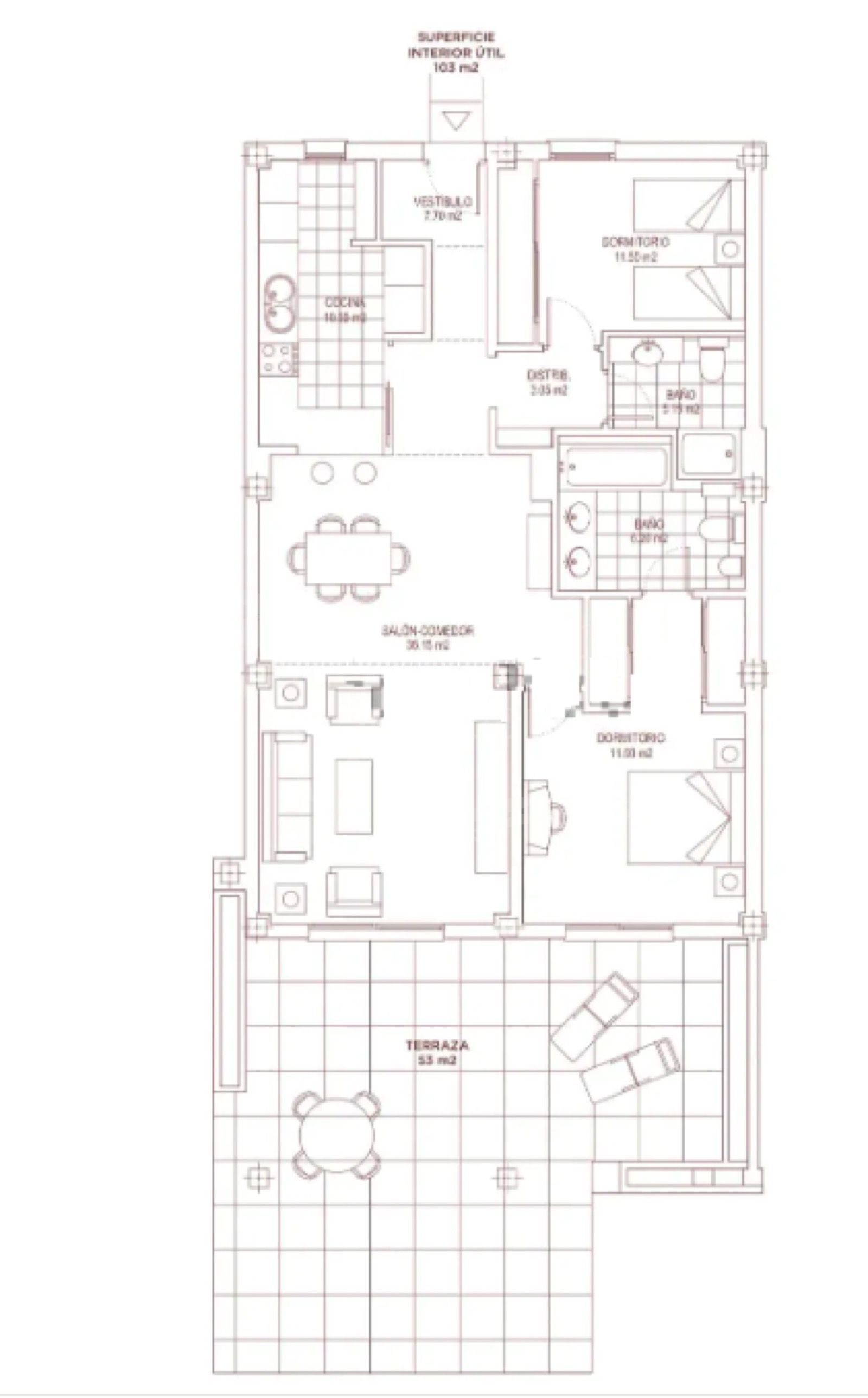 Spanning 125 m² of warm, inviting space, the apartment features a cosy layout with modern amenities like underfloor heating throughout and air conditioning. It includes two spacious bedrooms with fitted wardrobes, two full bathrooms, a fully equipped kitchen with laundry, and a generous living-dining room opening to a terrace – perfect for relaxing in the peaceful surroundings with total privacy. Sold fully furnished, it's ready to move in or rent out immediately, capitalising on high year-round demand, especially in summer.
