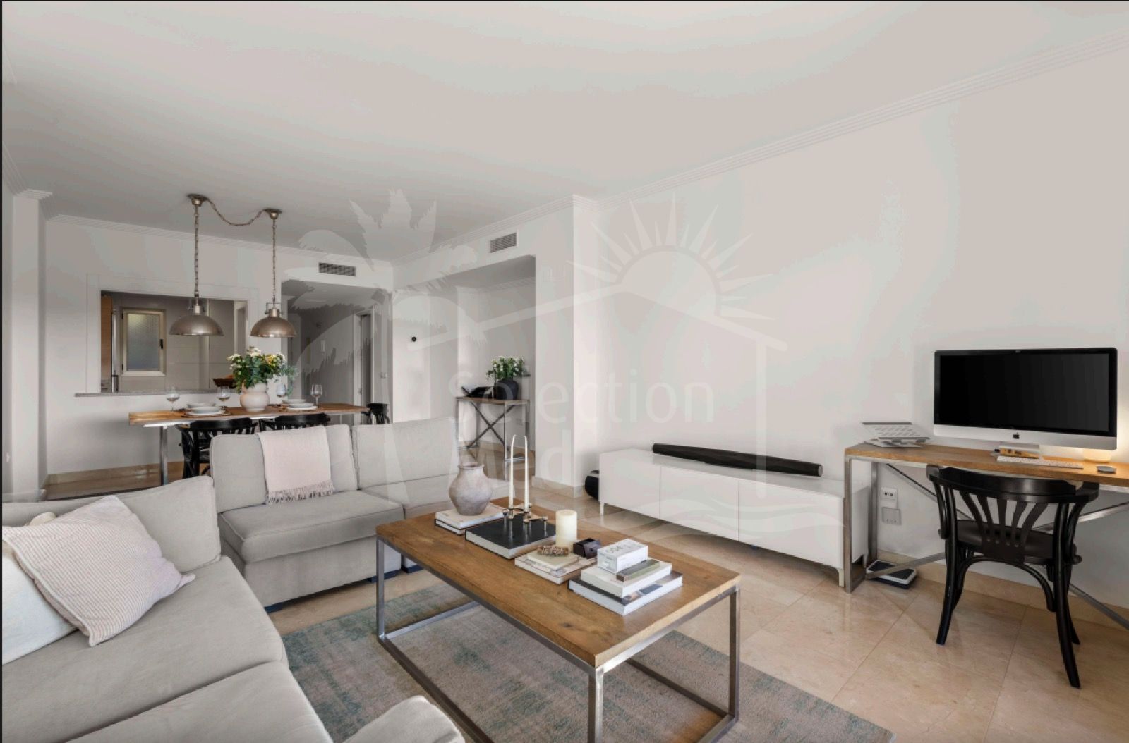 Welcome to this charming and comfortable 2-bedroom ground-floor apartment, offering beautiful views of the Mediterranean Sea and majestic mountains, situated in the prestigious gated community of Hacienda del Señorio de Cifuentes in Benahavís on the sun-drenched Costa del Sol. This secure, family-oriented resort boasts four swimming pools, stunning communal gardens, and a new gym currently under construction – all set within a low-density environment of 23 apartment blocks with plans for expansion, providing a resort-like atmosphere with 24-hour security and panoramic vistas over golf courses like Atalaya, the sea, Gibraltar, and even the African coast on clear days. Just 15 minutes from Puerto Banús' glamorous marina and the beaches, with easy A-7 access to Marbella or Estepona's historic old town, it's ideal for year-round living, holidays, or investment in Benahavís' thriving market, where similar properties see 10-15% annual appreciation and strong rental demand.