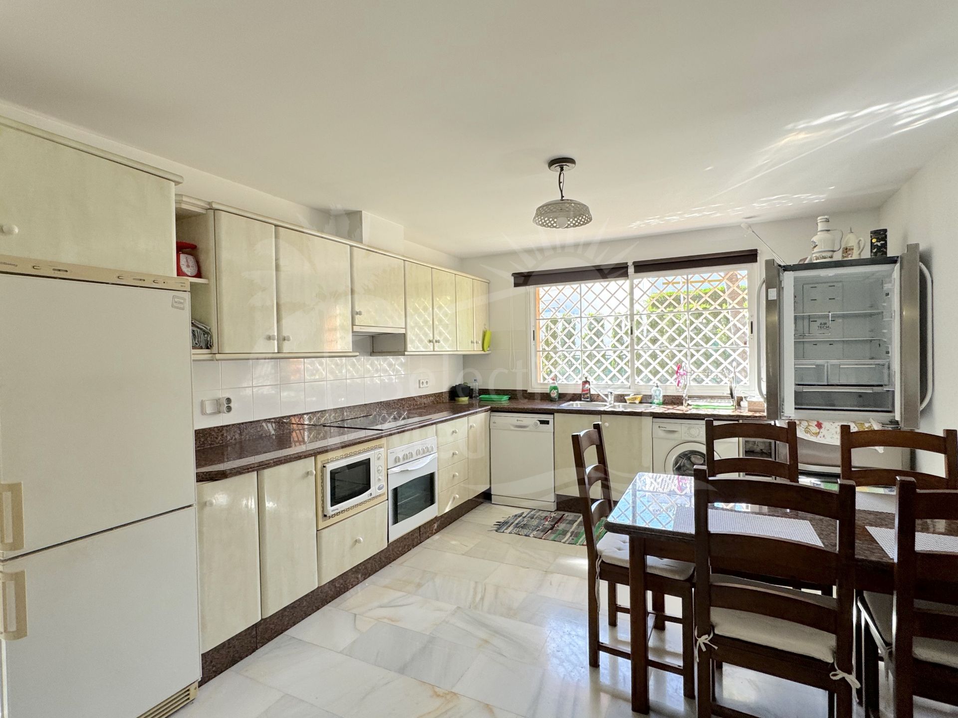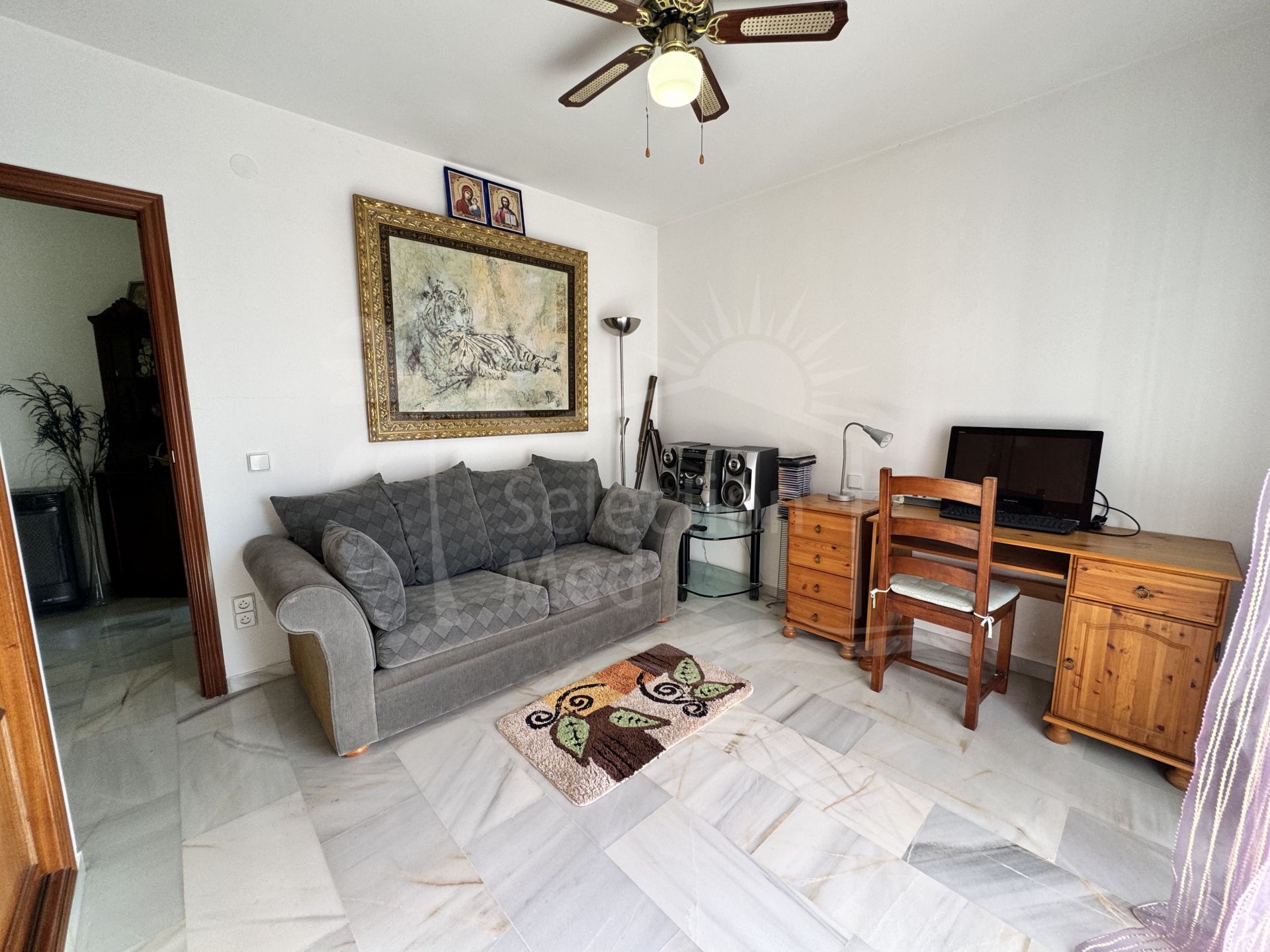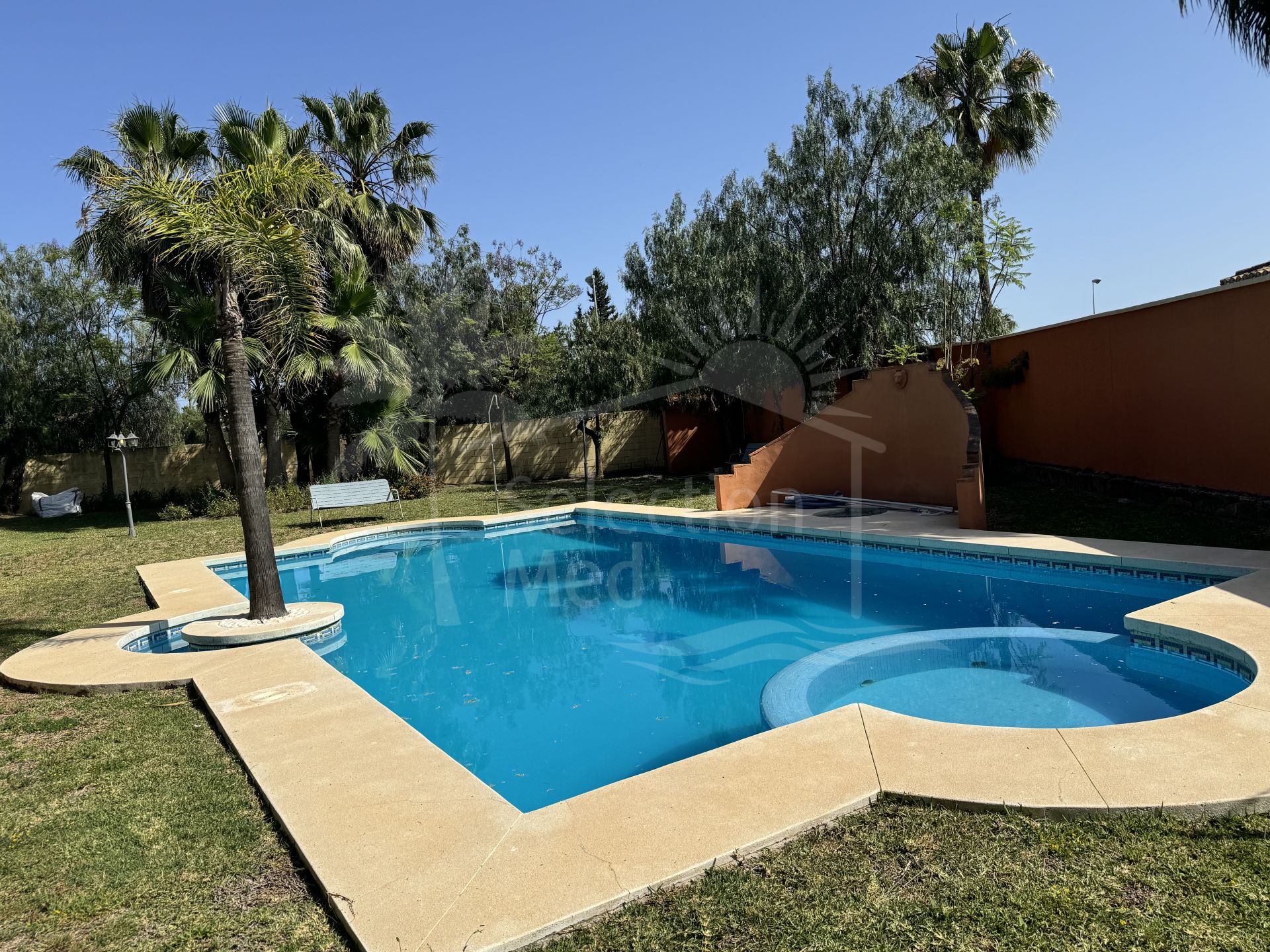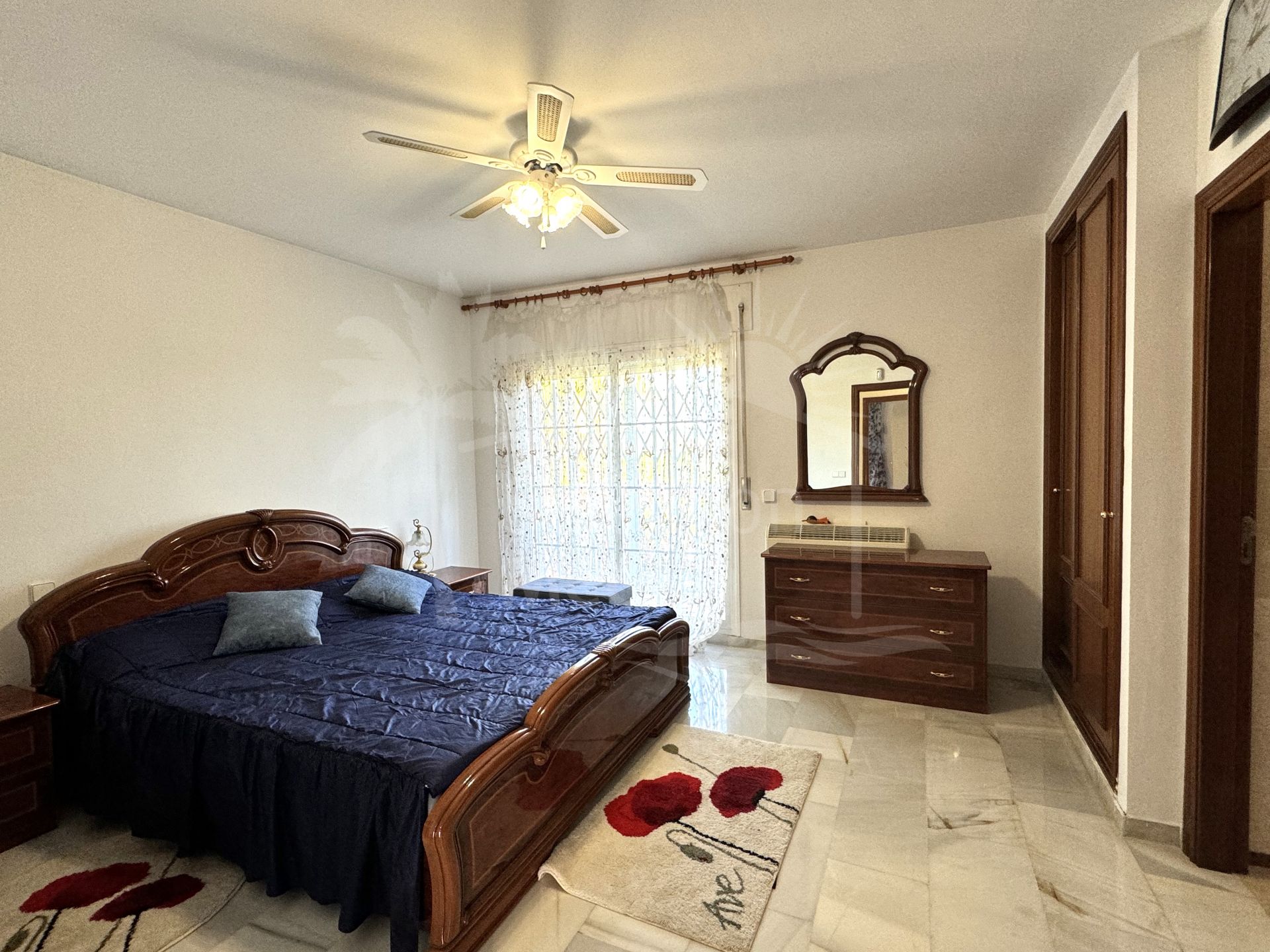 For sale an elegant detached villa of Mediterranean architectural style, located within a quiet private gated development offering landscaped gardens and a communal swimming pool. The property sits on a 646 m² plot and offers 157 m² of constructed area, distributed over two levels. Its south-facing orientation ensures abundant natural light throughout the day.