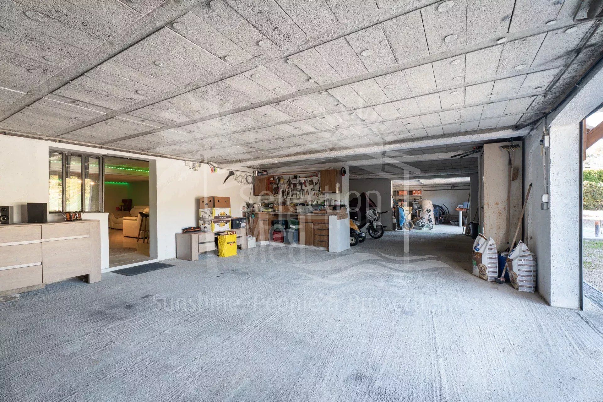 The villa features a 100 m² single-storey garage for up to five vehicles, as well as several outdoor parking spaces.