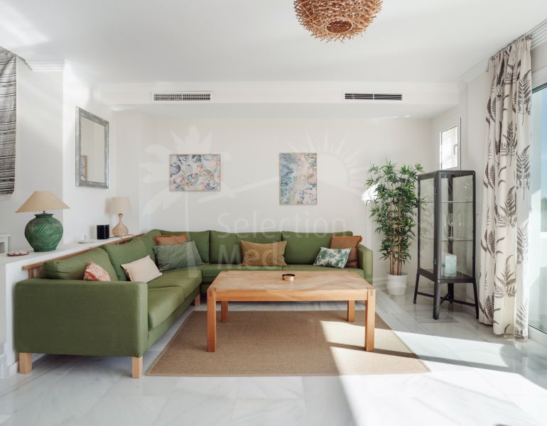 This stunning three-bedroom first floor apartment, located in the sought-after area of Nueva Andalucía, Marbella, offers an exceptional blend of etnic-Scandinavian, boho design, comfort, and elegance. Fully refurbished to an impeccable standard, the property boasts a bright open-plan living and...