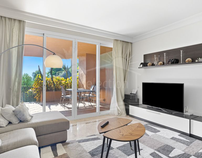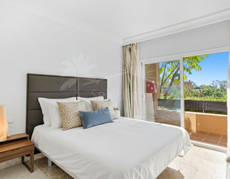 Elegant ground-floor apartment located in one of the most exclusive and peaceful developments in Nueva Andalucía. This carefully maintained property offers the perfect blend of comfort, privacy, and Mediterranean charm. It features two spacious bedrooms and two bathrooms, including a...