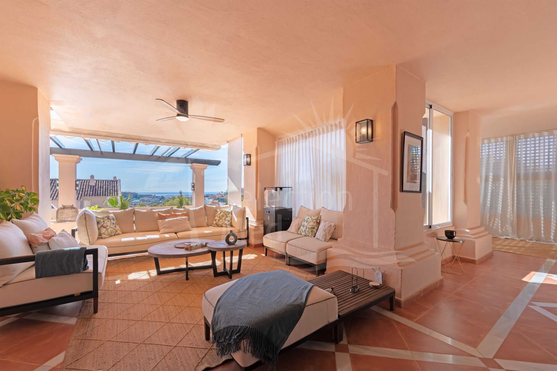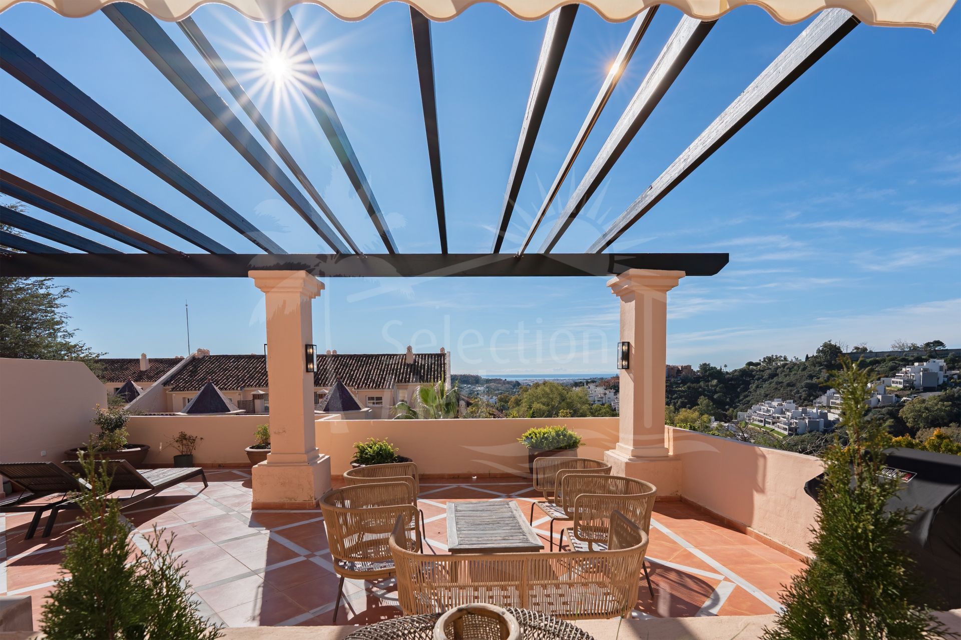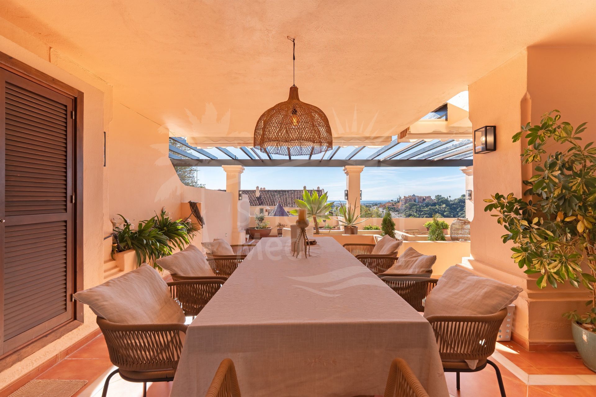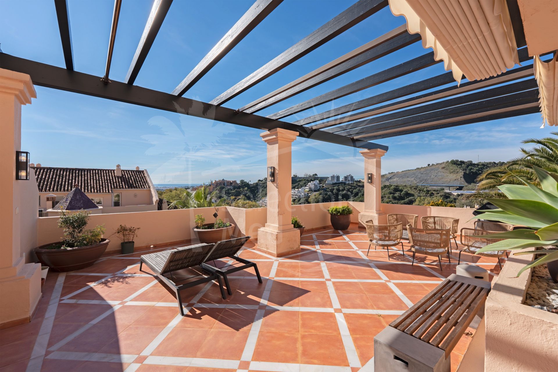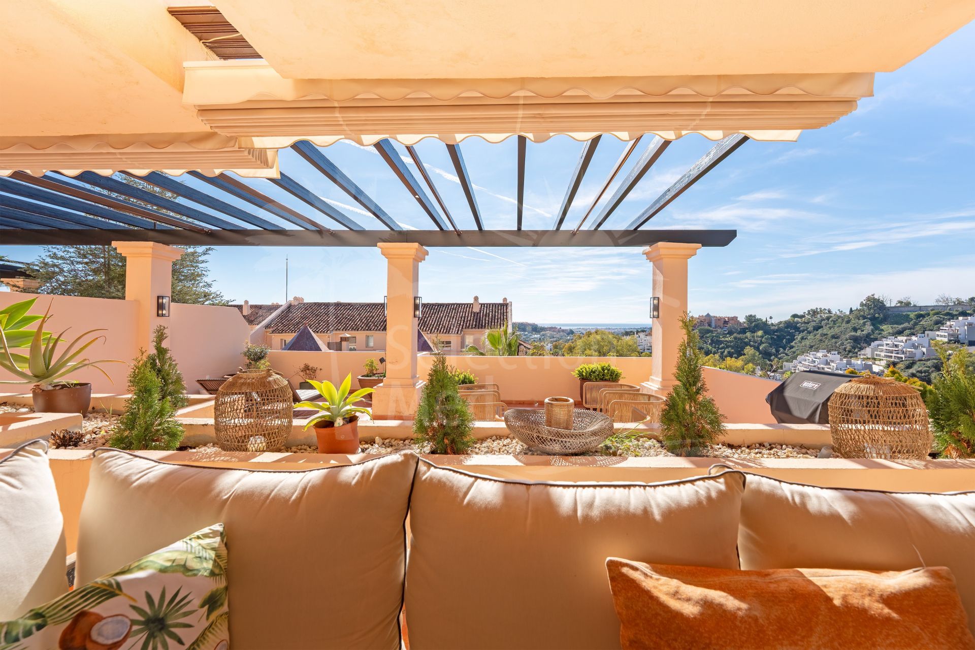 Offering a total of 287 m² of refined interior living space and sunny terraces—the property captures the essence of indoor-outdoor Mediterranean living. The apartment features three spacious en-suite bedrooms, a guest toilet, and large living areas filled with natural light. The expansive terrace serves as the heart of the home and is the true focal point—perfect for entertaining, unwinding, enjoying the mountain and sea views, or dining under the stars.