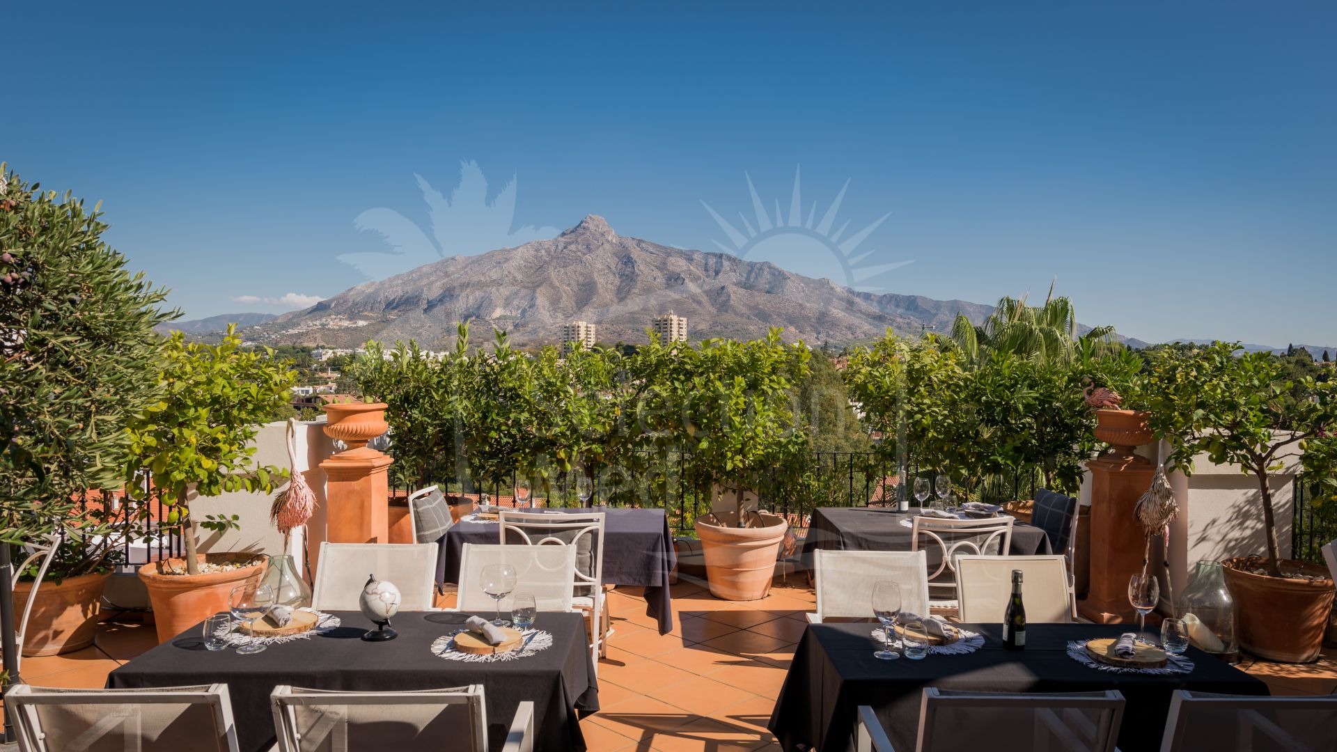 Amazing unique property in the heart of Nueva Andalucia. Perfectly situated, the property boasts breathtaking views of La Concha and offers a tranquil retreat with a very large terrace with charming lemon trees.