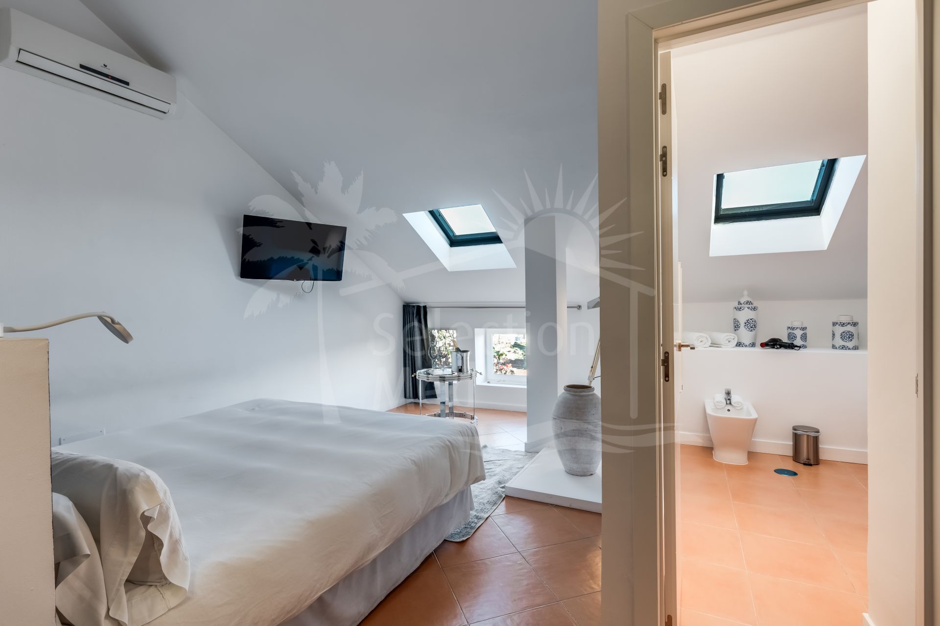Balconies on every side of the property, complete with lemon trees, as well as attic windows, provide abundant natural light and an enchanting connection to the outdoors.