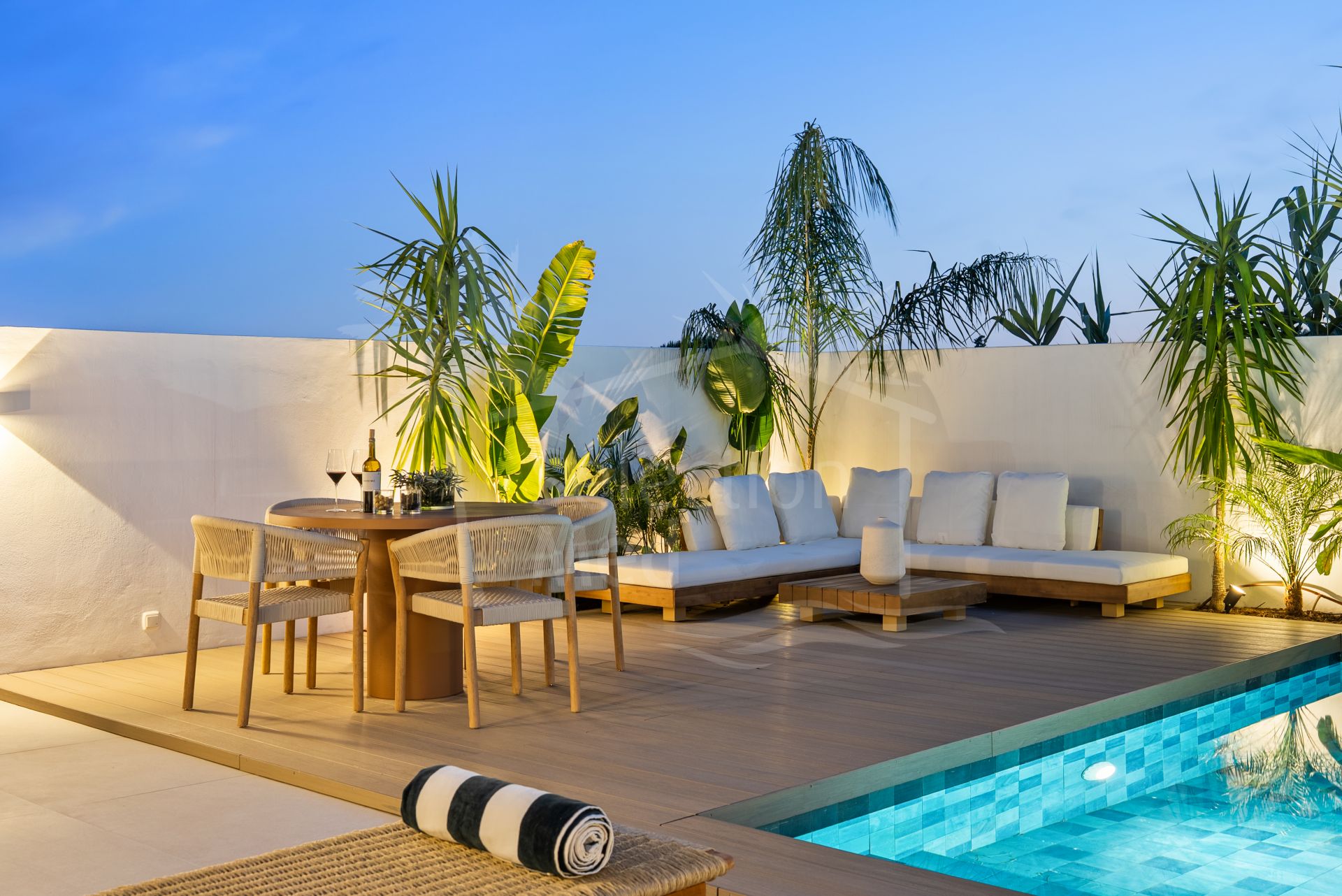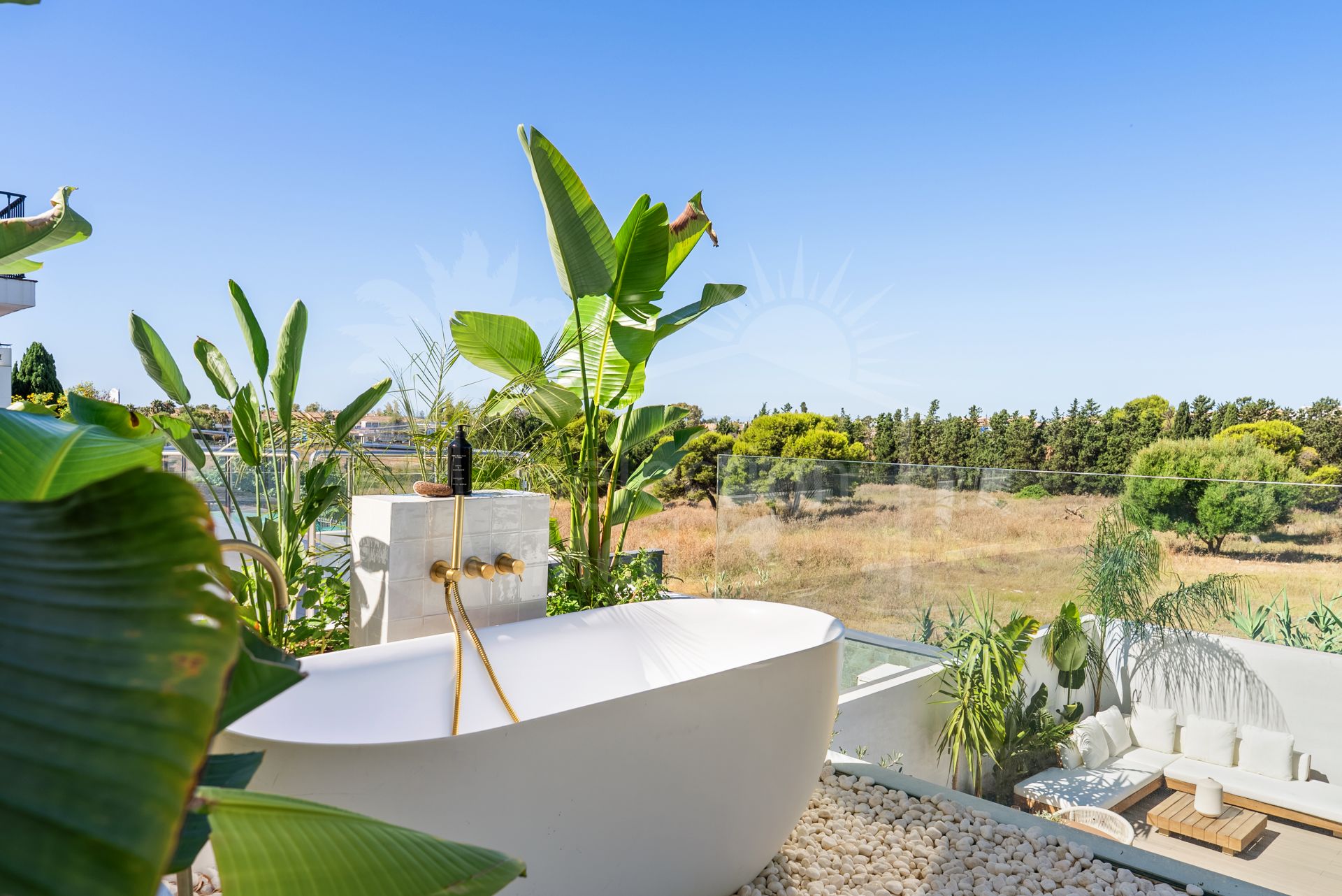 Modern Marbella Townhouse with Rooftop Terrace and Outdoor Bathtub