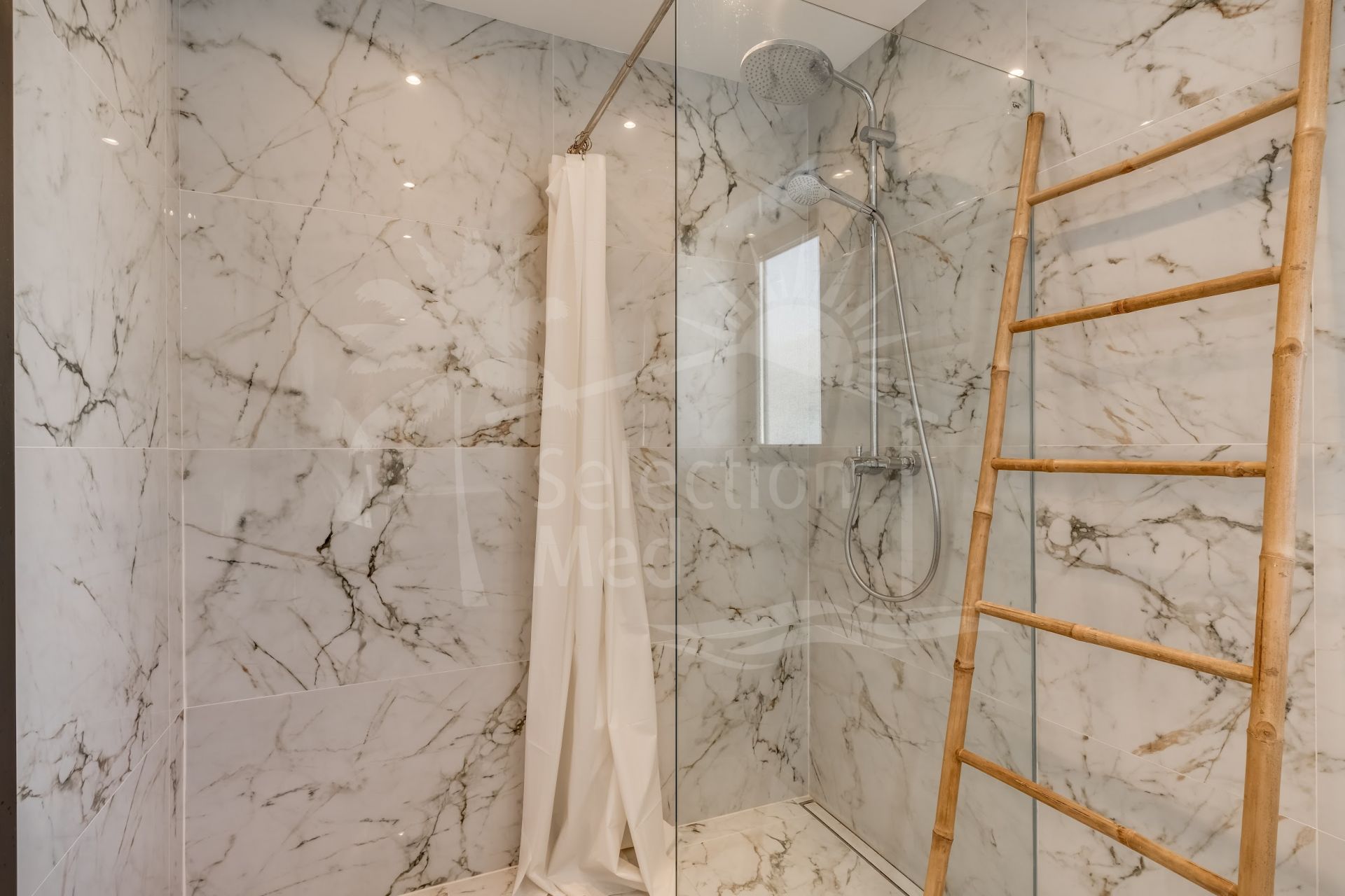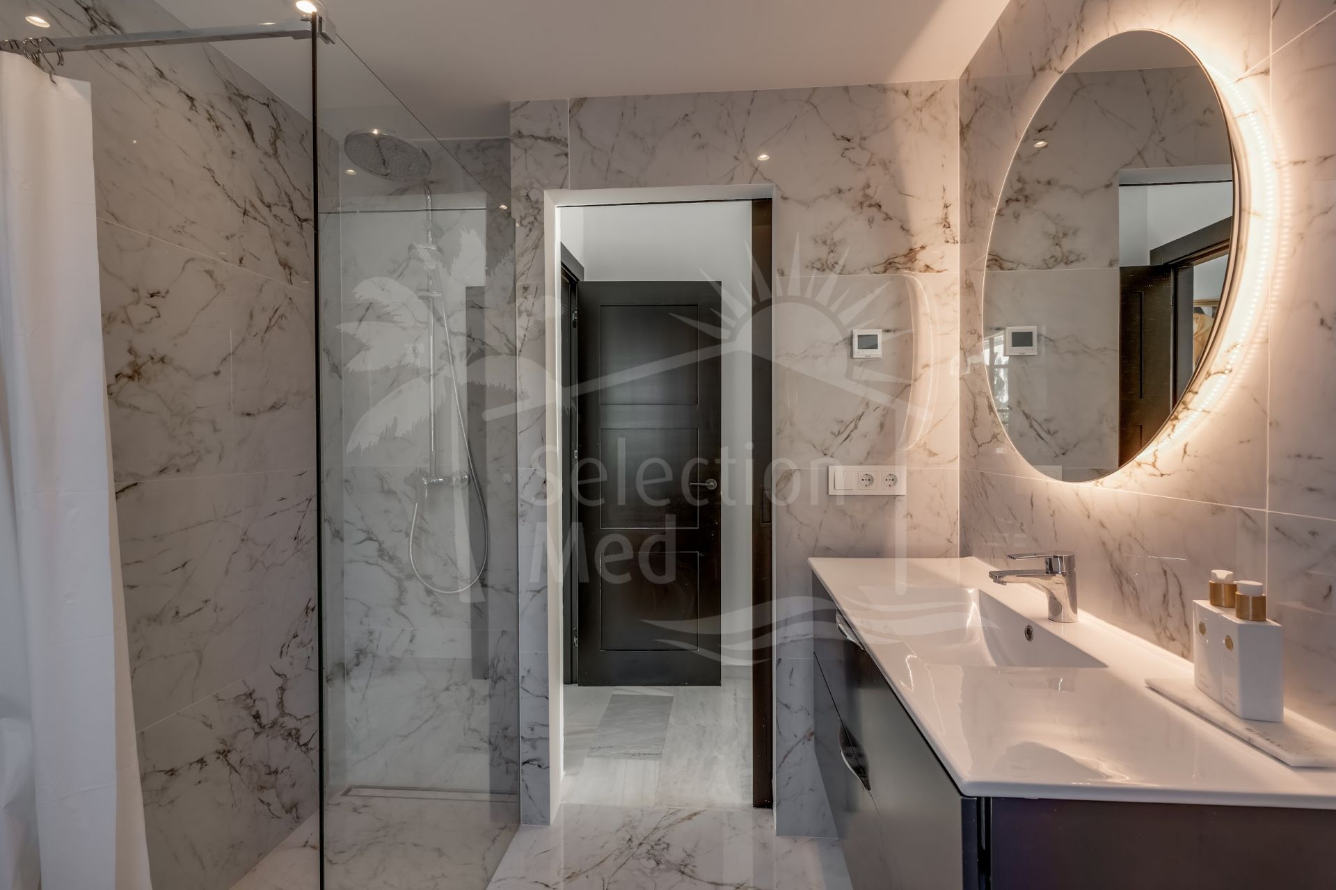 Upper Level: The master suite offers an en-suite bathroom and elegant design, ensuring a serene and private retreat. An additional en-suite guest bedroom is also located on this level, ideal for family or guests. Both bedrooms have balconies, allowing you to enjoy the views and Mediterranean climate. There is also a spacious terrace on this level.