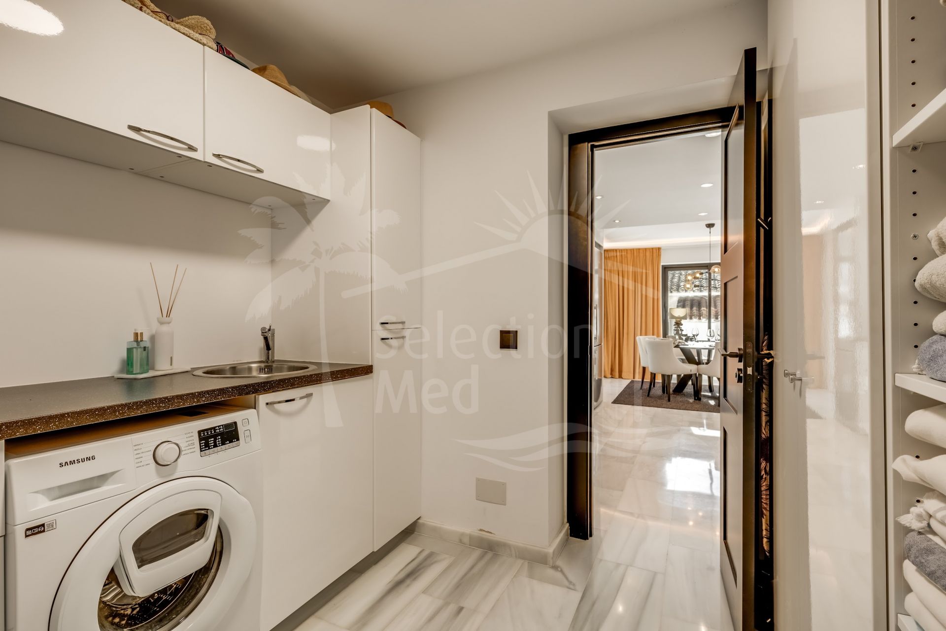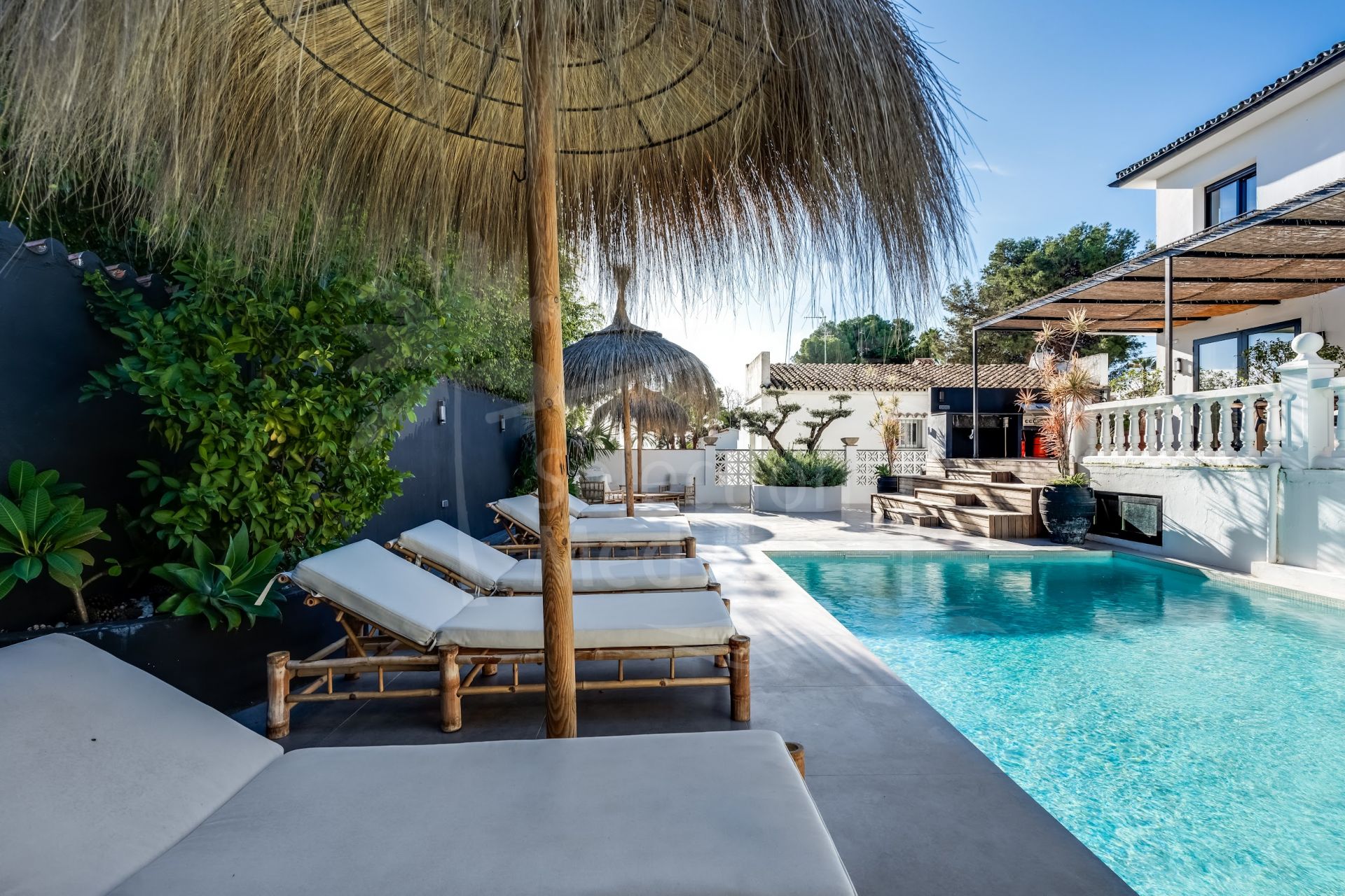 This stunning villa, recently renovated just one year ago, is perfectly located in Nueva Andalucía. Situated close to the beach and within walking distance of all amenities, this property offers an exceptional blend of convenience and luxury.