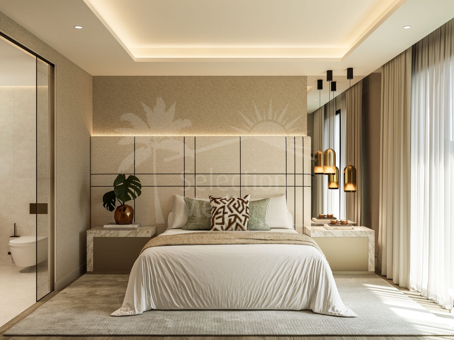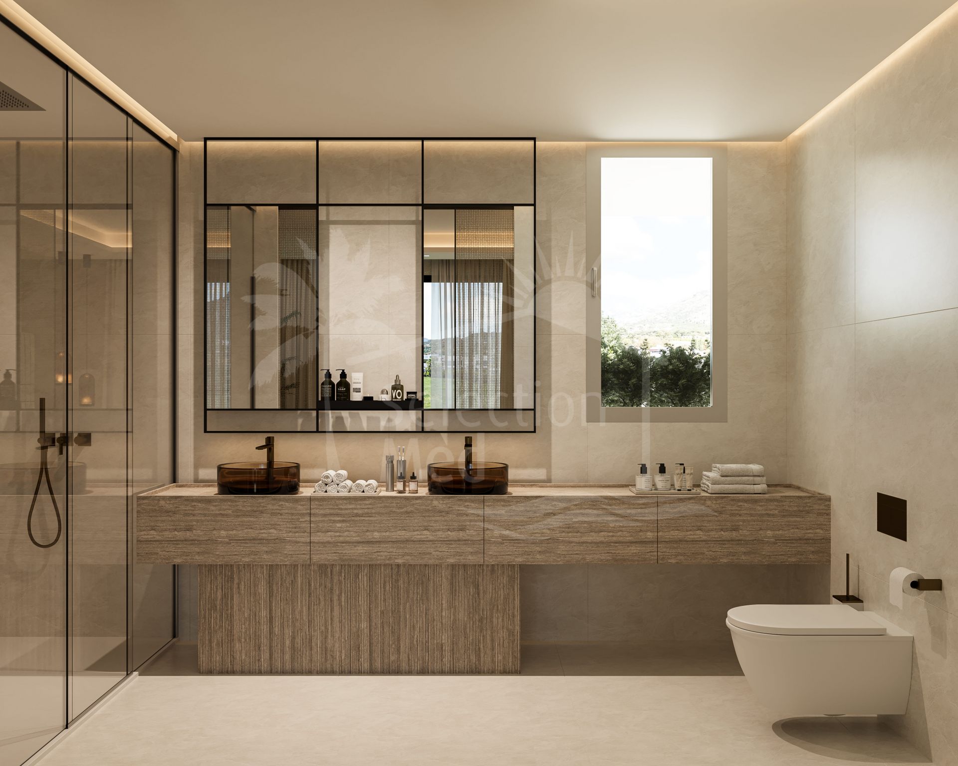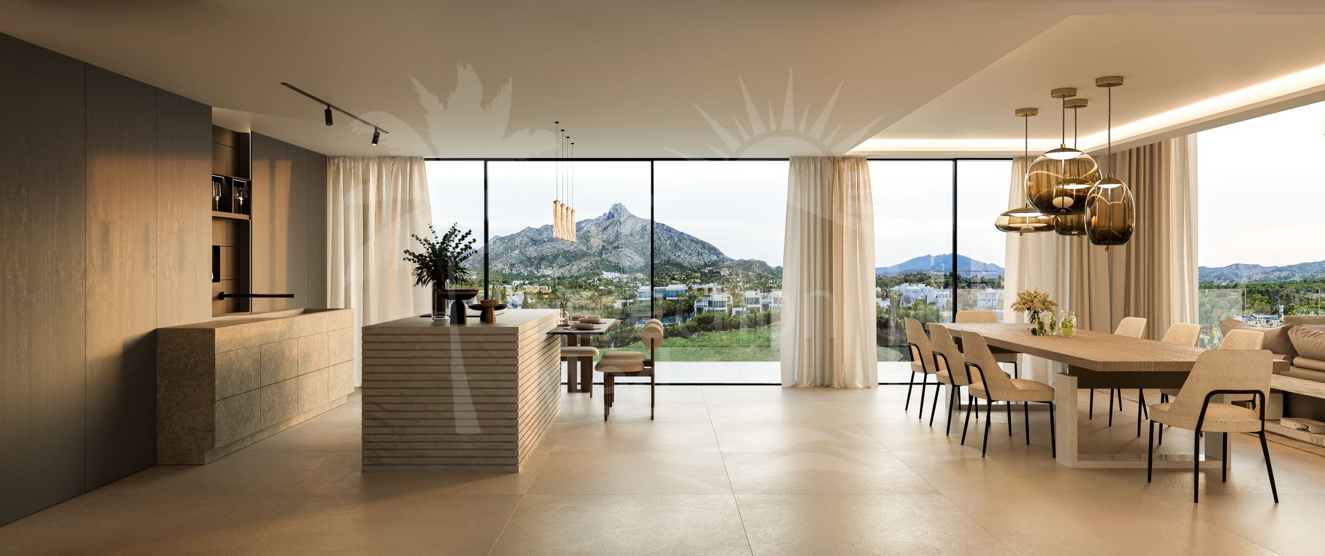 Designed by renowned architects Jesús Estepa Rubio and Antonio Estepa Rubio of ER Arquitectos, and styled by AALTO Exclusive Design, the villa showcases a harmonious fusion of natural stone, sleek glass elements, and clean architectural lines. The open-plan living and dining areas are bathed in natural light, thanks to floor-to-ceiling windows that frame breathtaking views of the surrounding landscapes.