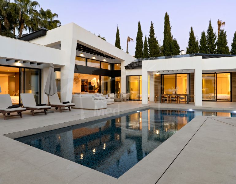 Villa Satori is an exceptional contemporary residence located in Nueva Andalucía, just steps from the prestigious Las Brisas Golf Club and only a few minutes from the world-renowned Puerto Banús. Set on a generous 1,014 m² plot with over 650...