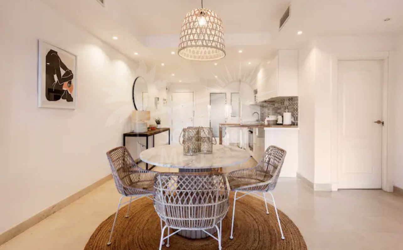 The property boasts a bright and contemporary open-plan layout, where the living and dining areas seamlessly connect to a private terrace—ideal for enjoying Marbella’s year-round sunshine, whether relaxing or entertaining guests. Both bedrooms are generously sized, offering a शांत and private atmosphere, while the two modern bathrooms are finished to a high standard with quality materials and refined design.