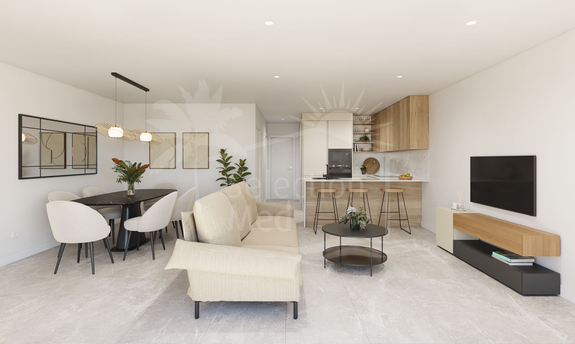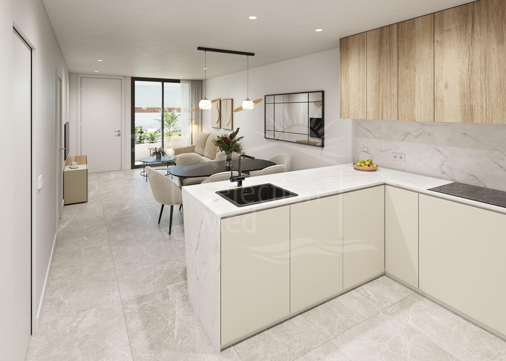 Choose between 2 or 3 bedrooms, with ground floors featuring private gardens or top floors with private solariums — designed for the ultimate Mediterranean lifestyle.