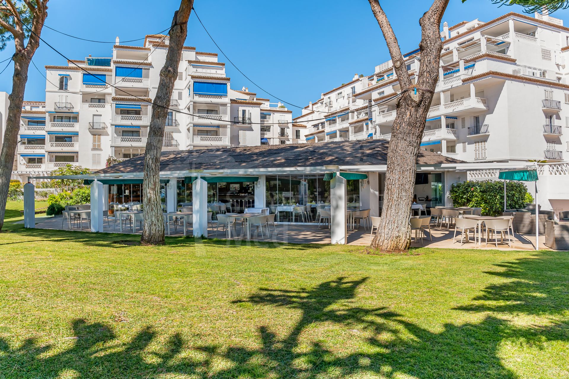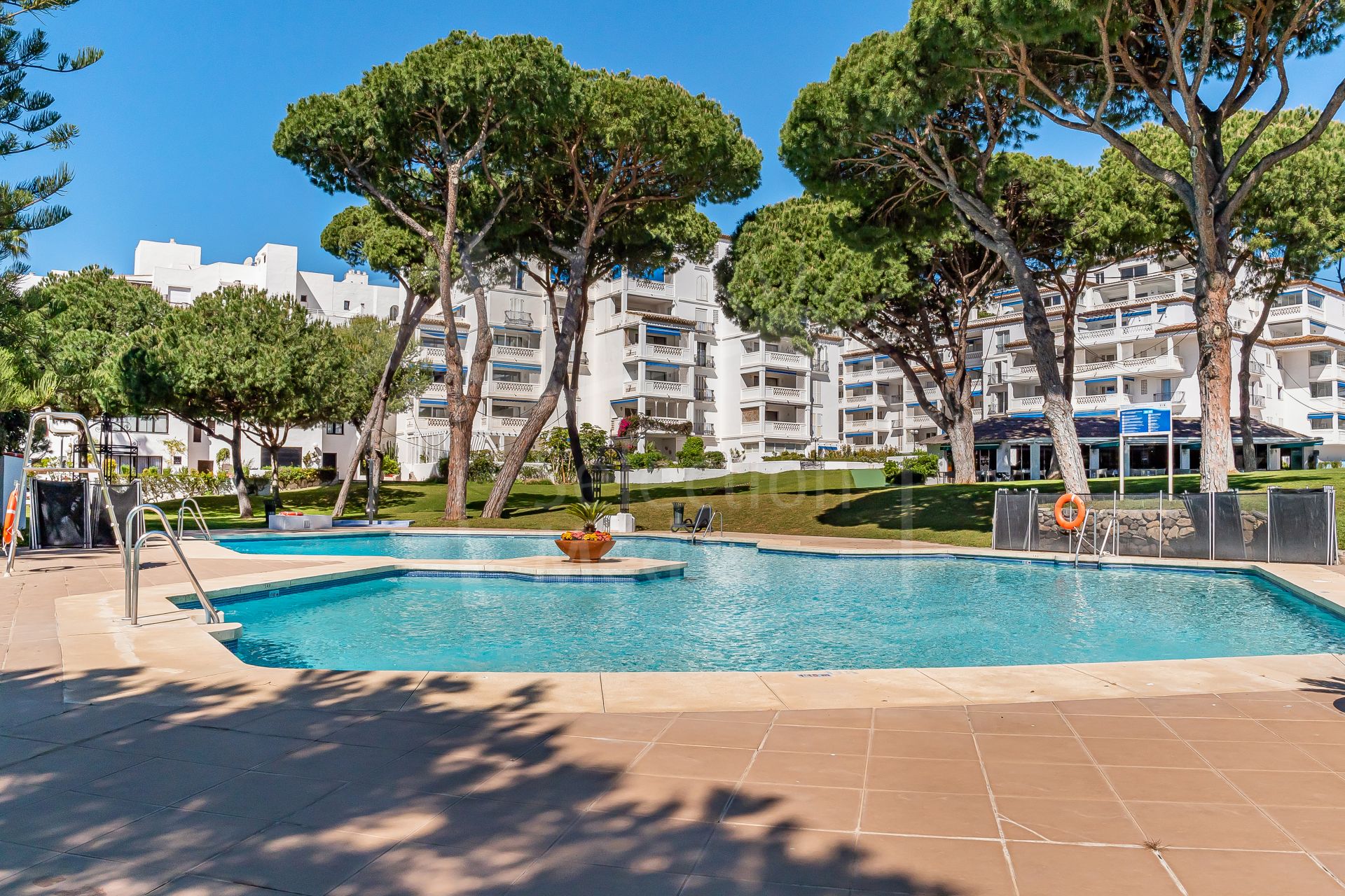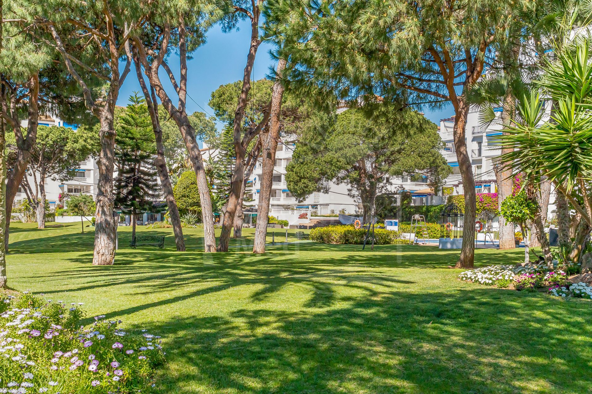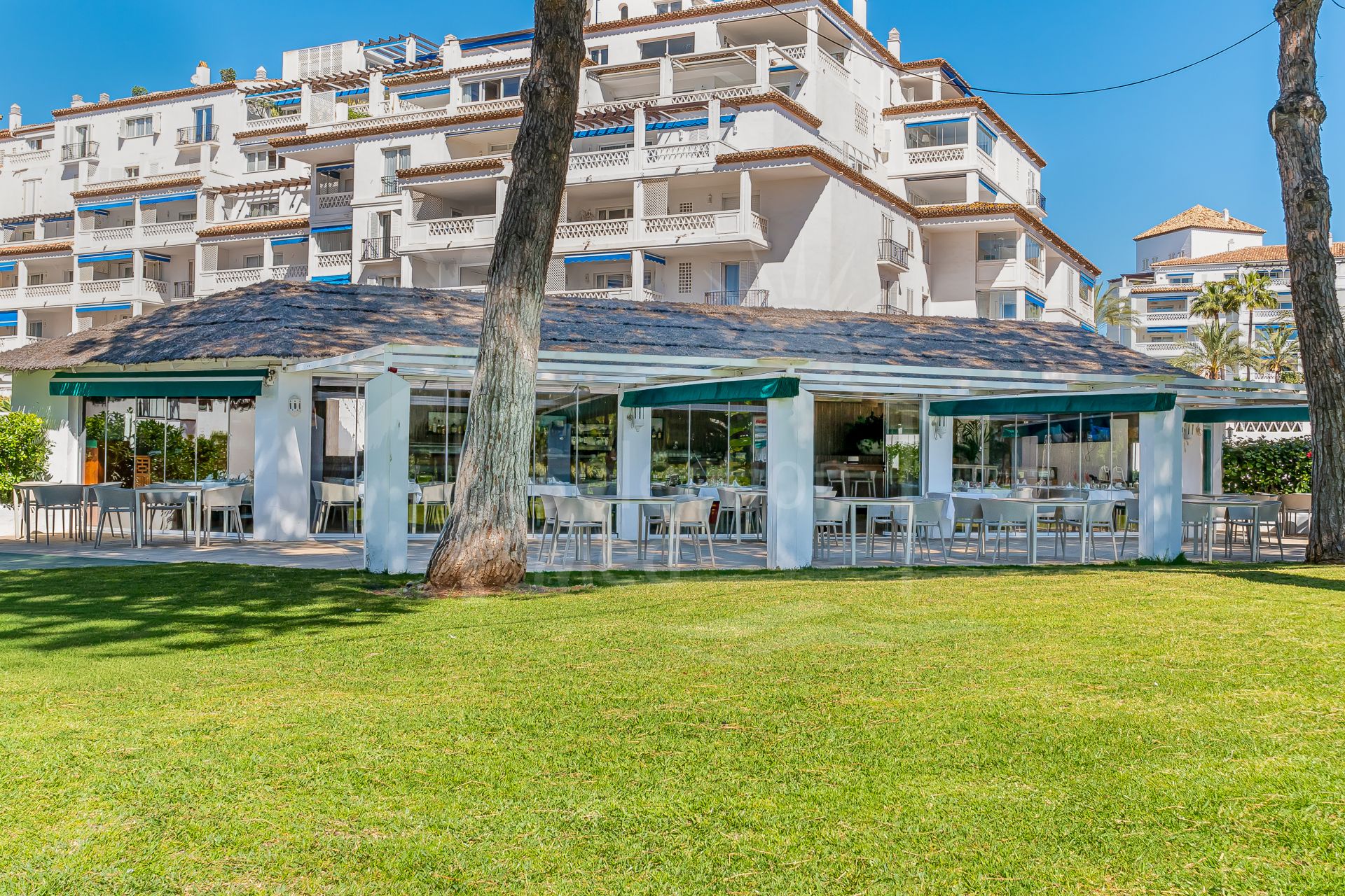 Set right on the beachfront in the heart of Puerto Banús, Playas del Duque is one of the area’s most prestigious residential communities. It features over 30,000 m² of tropical gardens, direct beach access, three outdoor pools, 24-hour security, as well as a gym, spa, and even a private restaurant for residents — it really feels like a peaceful oasis with everything you need close by.