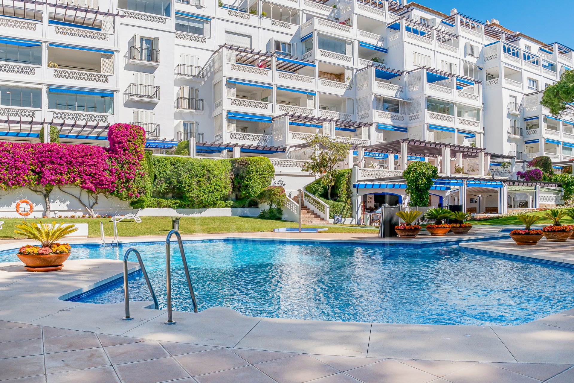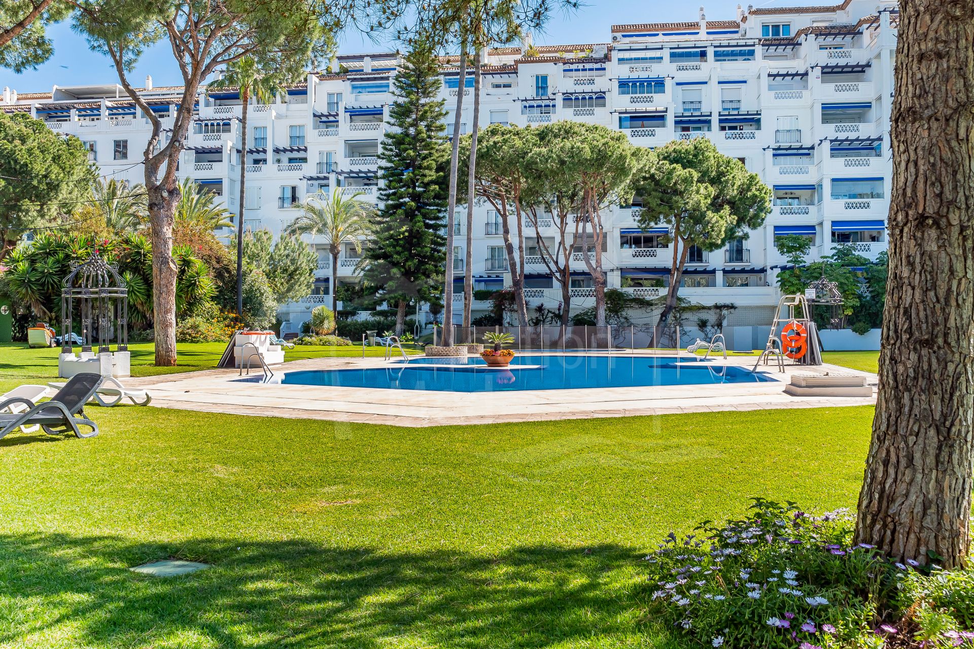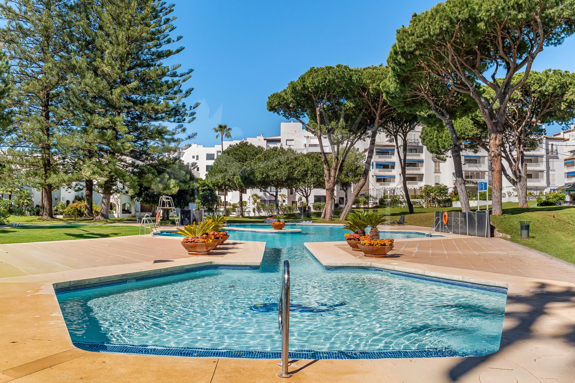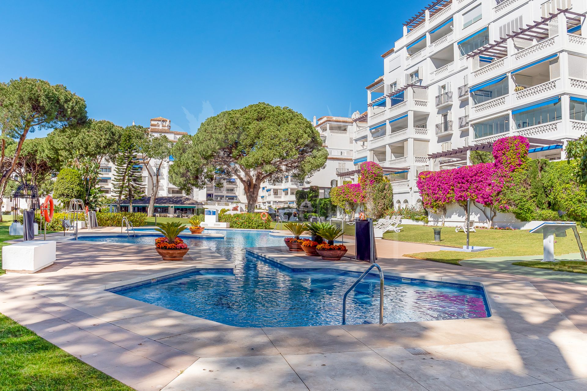 Set right on the beachfront in the heart of Puerto Banús, Playas del Duque is one of the area’s most prestigious residential communities. It features over 30,000 m² of tropical gardens, direct beach access, three outdoor pools, 24-hour security, as well as a gym, spa, and even a private restaurant for residents — it really feels like a peaceful oasis with everything you need close by.