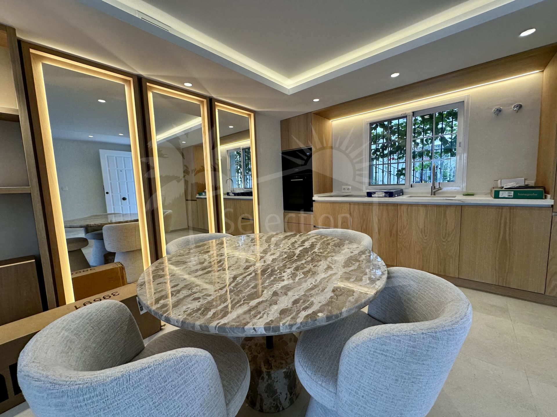 This fully renovated townhouse on Marbella’s Golden Mile offers an exceptional blend of modern design, high-quality finishes, and a prime location just steps from the beach. Situated within a secure gated community, the property is within walking distance of the Puente Romano Resort, the Marbella Club, and some of the area’s most prestigious restaurants, including Nobu, Coya, and Sea Grill—placing the best of Marbella lifestyle right at your fingertips.