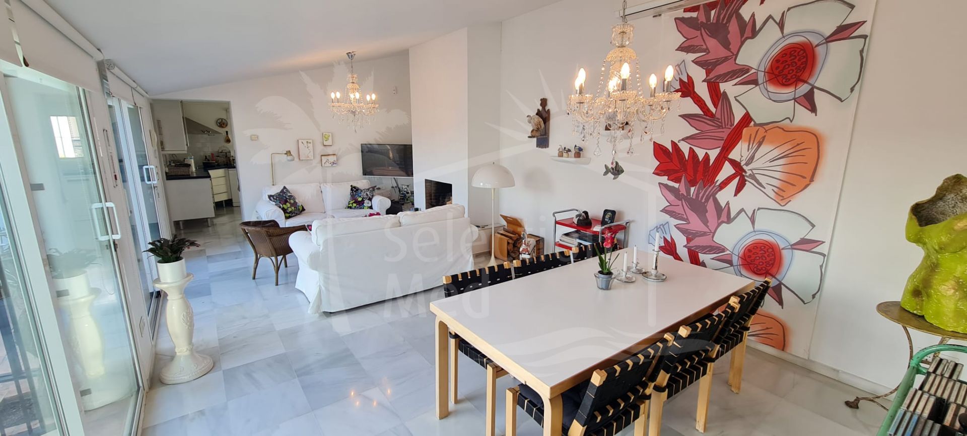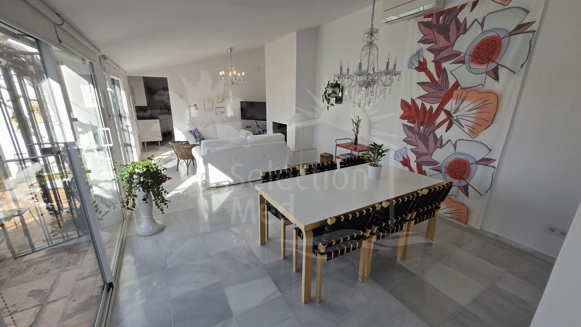 This refurbished villa, situated in the prestigious area of Puerto Romano, Estepona East, presents an exceptional opportunity for those seeking quiet living on the Costa del Sol. Set on a generous plot of 1,079m² and boasting 284m² of beautifully designed interior space, the property offers both privacy and stunning panoramic sea, mountain, country, garden, and pool views. The villa features four spacious bedrooms and three en-suite bathrooms, in addition to a guest toilet, making it ideal for families or those who enjoy entertaining guests.