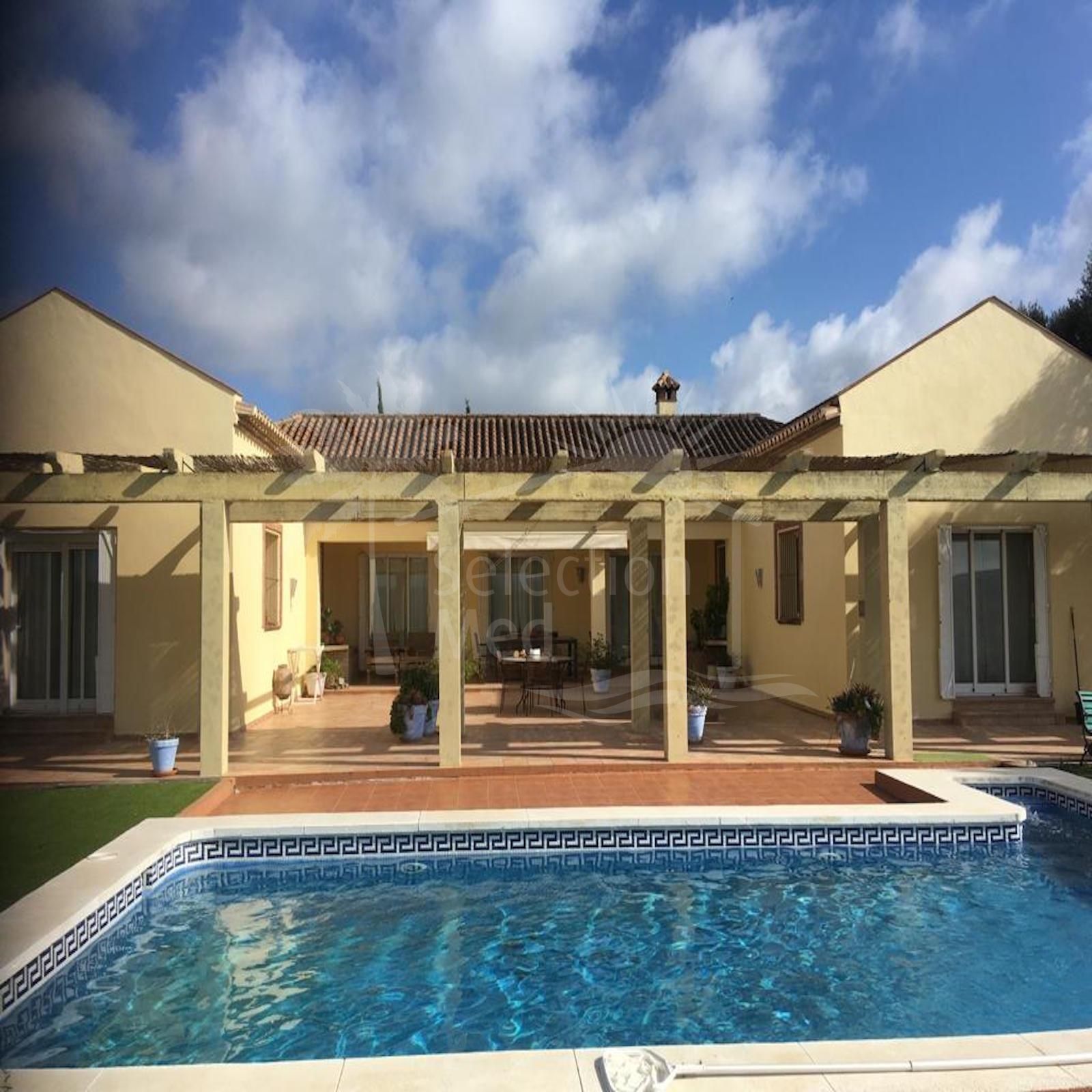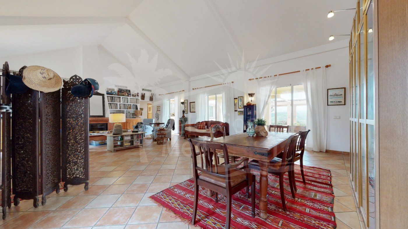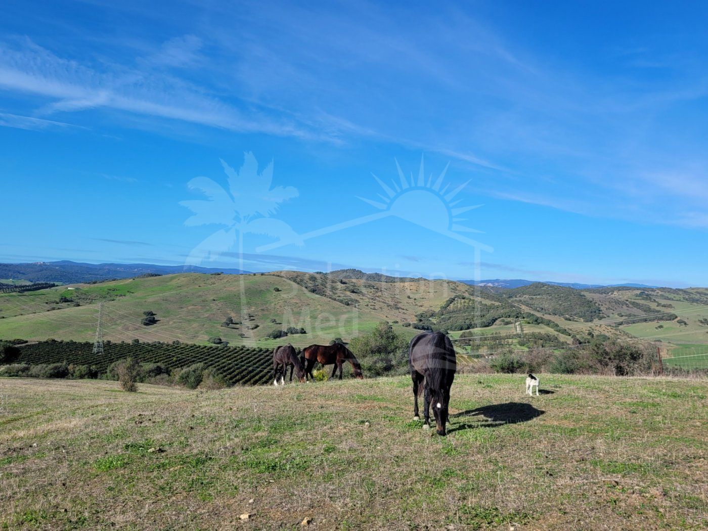 Wonderful country estate (horses), 6 dorm, very close to Sotogrande. Montenegral is located in the heart of the Horse Valley, a name which is not surprising in a landscape of green fields and Mediterranean forests, Cork trees and Orange groves. It’s common to see horse riders along the innumerous tracks due to the 12 polo fields in the surrounding area. Plus the beautiful and semi abandoned Eiffel Bridge (yes, the one of the Tower). All of this, pure countryside, exactly 15 minutes by car from Ke in the centre of Puerto de Sotogrande. This property is less than five minutes walking from the exquisite Hotel Spa Finca Monasterio. It has a total surface of 17 Hectares (42 acres), with a main house of 16 years old, well maintained and with an internal surface of 300 sqm, all on one floor, for many a true luxury. It also has ample terraces, a swimming-pool and several other annexes, including 6 horse boxes (the owner has had as many as 18 horses at a time free in the fields). The property has its own well and wáter storage capacity of up to 30.000 litres. It is connected to the general electric supply aswell as an individual system of solar panels. When you reach the house, half way up a slight hill, you access directly into a very large living and dining area with a chimney and high ceilings. This leads onto an ample porch and pool area enjoying panoramic views of the countryside…and only the countryside. On one side of this ample living space there are three large bedrooms with two bathrooms. On the other side is the master bedroom with en suite and walk-in closet. A door leads to the service area: large kitchen with two additional rooms and bathroom, which could have many purposes (staff, storage, office etc,…). Overall up to six bedrooms and four complete bathrooms. A special property meant for someone who really loves the countryside, dogs and horses…if you belong to this group, it is very likely you will adore it. We are ready to show it to you.