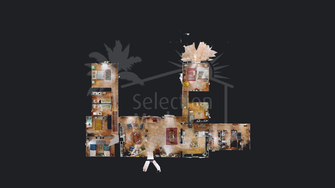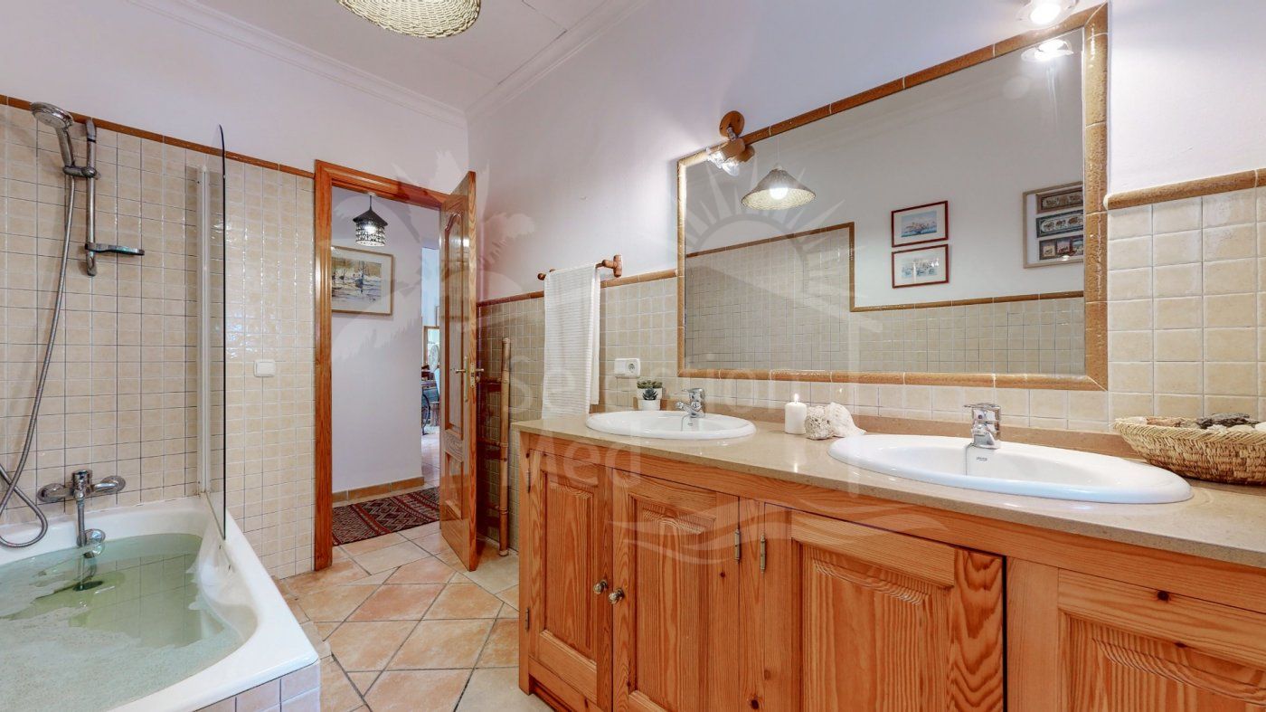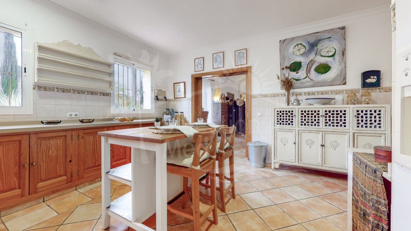 Wonderful country estate (horses), 6 dorm, very close to Sotogrande. Montenegral is located in the heart of the Horse Valley, a name which is not surprising in a landscape of green fields and Mediterranean forests, Cork trees and Orange groves. It’s common to see horse riders along the innumerous tracks due to the 12 polo fields in the surrounding area. Plus the beautiful and semi abandoned Eiffel Bridge (yes, the one of the Tower). All of this, pure countryside, exactly 15 minutes by car from Ke in the centre of Puerto de Sotogrande. This property is less than five minutes walking from the exquisite Hotel Spa Finca Monasterio. It has a total surface of 17 Hectares (42 acres), with a main house of 16 years old, well maintained and with an internal surface of 300 sqm, all on one floor, for many a true luxury. It also has ample terraces, a swimming-pool and several other annexes, including 6 horse boxes (the owner has had as many as 18 horses at a time free in the fields). The property has its own well and wáter storage capacity of up to 30.000 litres. It is connected to the general electric supply aswell as an individual system of solar panels. When you reach the house, half way up a slight hill, you access directly into a very large living and dining area with a chimney and high ceilings. This leads onto an ample porch and pool area enjoying panoramic views of the countryside…and only the countryside. On one side of this ample living space there are three large bedrooms with two bathrooms. On the other side is the master bedroom with en suite and walk-in closet. A door leads to the service area: large kitchen with two additional rooms and bathroom, which could have many purposes (staff, storage, office etc,…). Overall up to six bedrooms and four complete bathrooms. A special property meant for someone who really loves the countryside, dogs and horses…if you belong to this group, it is very likely you will adore it. We are ready to show it to you.