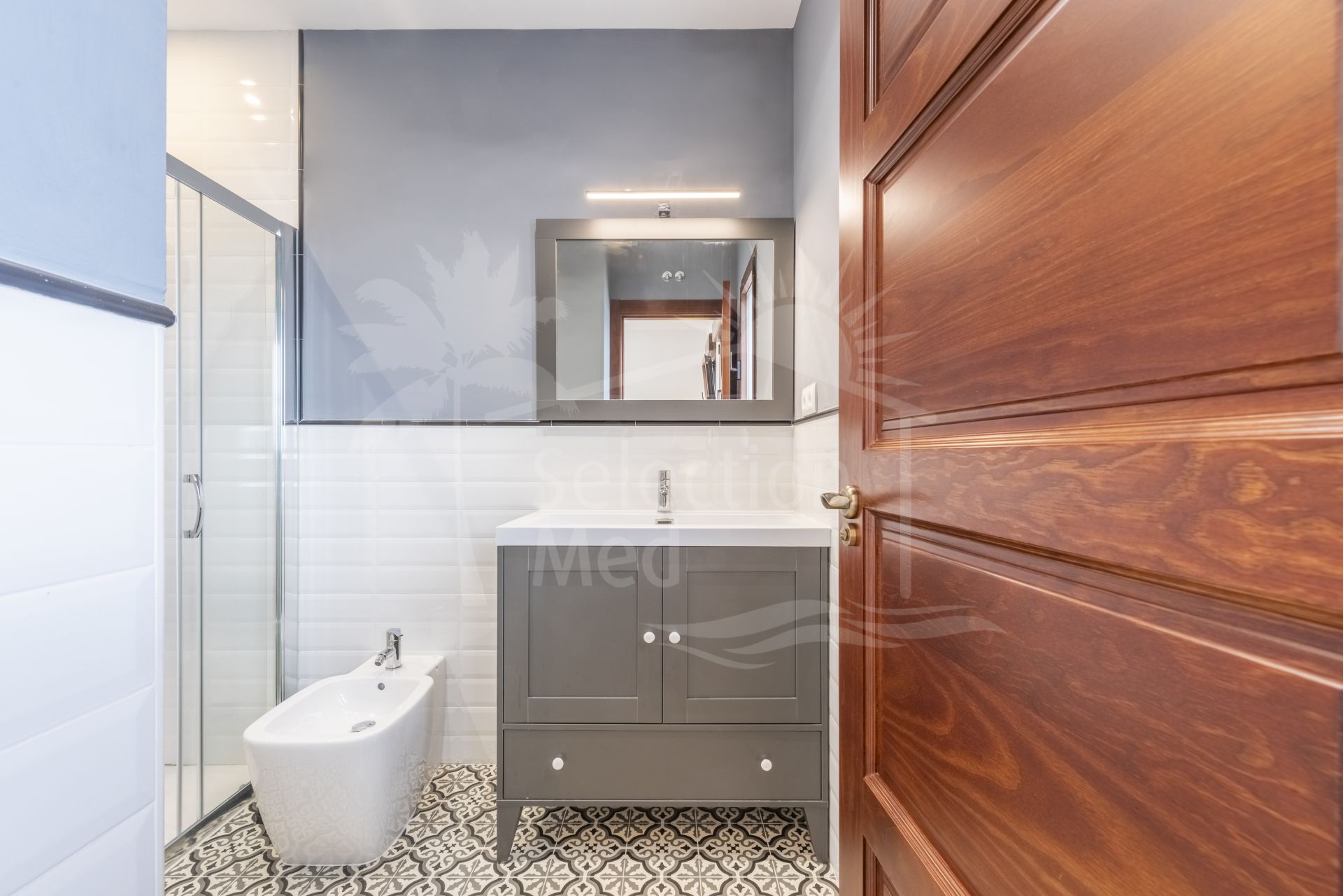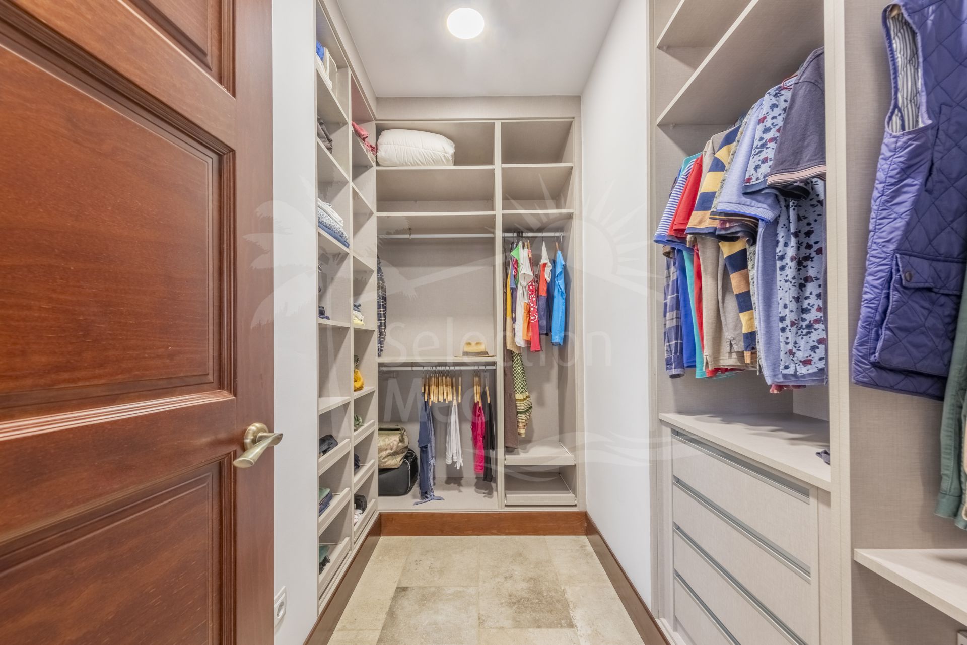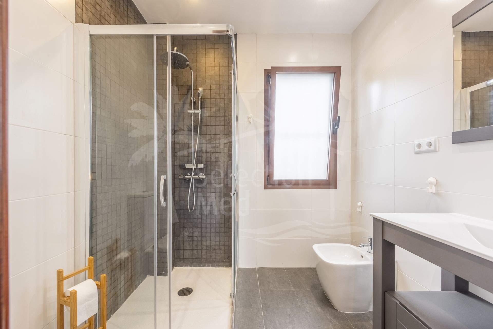 The villa boasts five spacious bedrooms, each thoughtfully designed to maximize comfort, along with five full bathrooms and an additional guest restroom. Radiant floor heating and an advanced aerothermal system ensure a cozy atmosphere throughout the year.