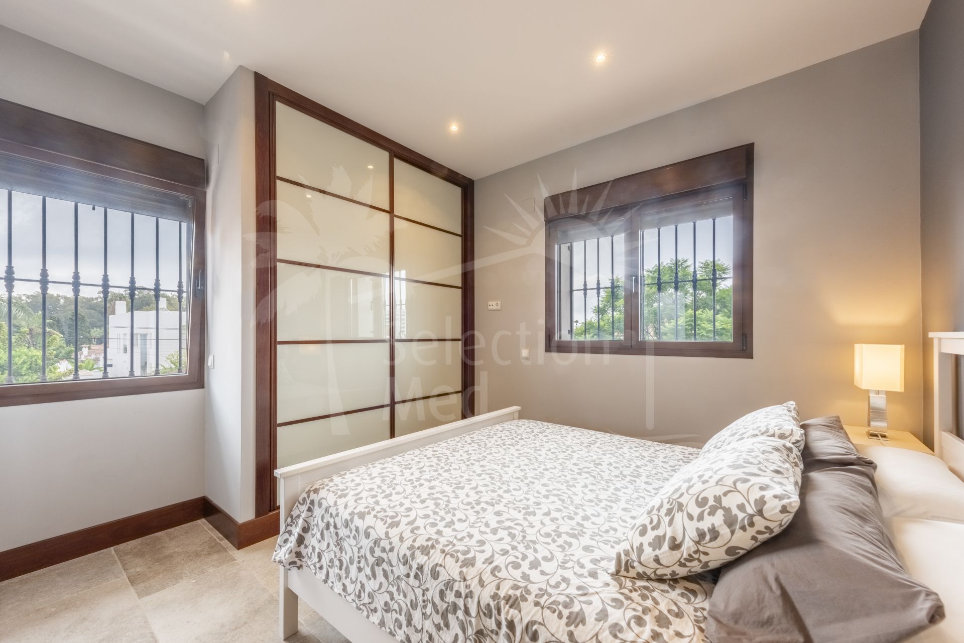 Upstairs, three bedrooms feature en-suite bathrooms, adding an extra layer of luxury and privacy. Recently renovated, this property sits on a generous 750-square-meter plot, providing ample outdoor space. The 280-square-meter interior showcases a harmonious blend of elegance and modern design.