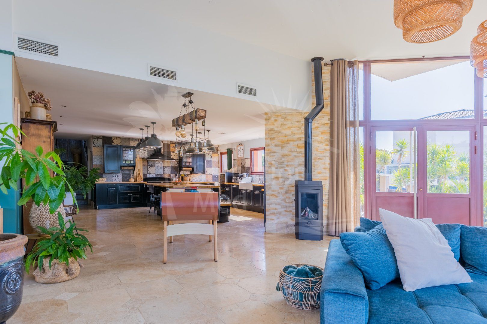 A SAUVIAN, au cur d'un environnement paisible sur un terrain de 670 m², VILLA de charme située au cur du charmant village de SAUVIAN et à quelques minutes de BEZIERS et des plages, Cette belle demeure vous seduira par son Architecture atypique offrant un mélange harmonieux d'ancien et de contemporain, son ambiance chaleureuse et ses prestations de qualité. Un lieu de vie unique, cette maison coup de cur est parfaite pour les amateurs de lieux de vie authentiques, lumineux et tourne vers l'extérieur. 230 m² habitables, 5 pièces, 4 chambres dont une suite parentale en rez-de-chaussée avec dressing et salle de bains de caractère. 1 PATIO plein de charme, véritable havre de paix avec son bel olivier. Pièce de vie spacieuse avec hauteur sous plafond et grandes baies vitrées, véritable trait d'union entre l'intérieur et l'extérieur. Cuisine entièrement équipée donnant sur le patio. Climatisation réversible, double vitrage, aucuns travaux à prévoir Cuisine d'été parfaitement équipée pour des moments de détente en toute intimité autour de la grande piscine avec vue dégagée sur la campagne. Terrasse aménagée avec sa pergola pour des moments de détente ou pour admirer la nature. A proximité des écoles et commerces et à quelques minutes de la mer. Matériaux nobles et finitions soignees Coup de cur assuré.