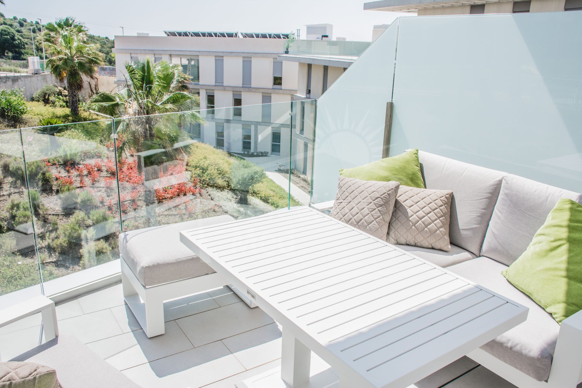Modern glass railings on the terraces