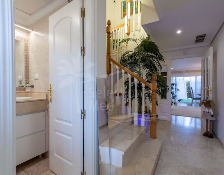 Four bedroom beautifully reformed south facing townhouse in a gated residential community in Calahonda; situated within walking distance to the beach and all local amenities. The property comprises on the entrance level an open plan living and dining area with...