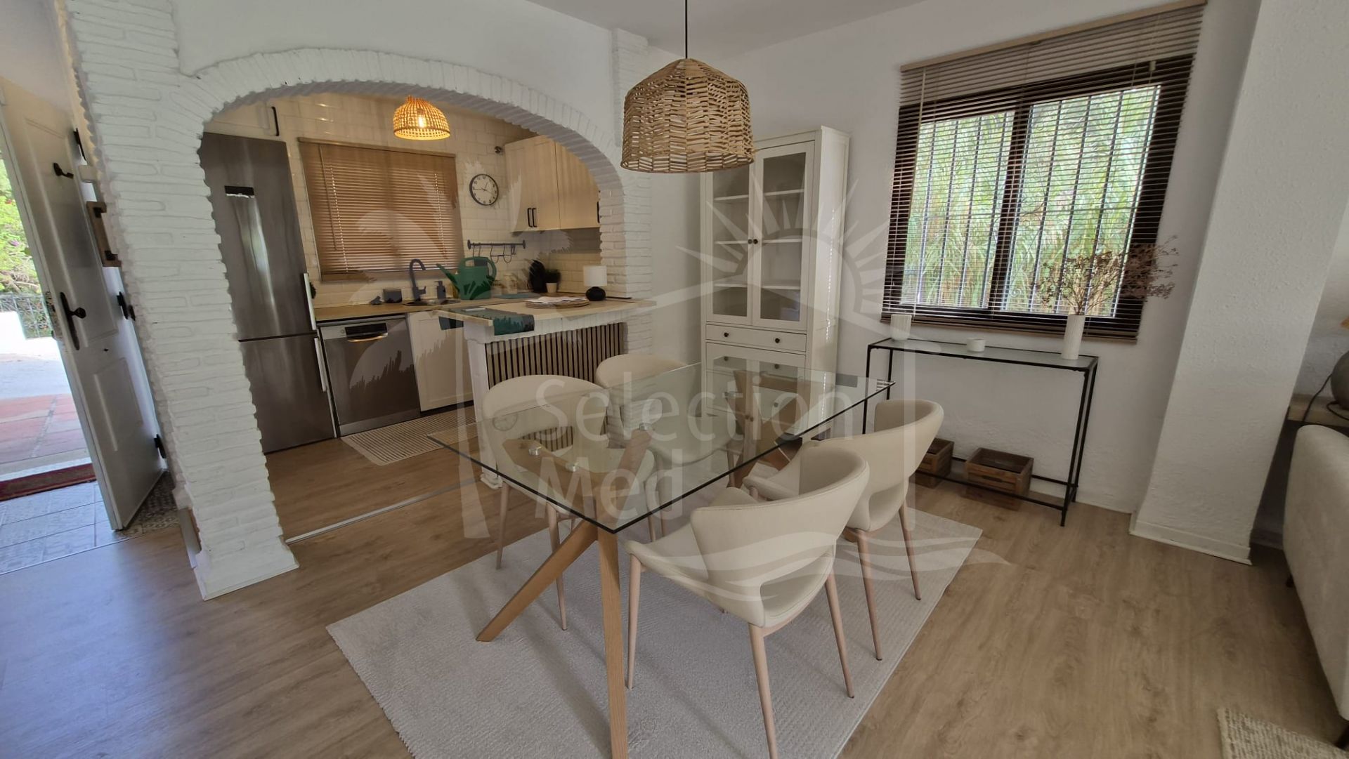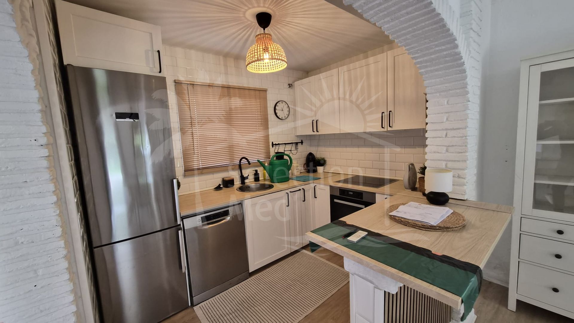 This two-story townhouse with a penthouse and a jacuzzi has been completely renovated, including the floors, walls, kitchen, and bathrooms. The house features a bright living room (indoor and outdoor) and a private terrace.