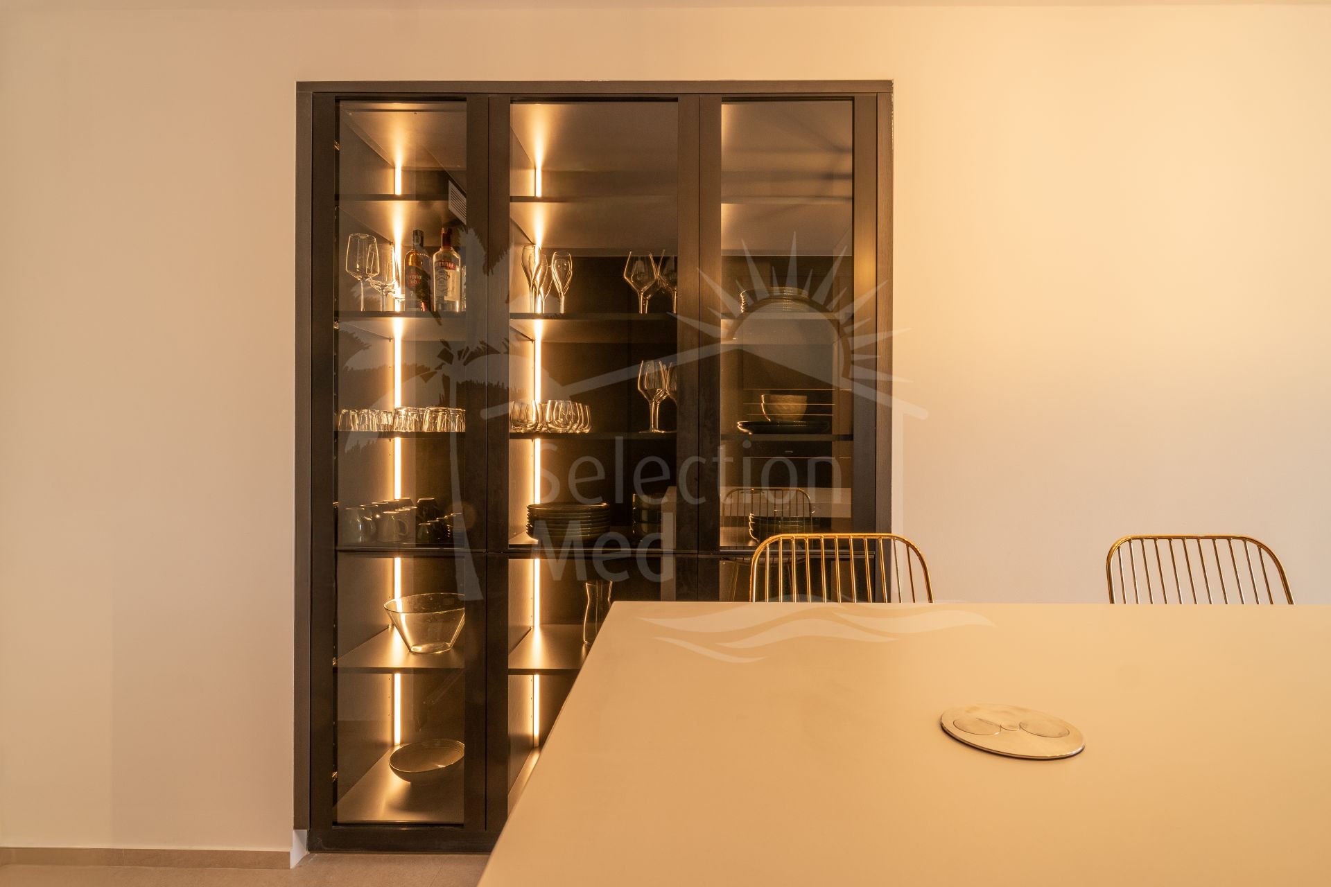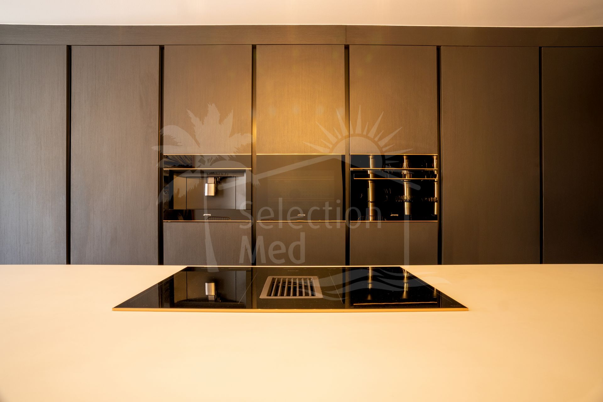 This three-bedroom apartment is located in the popular Ribera de la Romana residential complex in Sotogrande Marina, within walking distance of the port with all its restaurants, shops, and the Sotogrande beach. The apartment has been completely renovated with great attention to detail and high-quality finishes. Spacious and open-plan, the apartment has a total of 211 square meters. The bright entrance area is inviting and opens into the spacious living area with a stylish oil fireplace. To the front, there is a further lounge and dining area, which is flooded with light thanks to the fully opening windows and offers fantastic views of Sotogrande marina. The new high-quality fitted kitchen is open to the dining area and all the technical appliances are of the highest quality, such as Smeg appliances from the Dolce & Gabbana line. The apartment has three bedrooms, all with fitted wardrobes and en-suite bathrooms. A particular highlight is the spacious master bedroom, which has a walk-in wardrobe with glass doors and indirect lighting, as well as an open-plan bathroom with a large walk-in shower and a floating bath. Everything in the apartment is of the highest quality and is being sold fully furnished. Other features include: new Daikin air conditioning, a special indirect lighting system throughout the apartment, a storage room, and an underground parking space.