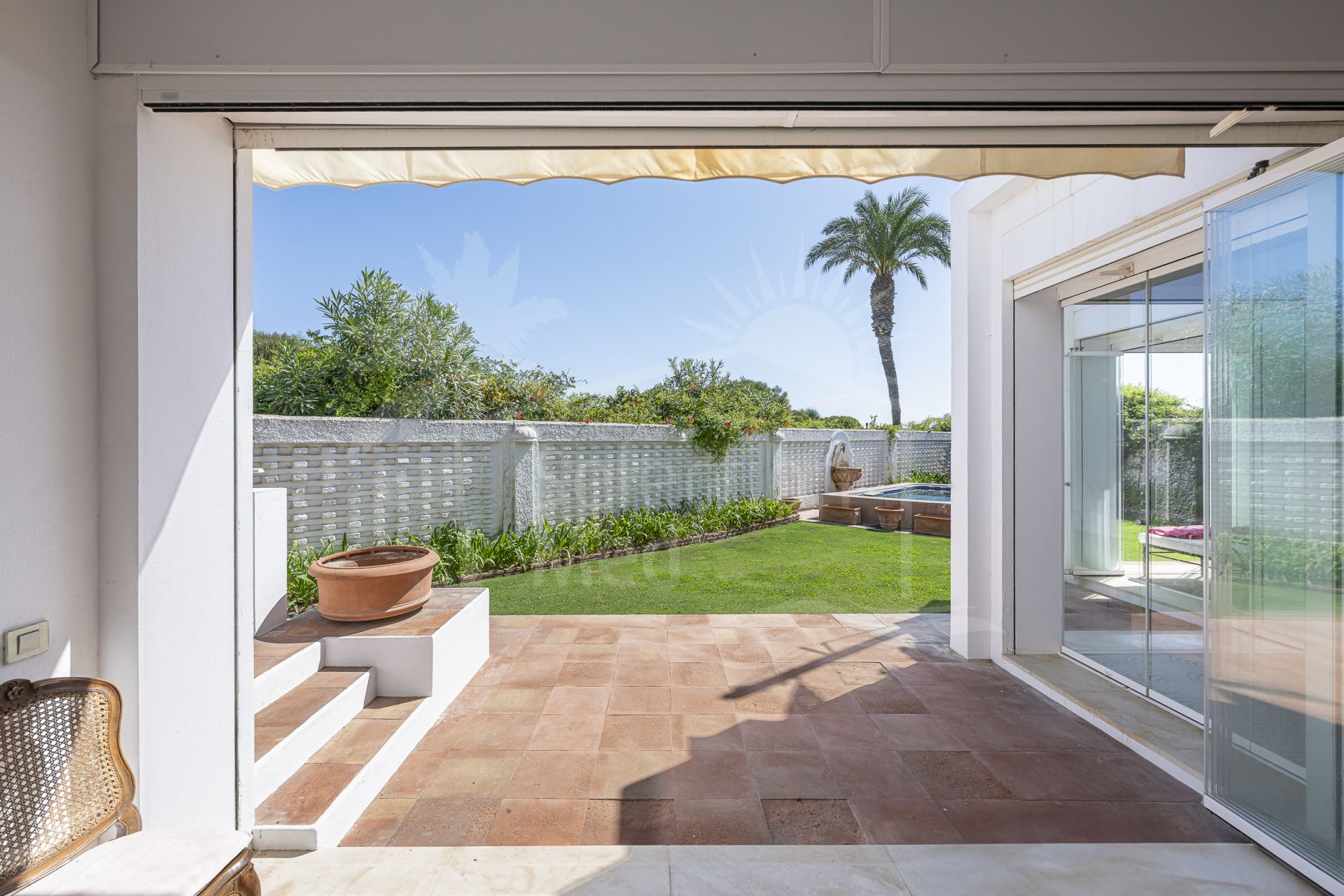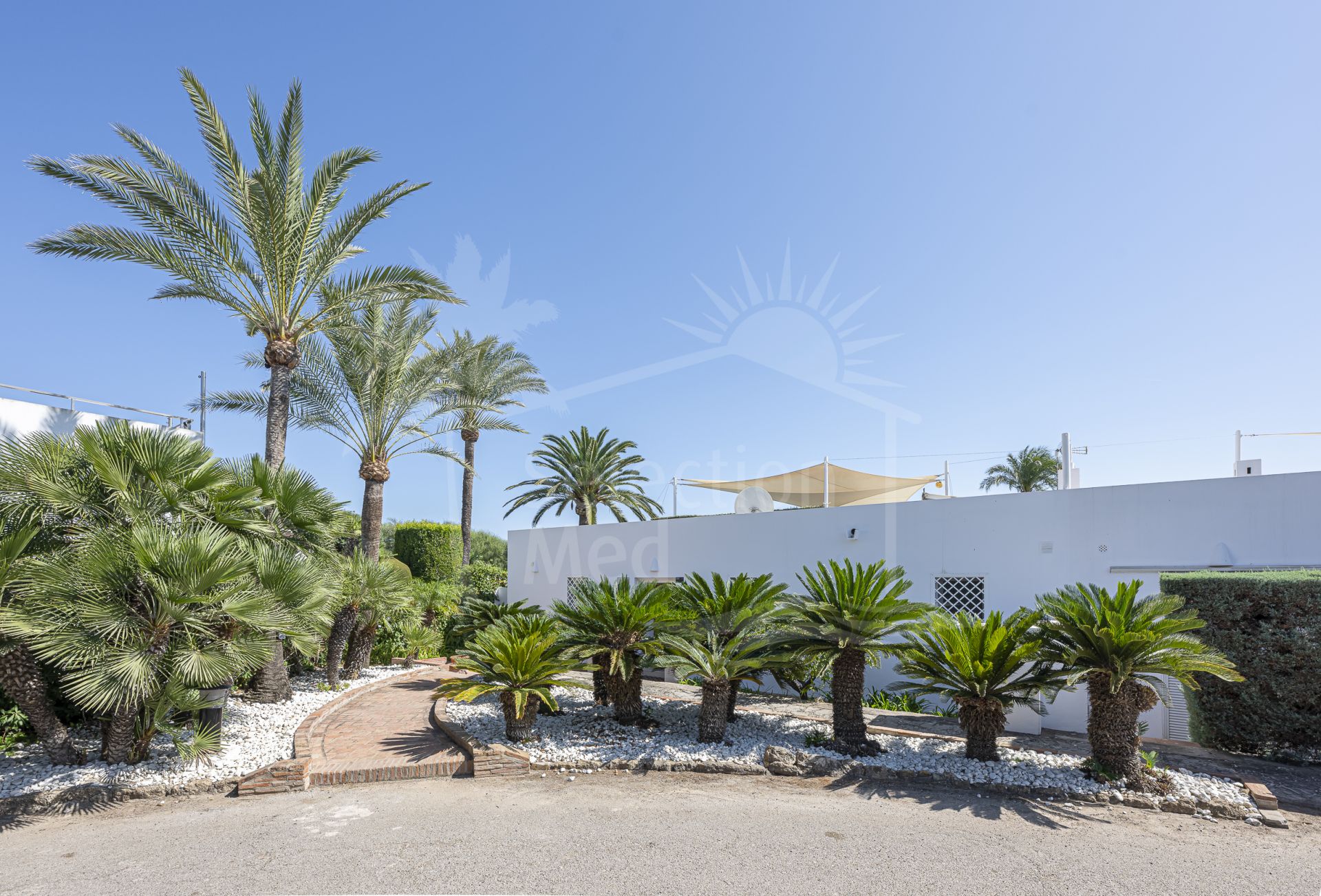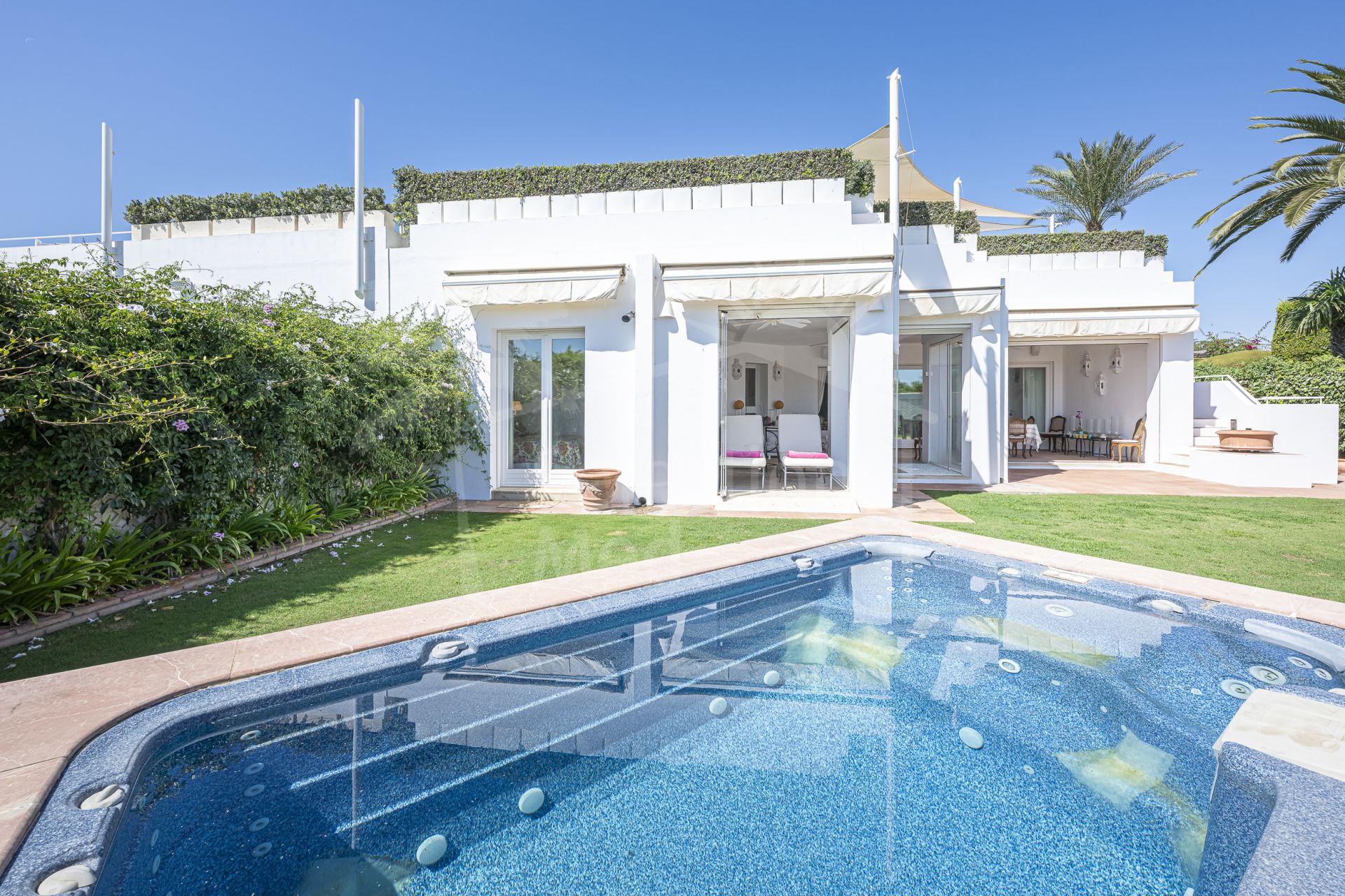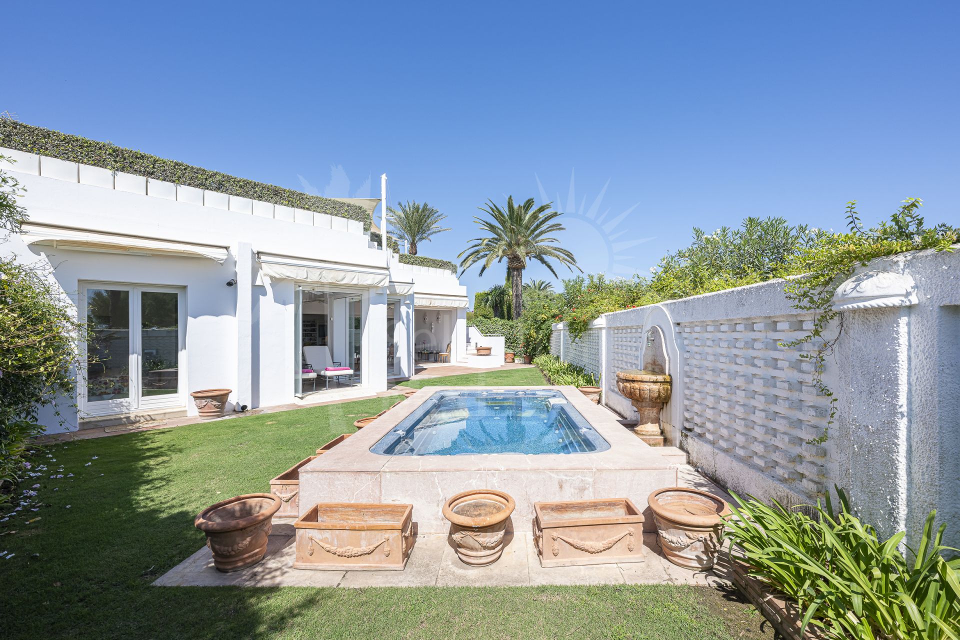 One of the very few frontline beach properties in Sotogrande, located in the prestigious gated “Bungalows” community, next to the Real Club de Golf de Sotogrande and just meters from the beach.