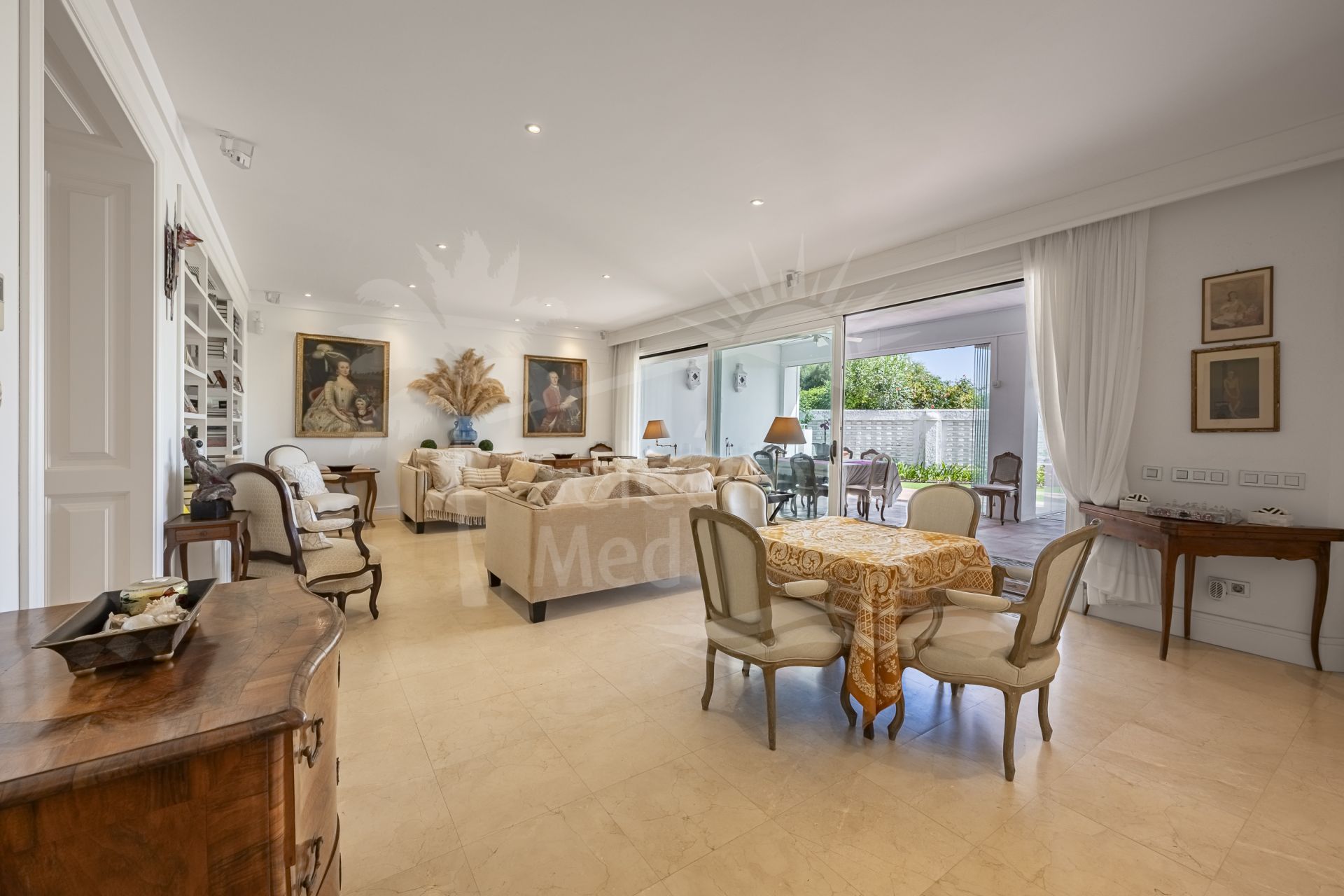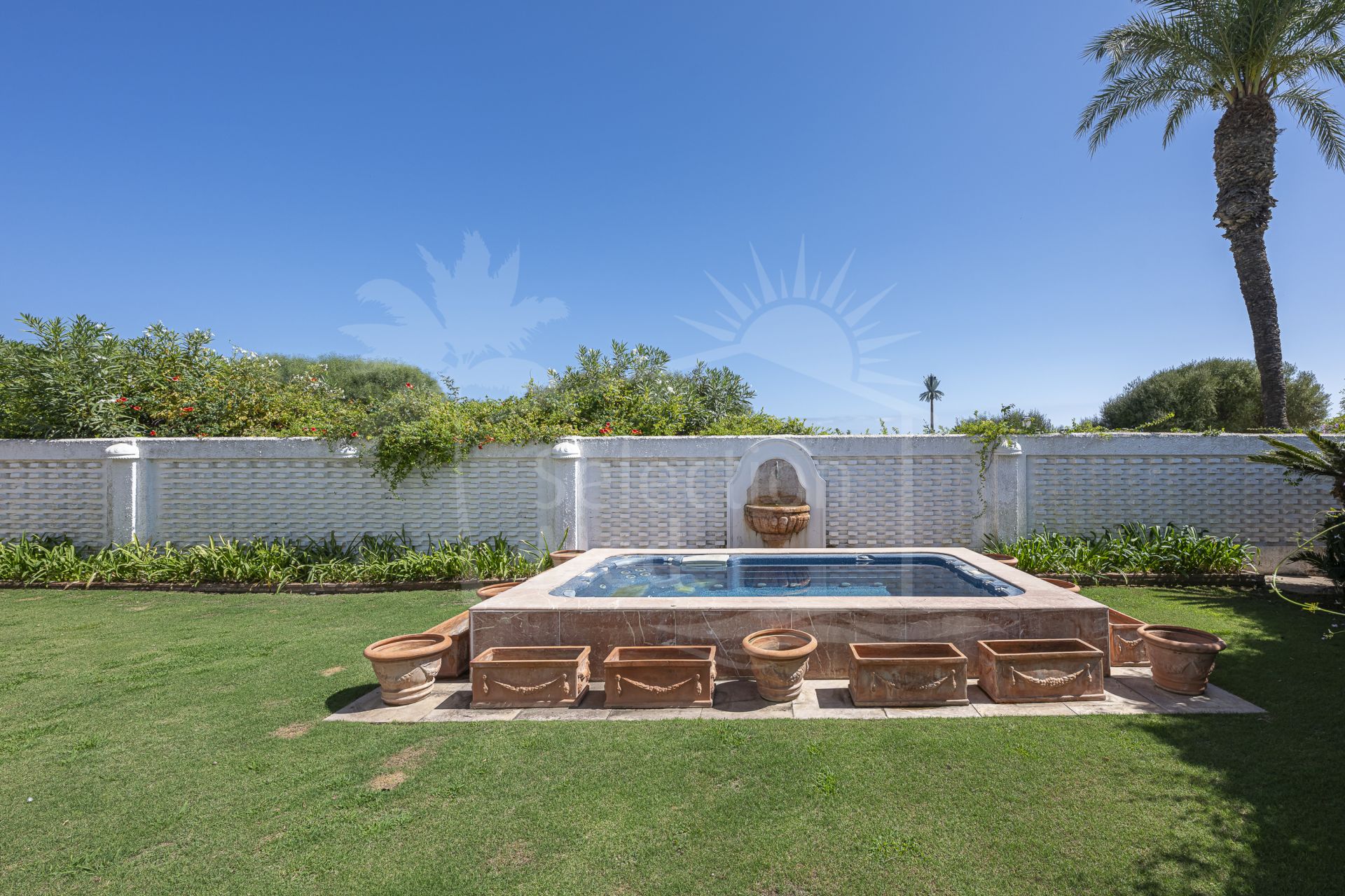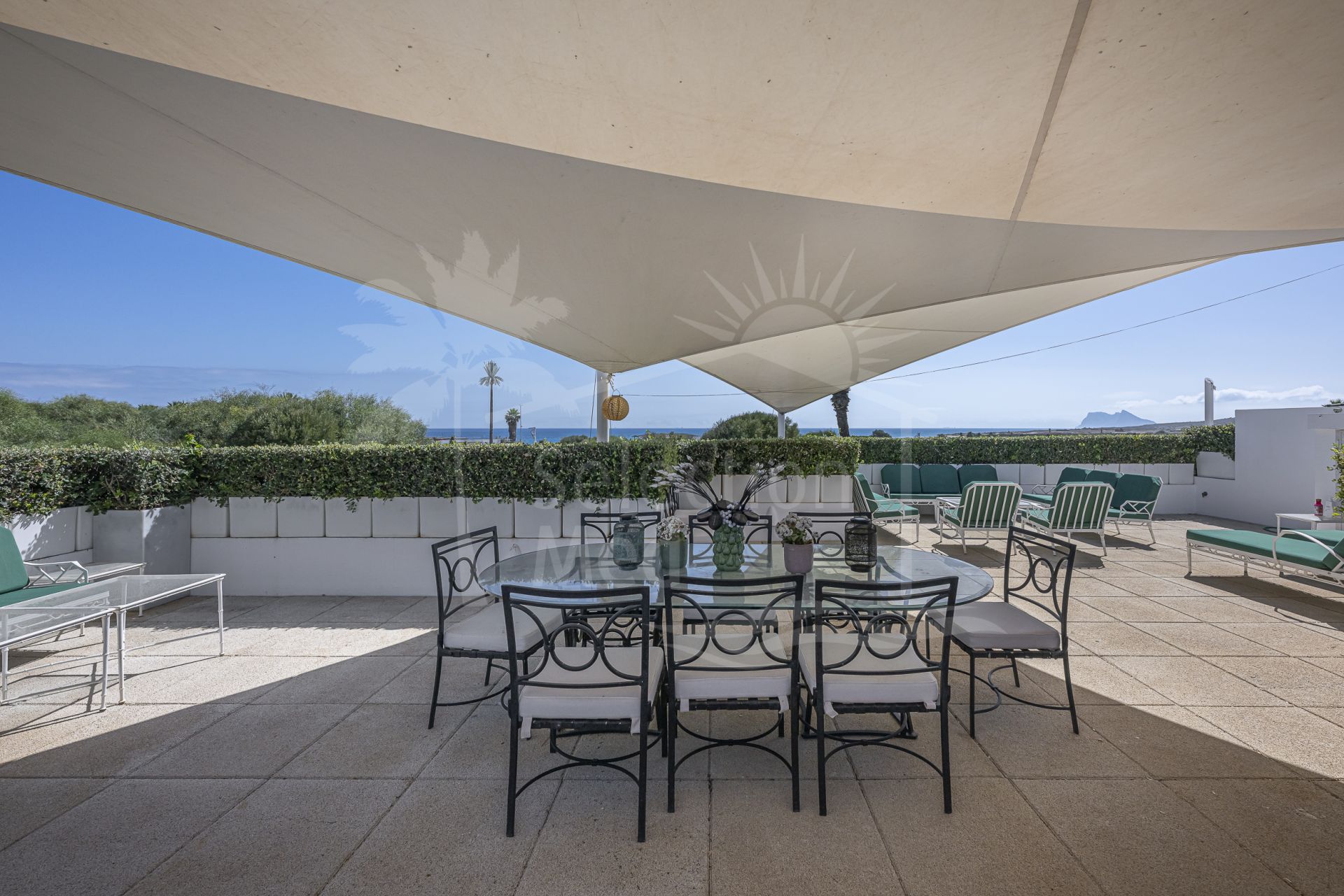 One of the very few frontline beach properties in Sotogrande, located in the prestigious gated “Bungalows” community, next to the Real Club de Golf de Sotogrande and just meters from the beach.