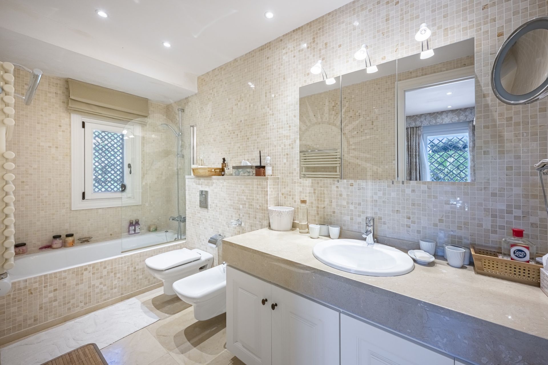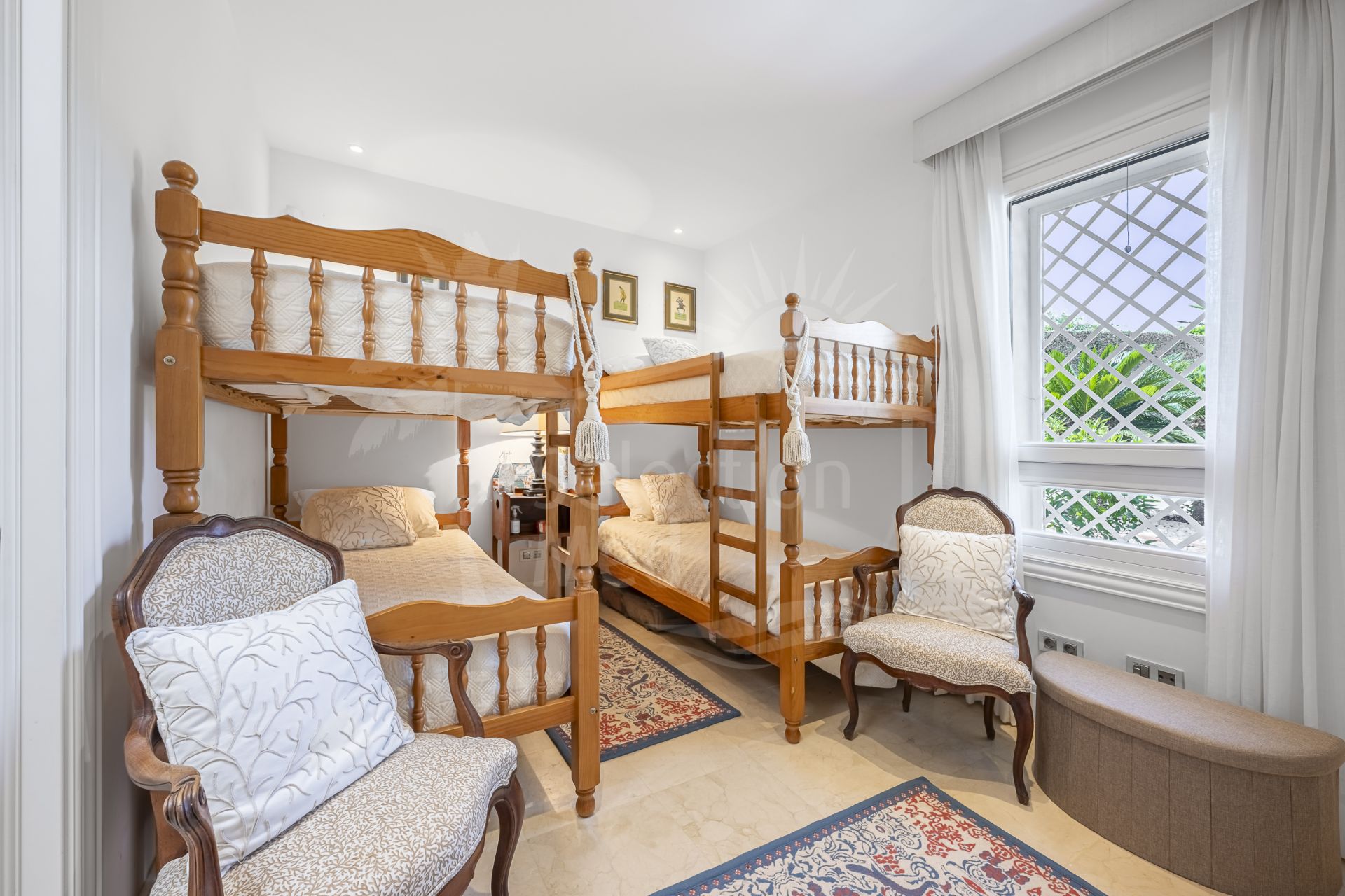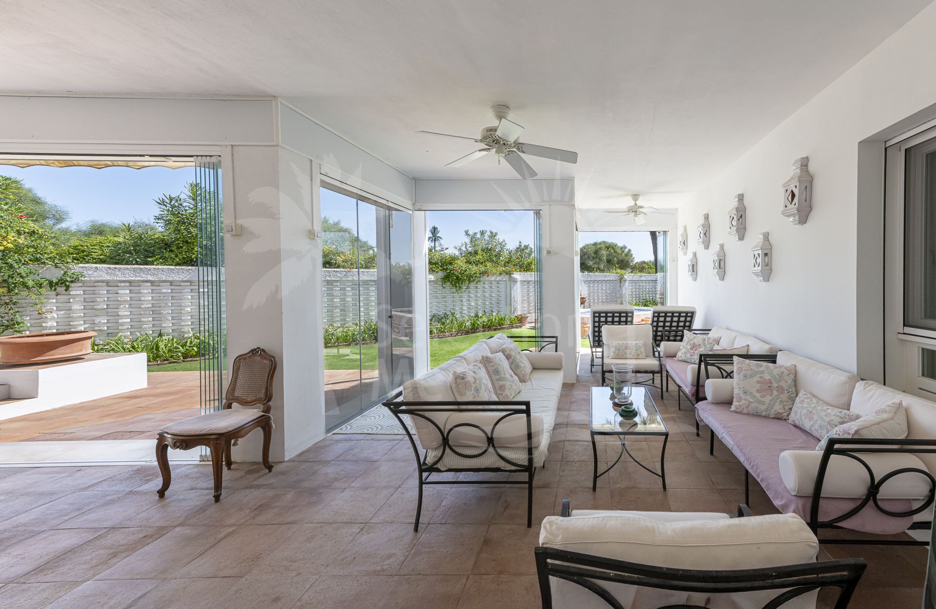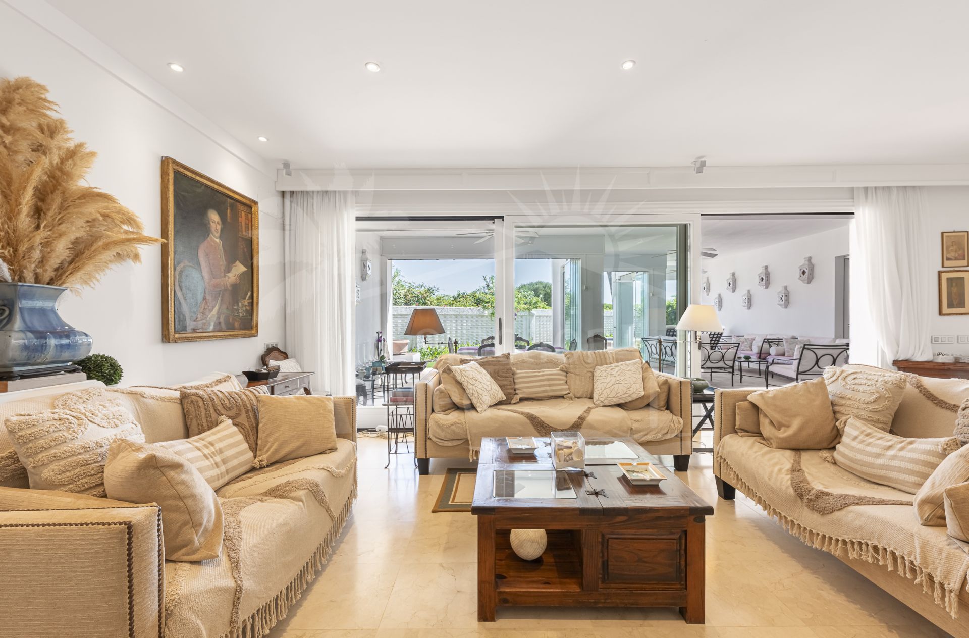 One of the very few frontline beach properties in Sotogrande, located in the prestigious gated “Bungalows” community, next to the Real Club de Golf de Sotogrande and just meters from the beach.