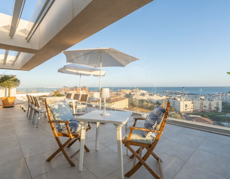 Discover this exclusive two-story penthouse, located in a quiet residential area of Estepona, surrounded by parks and open spaces, and just a short walk from the charming old town and beaches. This property offers an unbeatable combination of comfort, style,...