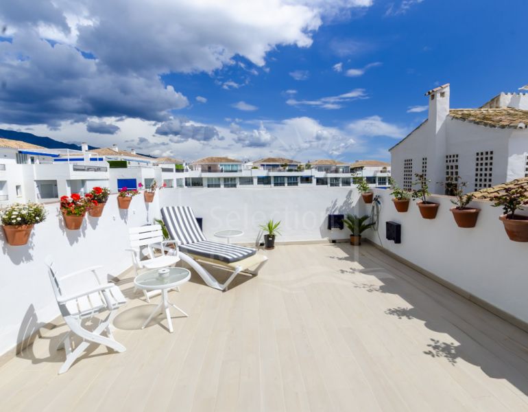This refined duplex penthouse enjoys an exceptional beachside location, just a short walk from the sea and within easy reach of Puerto Banús, Cortijo Blanco and the coastal promenade linking San Pedro de Alcántara with Marbella’s Golden Mile. Its privileged...