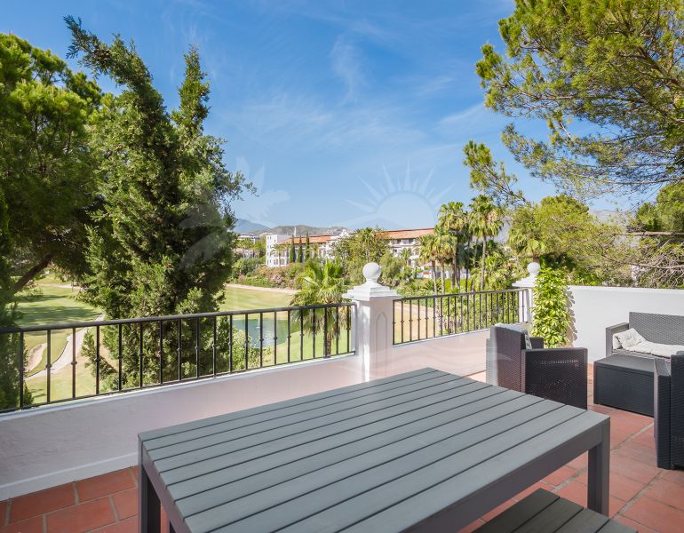 Large family 4-level corner unit townhouse located in Las Encinas, a front line golf gated complex in La Quinta, Benahavís. It comprises, on the main level: open-plan fully fitted and equipped kitchen; living and dining area with access to a...