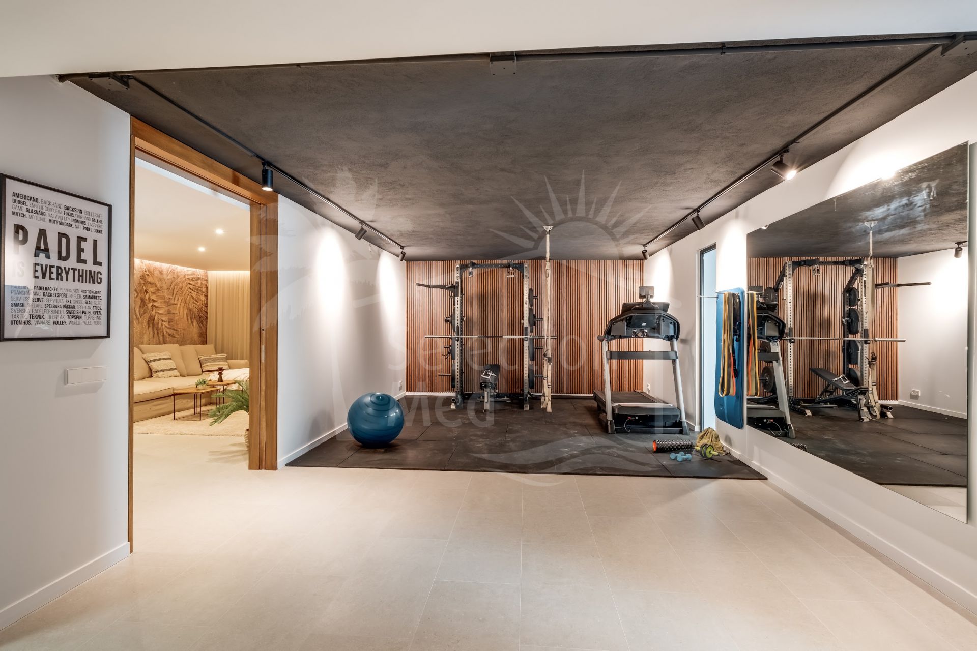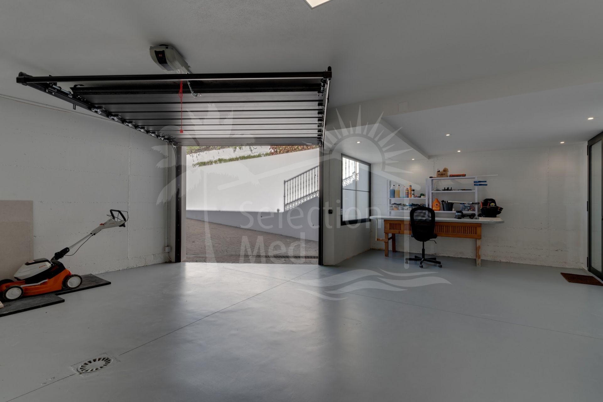 In the basement you have a guest room with bathroom en suite. Laundry room, Gym and a garage with space for at least 2 cars.