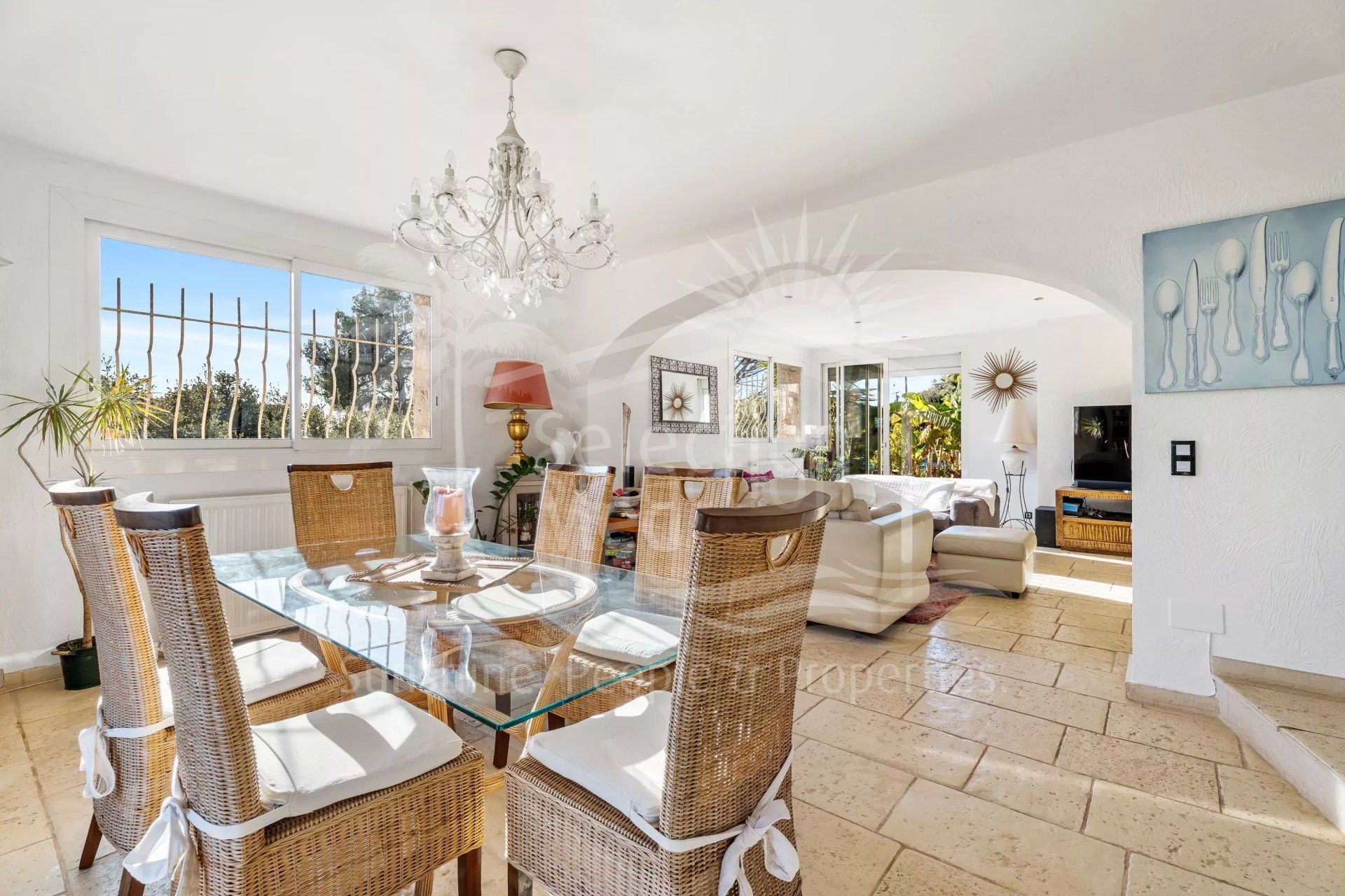 Set in the heart of a magnificent 4450 m² wooded plot, entirely secluded from view, the property enjoys a spectacular panorama stretching from the Mediterranean to Cap d'Antibes and the Tanneron hills, offering a rare and absolutely breathtaking view.