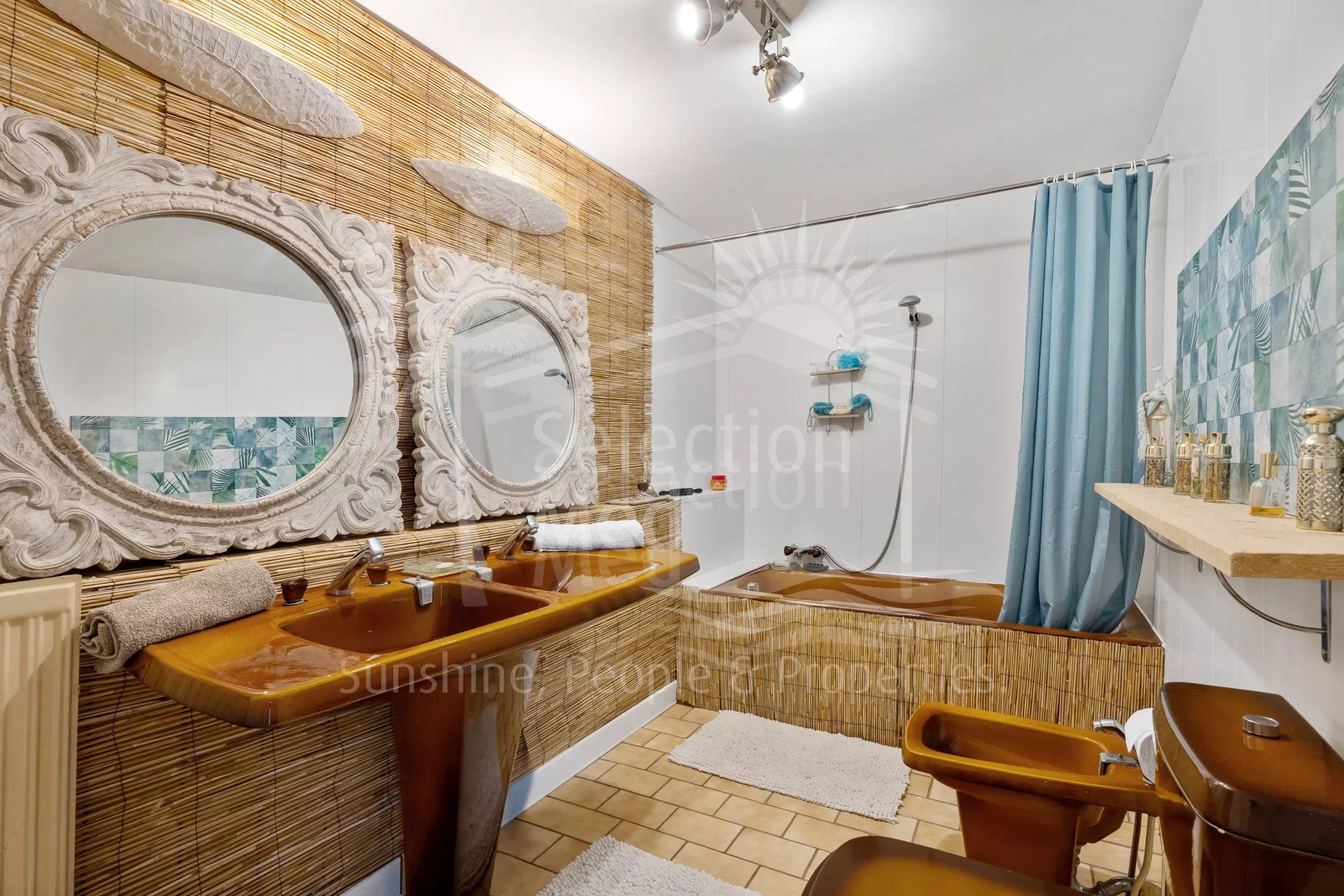 Outside, more than 125 m² of terraces invite you to savor every moment in this exceptional natural setting. The swimming pool, perfectly integrated into its surroundings, completes this idyllic setting, conducive to calm, relaxation and summer entertaining.