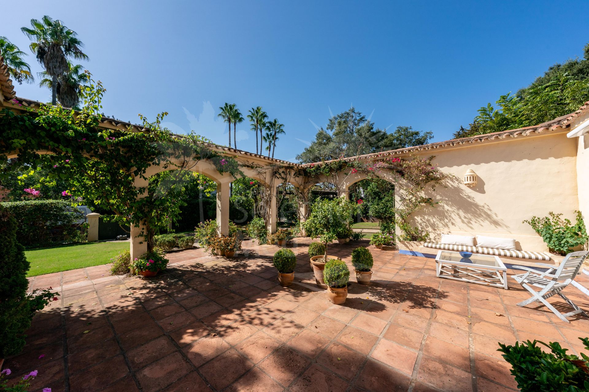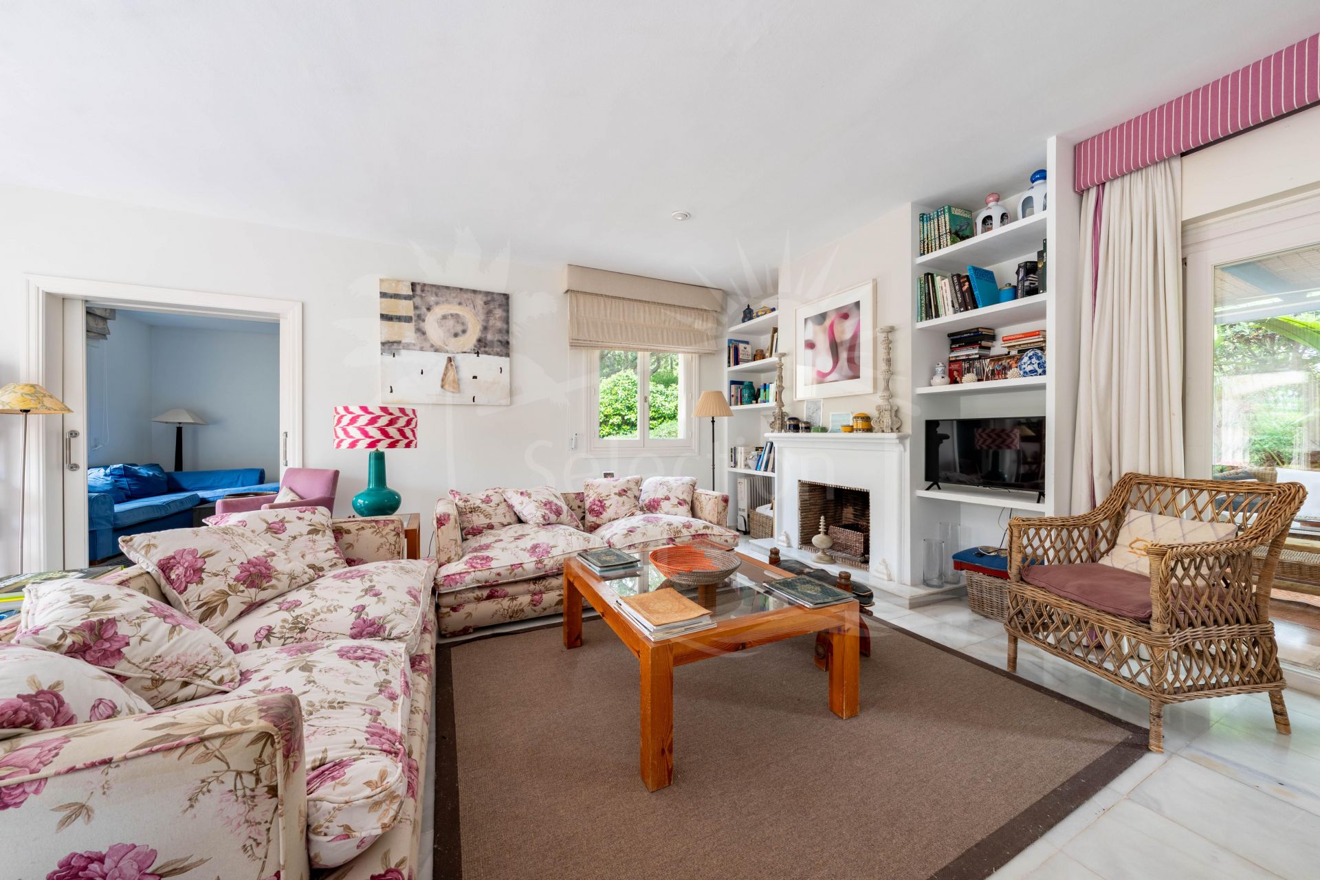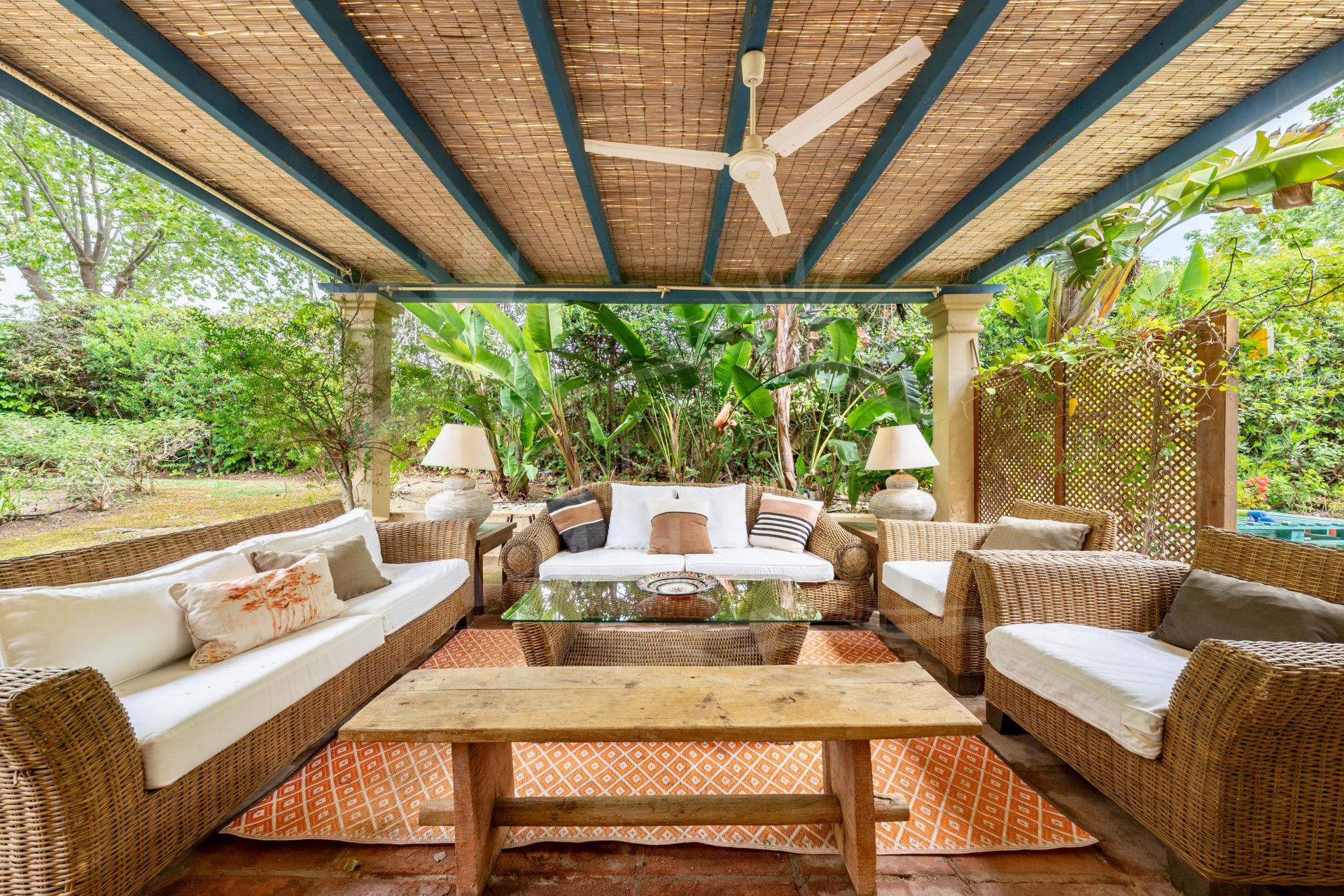 Located in the exclusive and quiet area of Triana, in Sotogrande Alto (Cádiz), this villa offers an exceptional opportunity for those looking for a functional residence in a natural and safe environment. The property stands out for its simple and practical architectural design, with spacious and well-distributed spaces. It has five bedrooms and four bathrooms, making it an ideal choice for both large families and those who enjoy entertaining in comfort. Outside, the villa has an extensive private garden of flat land, perfect for enjoying the outdoors in an environment dominated by cork oaks. In addition, residents have access to a communal swimming pool, ideal for enjoying the good climate of the area. The property also includes a carport, which offers a comfortable and secure parking solution. A property that combines privacy, comfort and a privileged location in one of the most sought-after areas of the Cadiz coast.