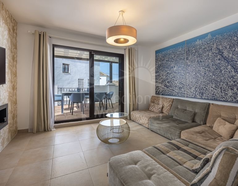 South-facing triplex located in a gated community in Altos de Los Monteros, Marbella East. The property is distributed over three levels and comprises: First floor: entrance hall; fully fitted kitchen with access to a utility terrace; guest toilet; pantry; spacious living-dining...