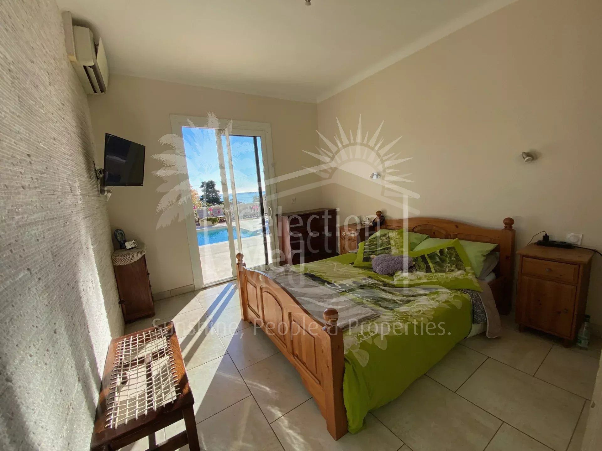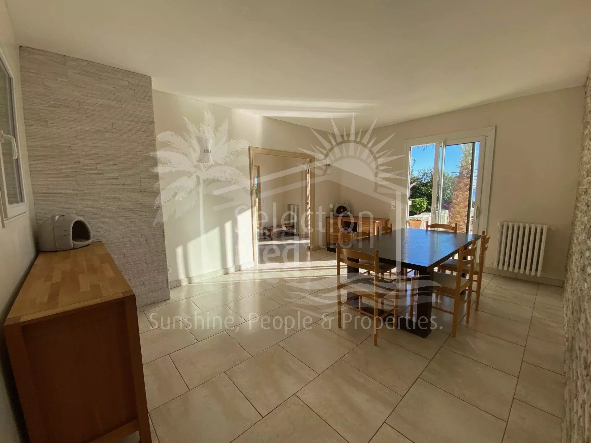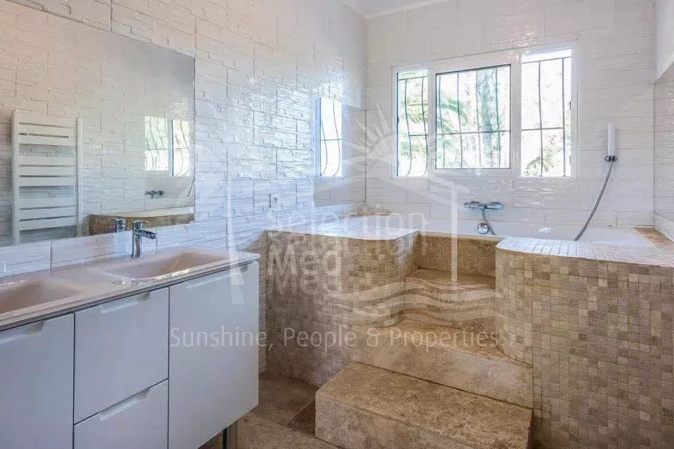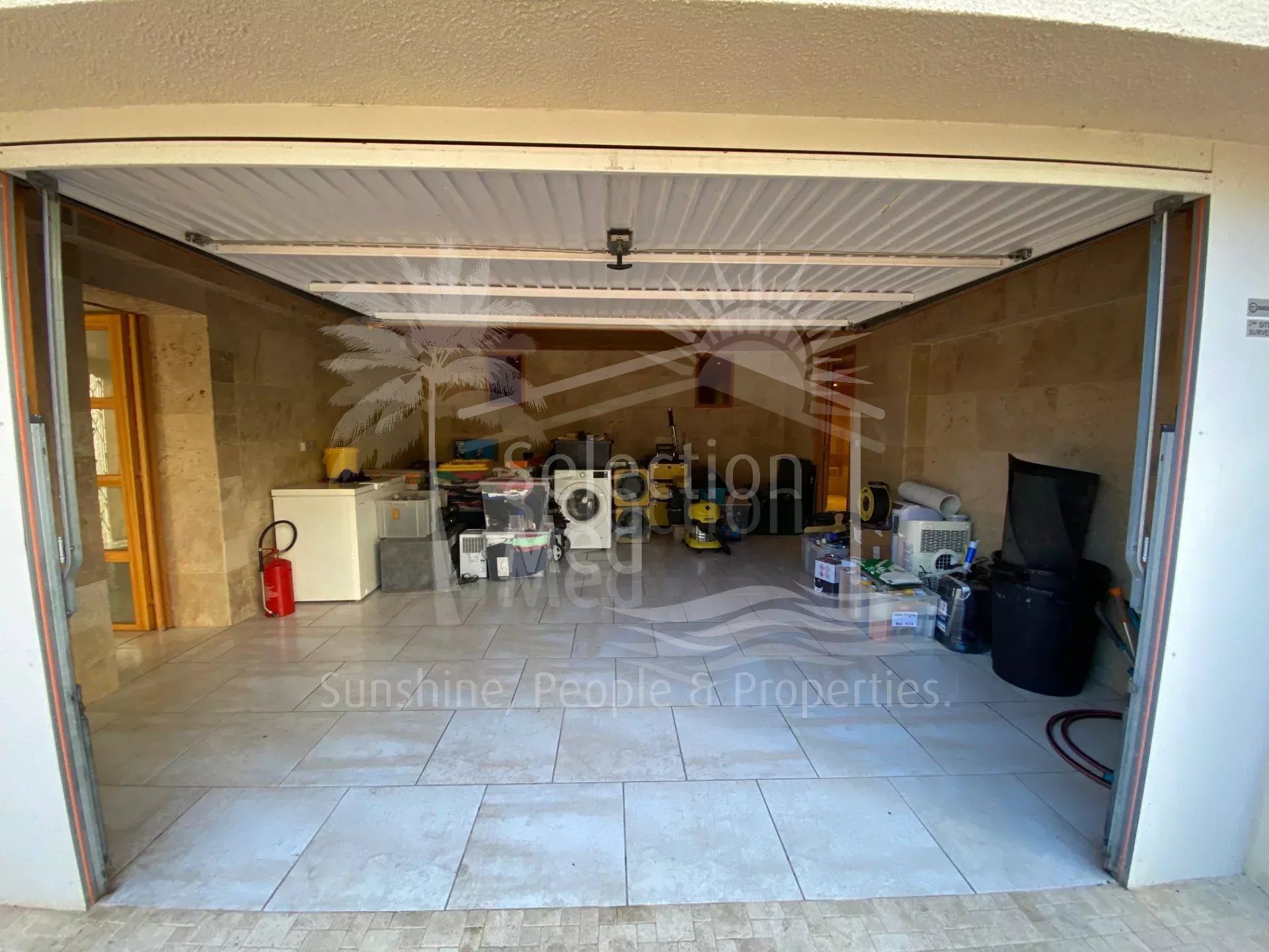The villa is set on a 1,237 m² plot with a swimming pool and ample parking.