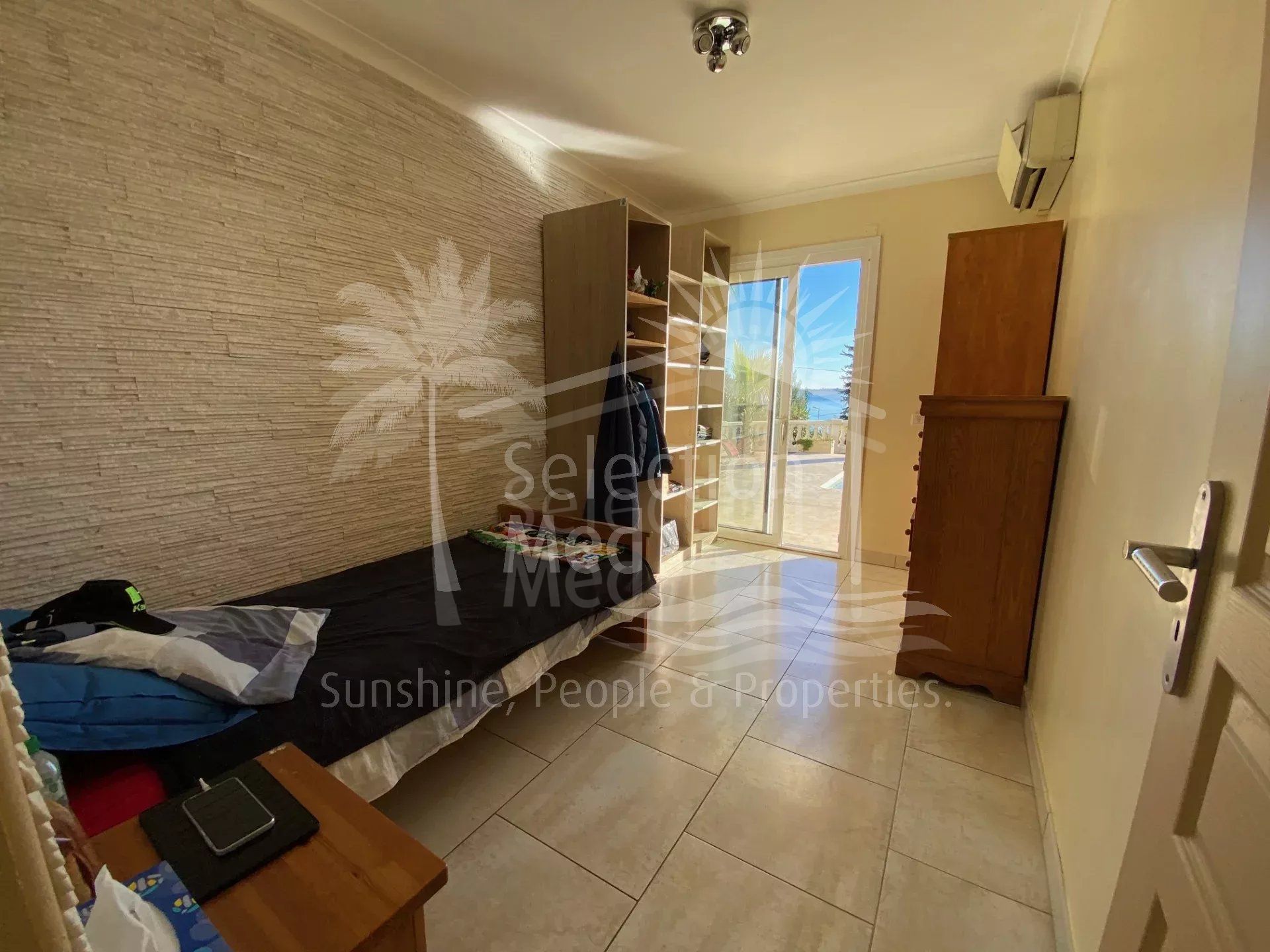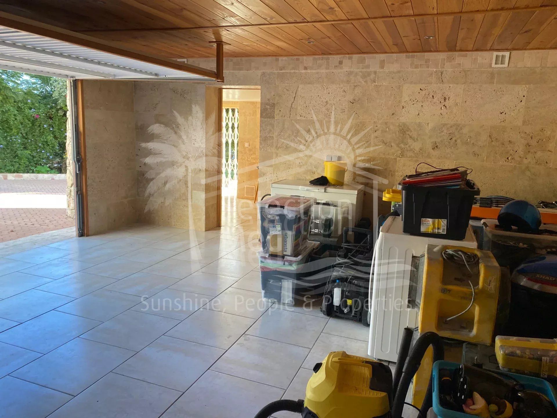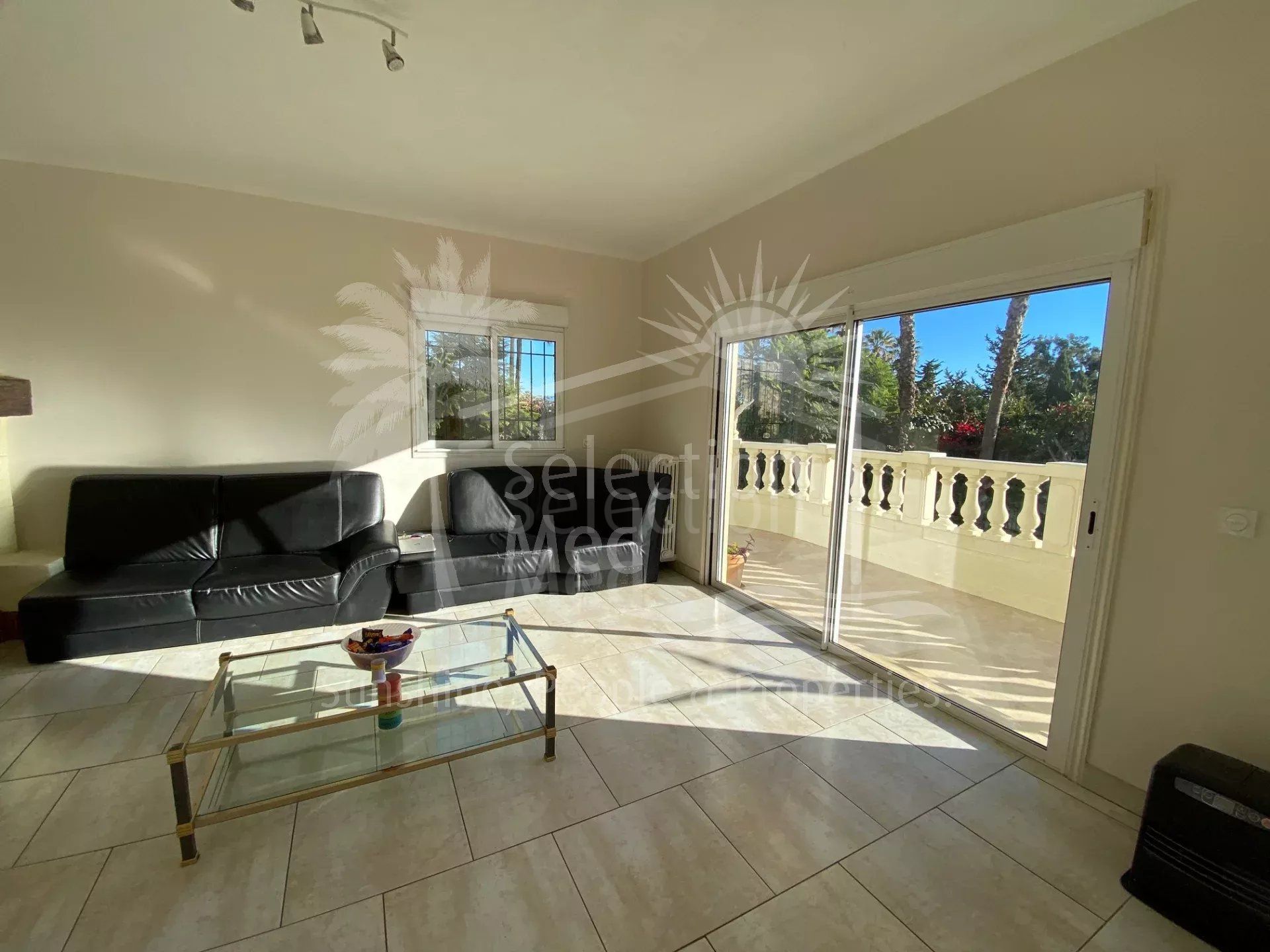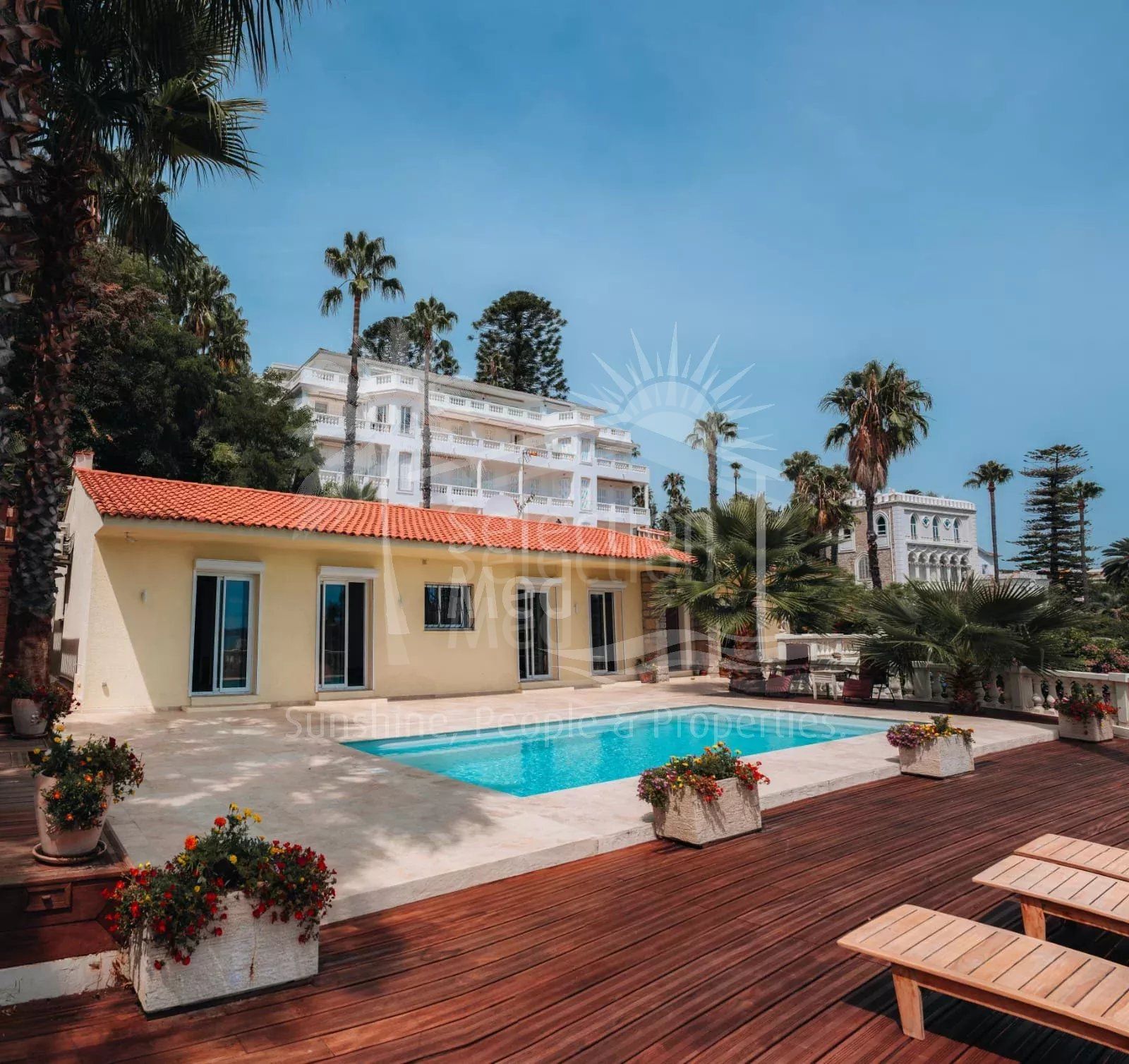 The villa is set on a 1,237 m² plot with a swimming pool and ample parking.