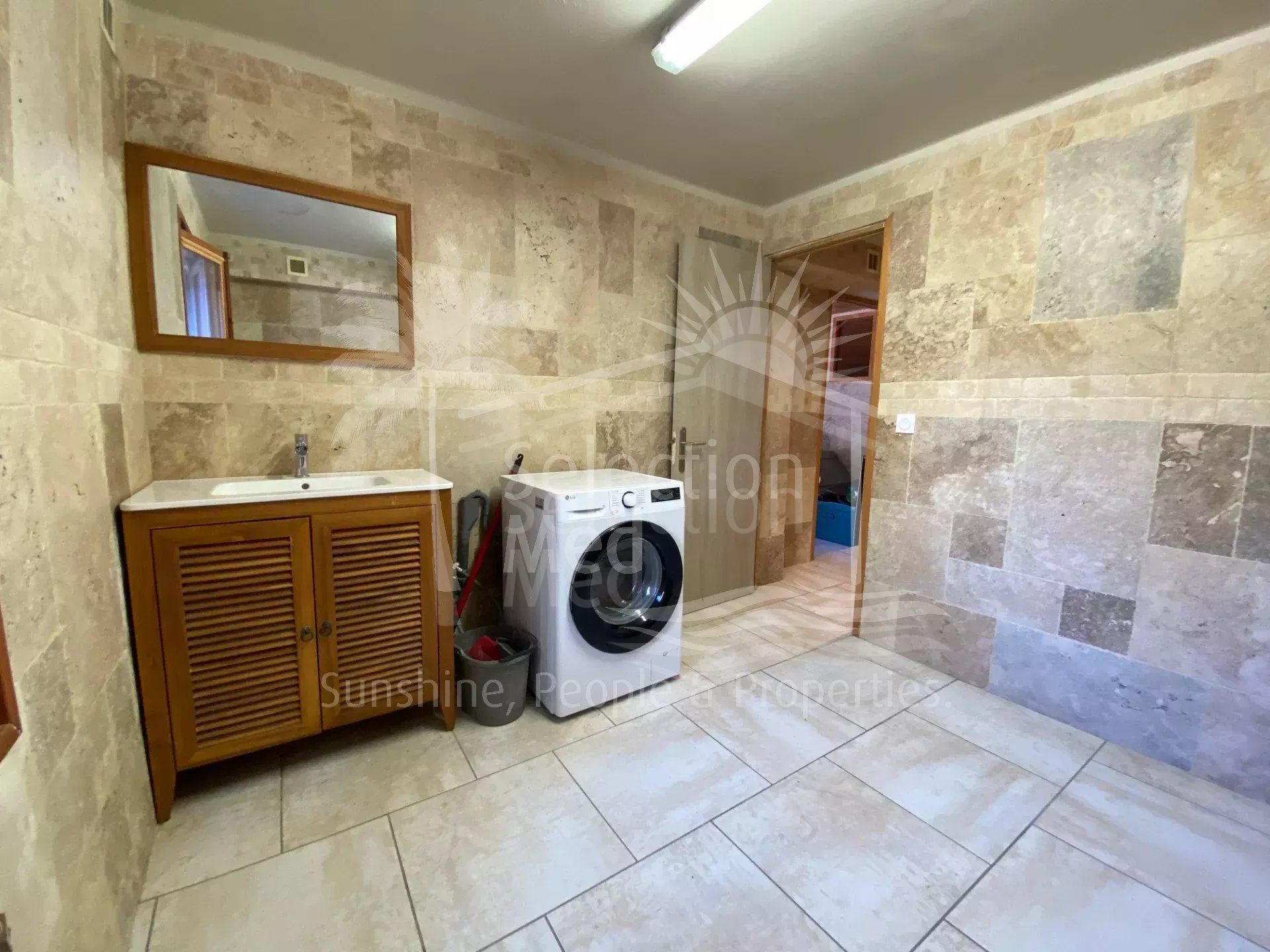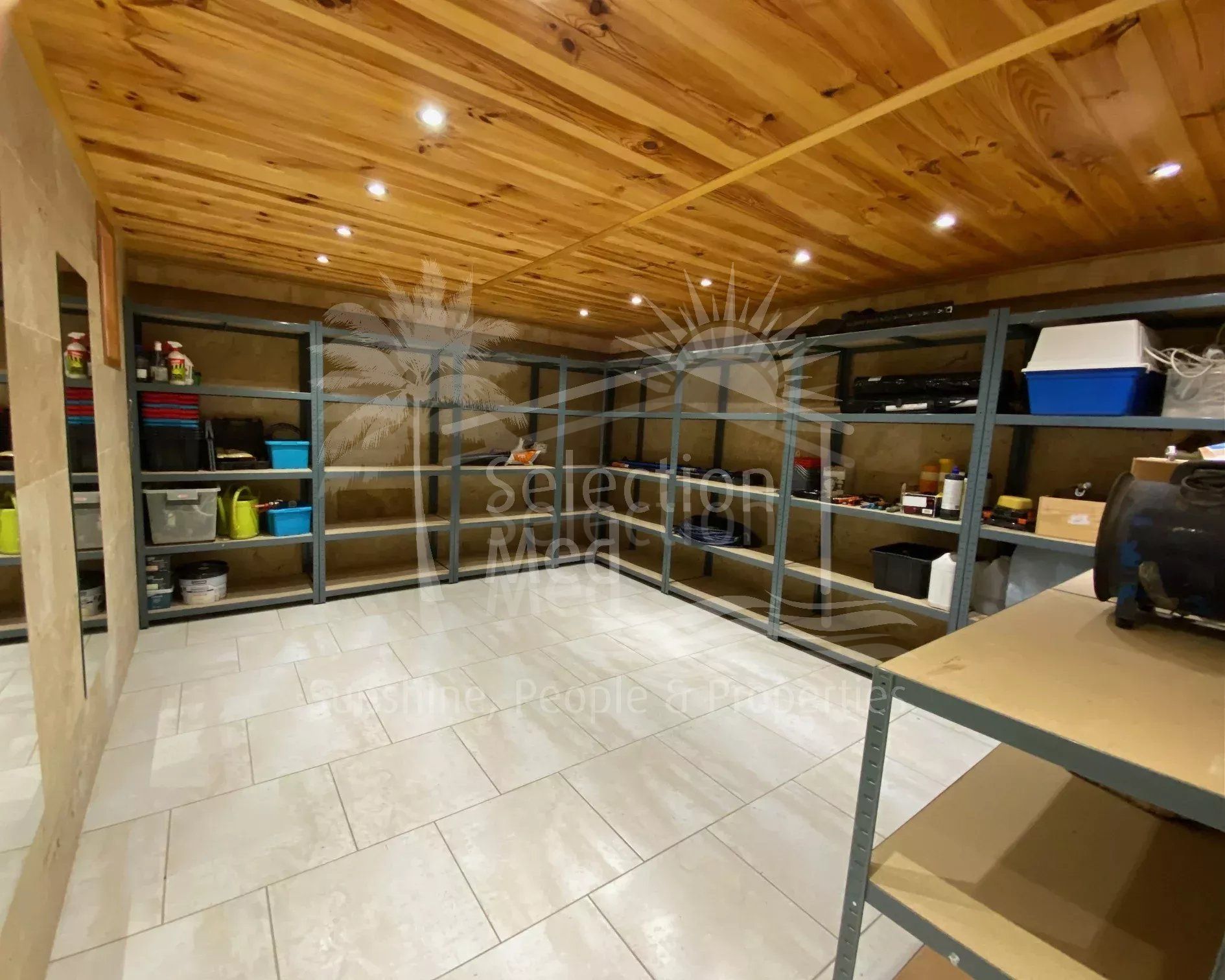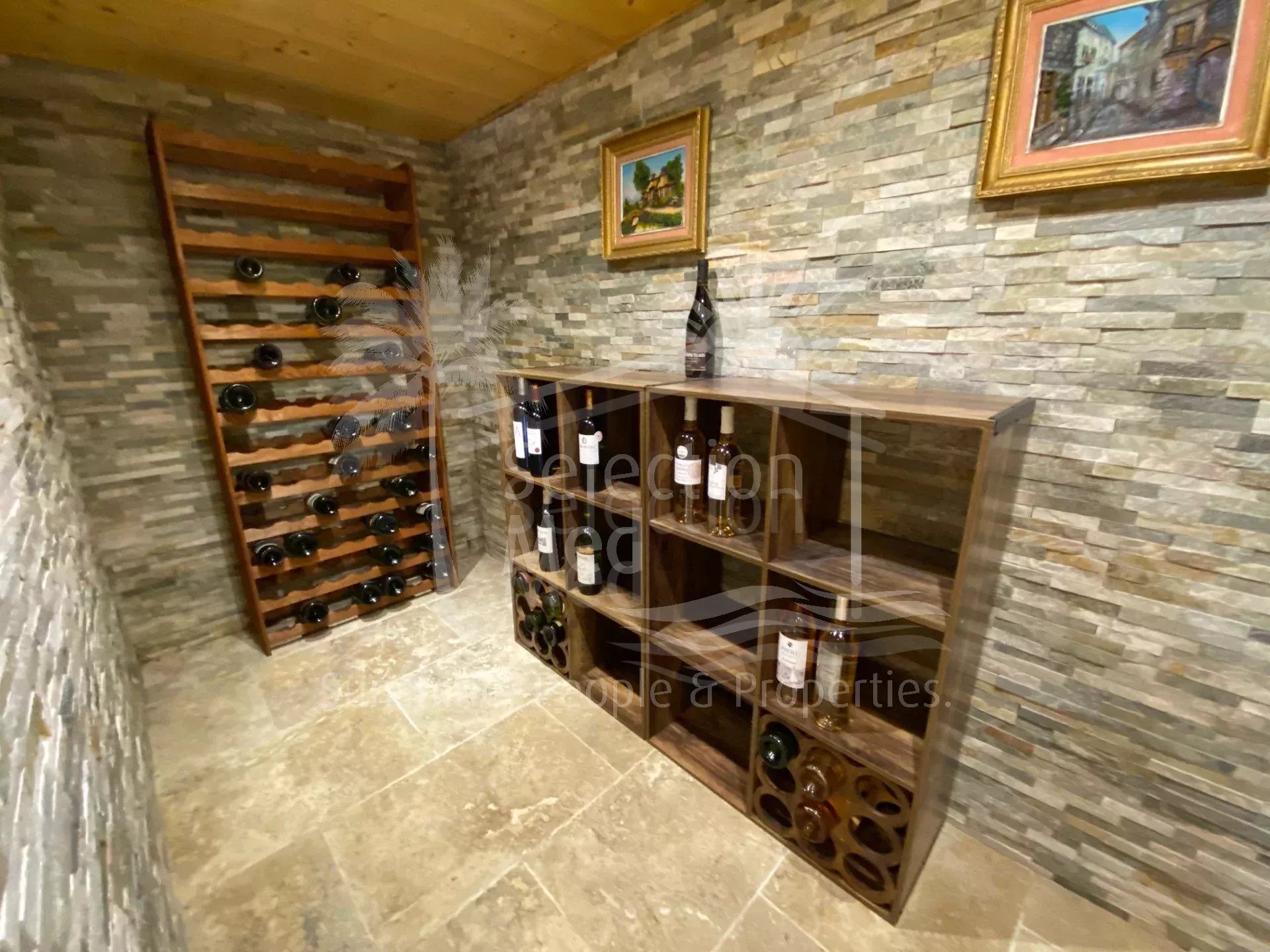 On the garden level, you will find an additional bedroom, a fitness room, a laundry room, a wine cellar, a bathroom, a pantry, and a spacious garage.