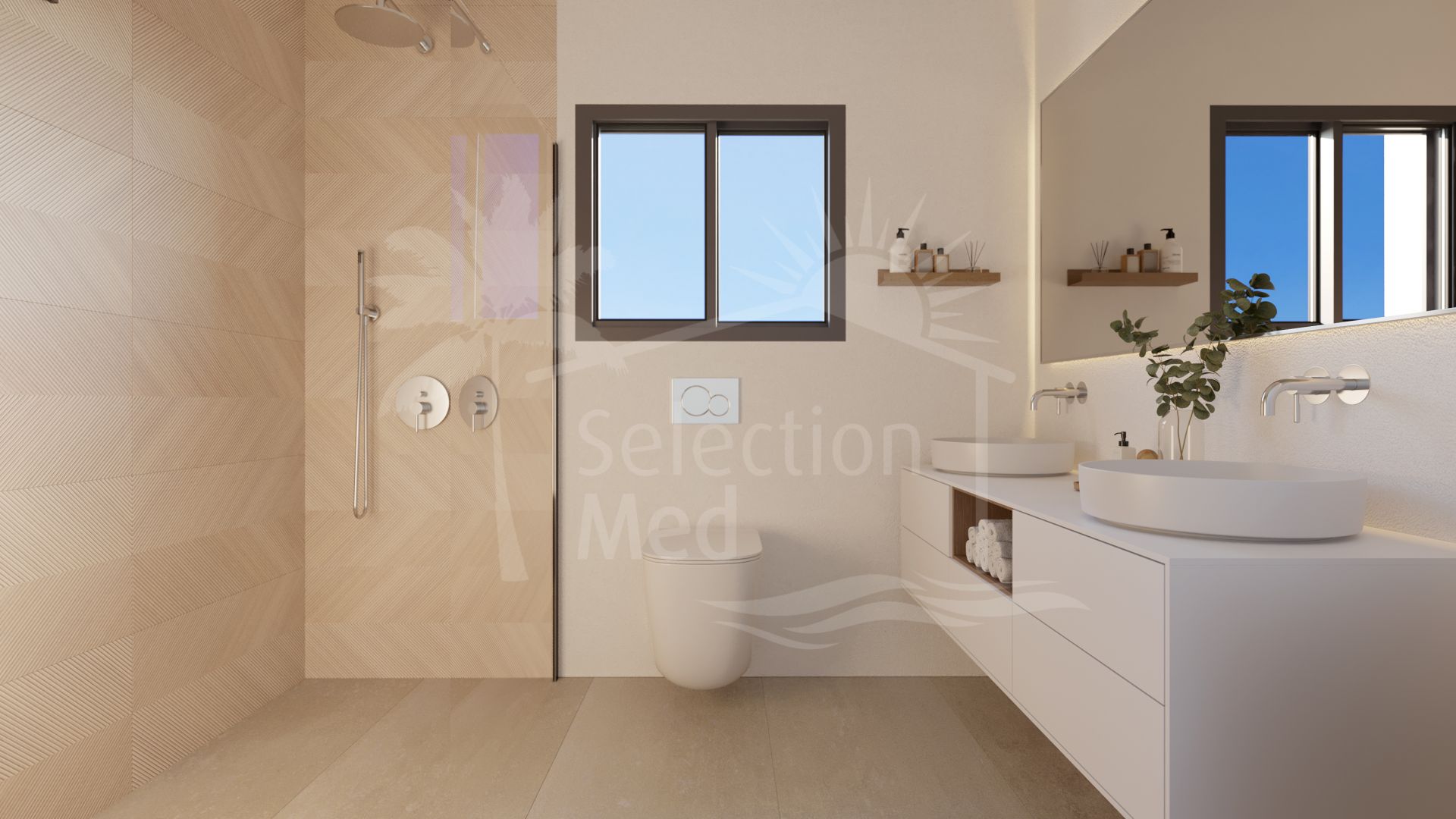 This brand new villa is situated in the sought-after area of Valle Romano, Estepona West, in the province of Malaga. Designed with modern living in mind, the property boasts three spacious bedrooms and three bathrooms, offering a comfortable and stylish residence for families or those seeking a tranquil retreat. The villa is set on a generous plot of 411m², with a built area of 130.41m² and an impressive terrace space of 77.62m², providing ample room for both indoor and outdoor living.