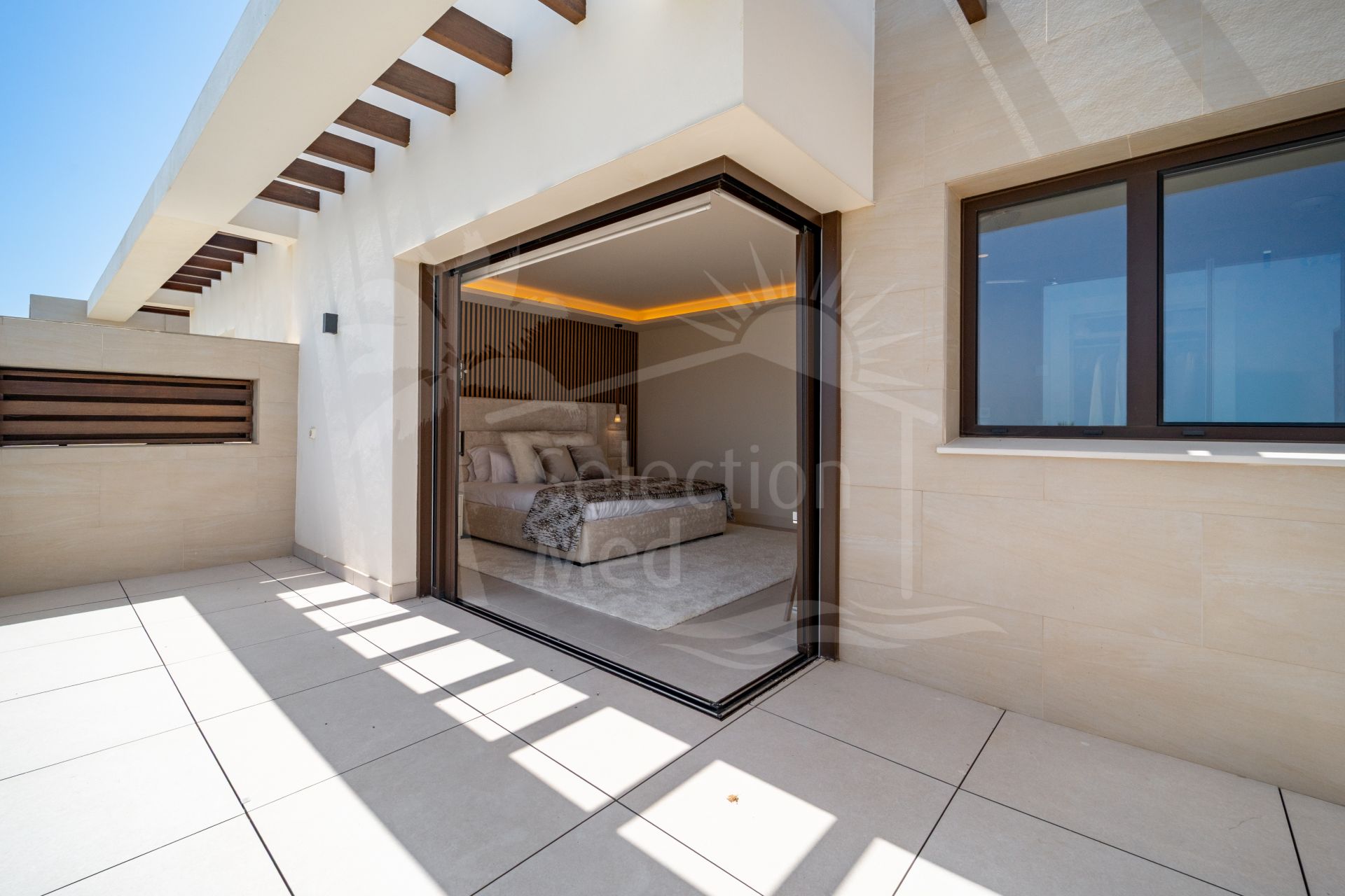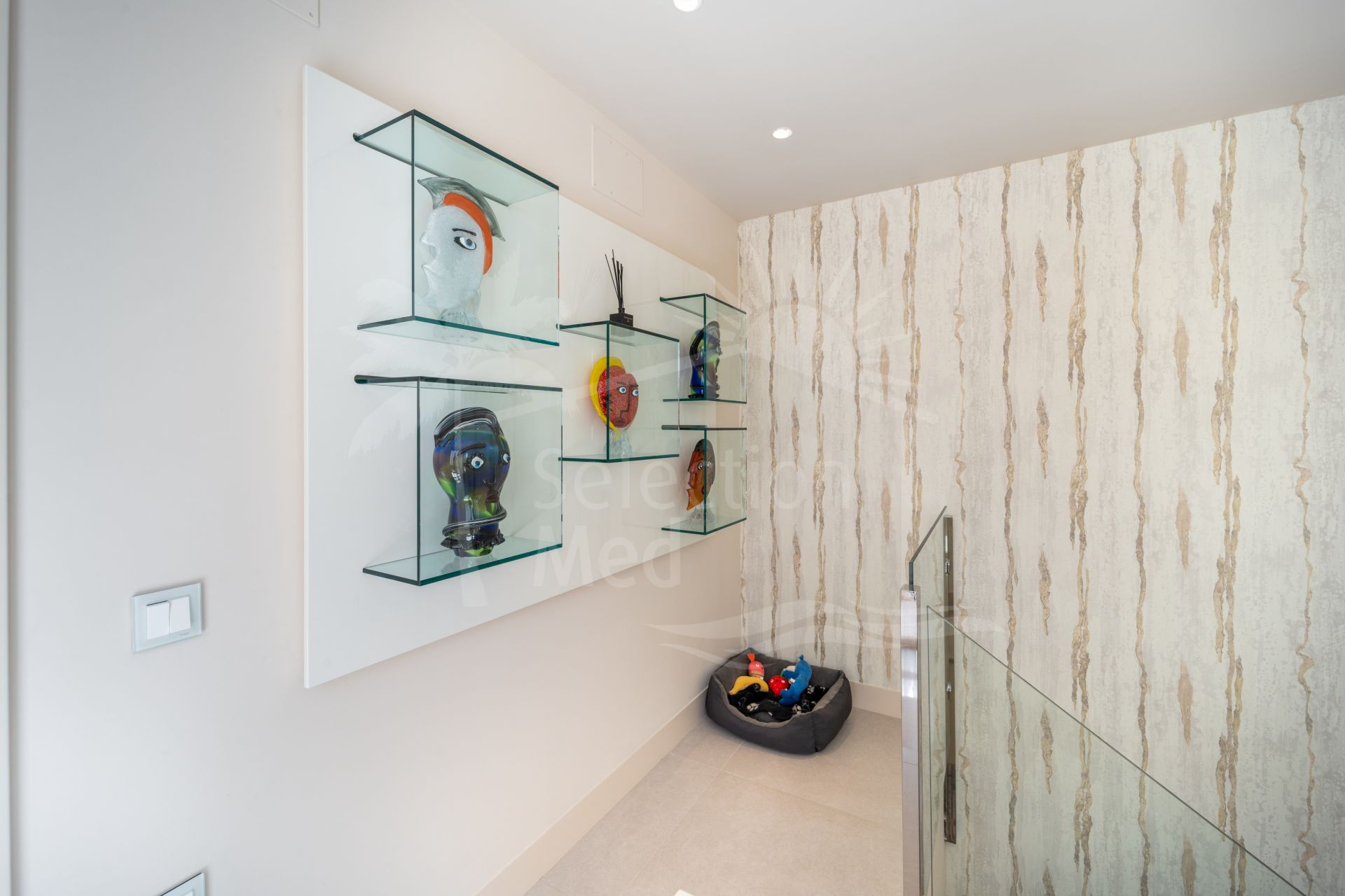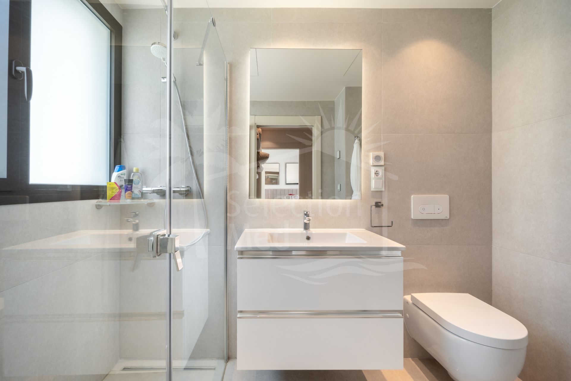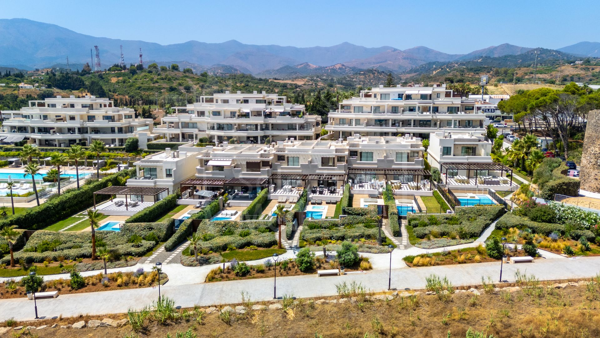 Situated on the frontline of the New Golden Mile, between Puerto Banús and Estepona, this exceptional townhouse offers a unique blend of coastal luxury, privacy, and resort-style amenities. Located in a secure gated community with beautifully landscaped gardens, a spacious communal swimming pool, and direct access to the beach and promenade, it is the ideal Mediterranean retreat.