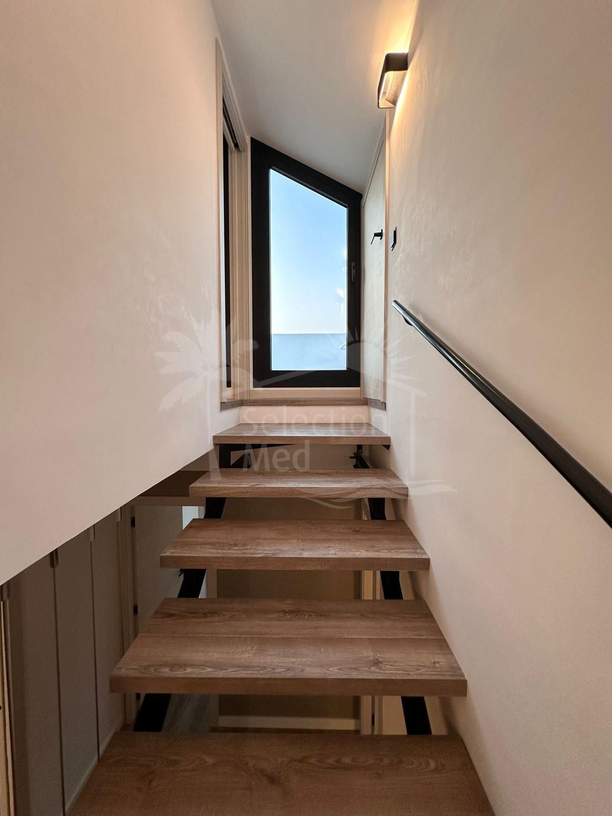 The upper floor has an additional bedroom with private terrace, perfect as a rest corner or creative space, as well as a practical storage area to cover all storage needs.